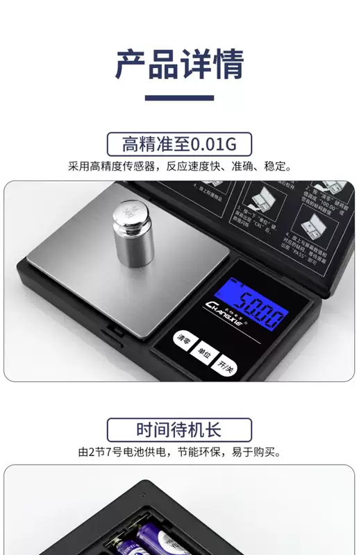 Yusenyi high-precision electronic scale gold scale weighing balance accurate tea gram small special jewelry heavy gold gram jewelry maximum weighing 500g accuracy value 01g-calibration weight