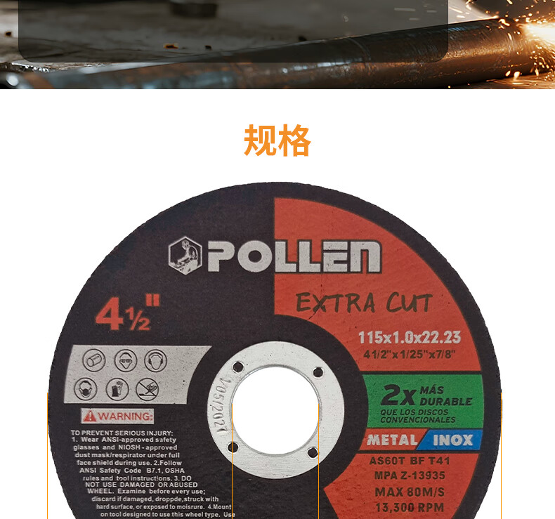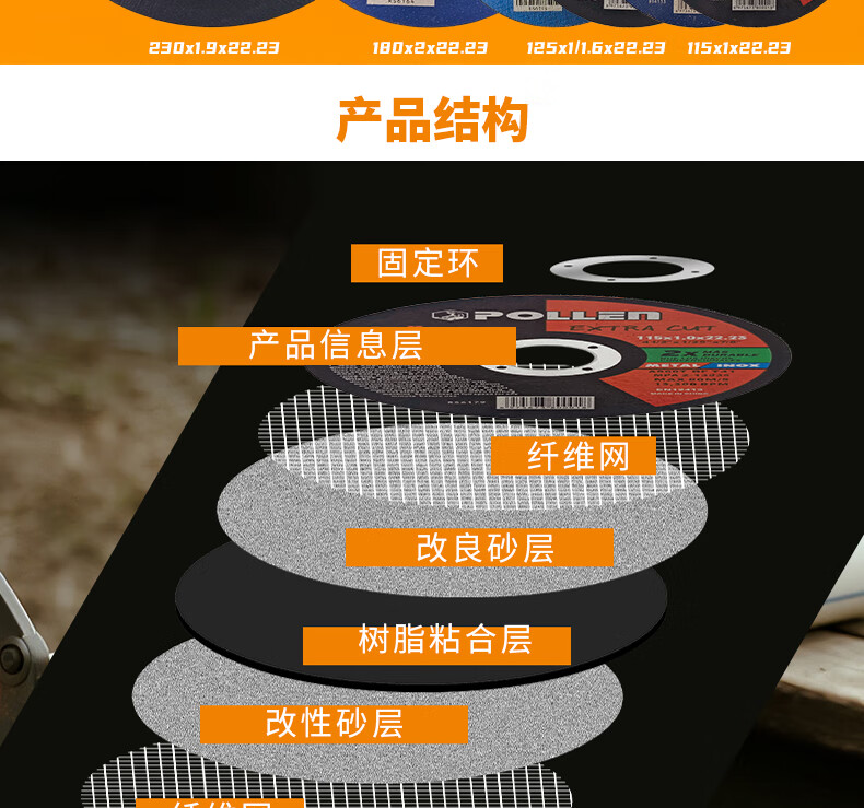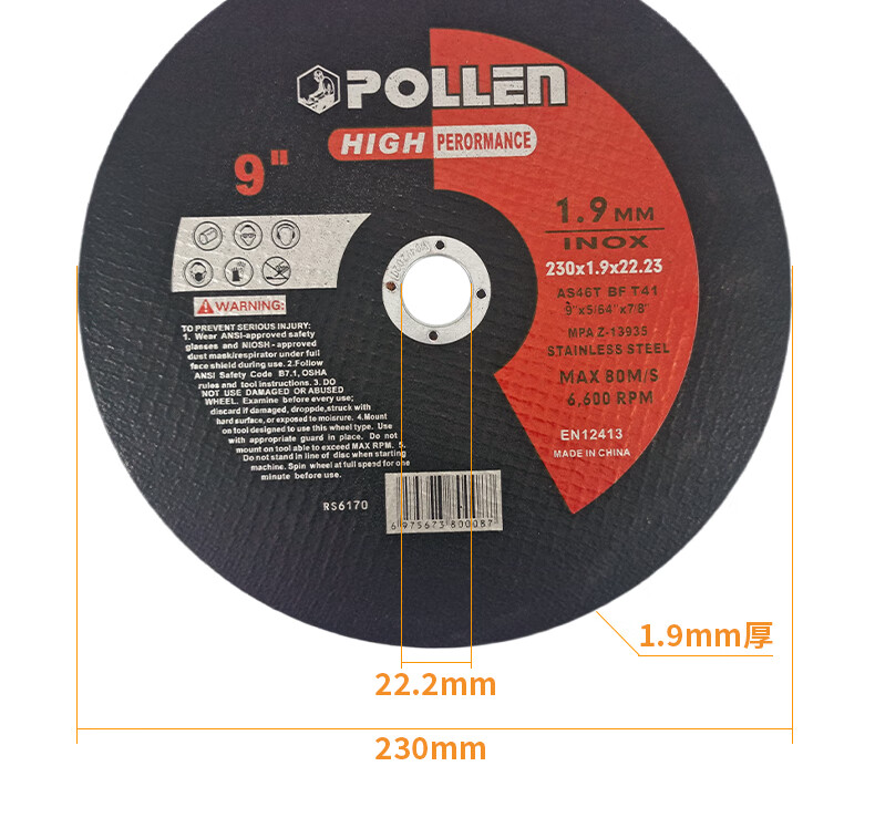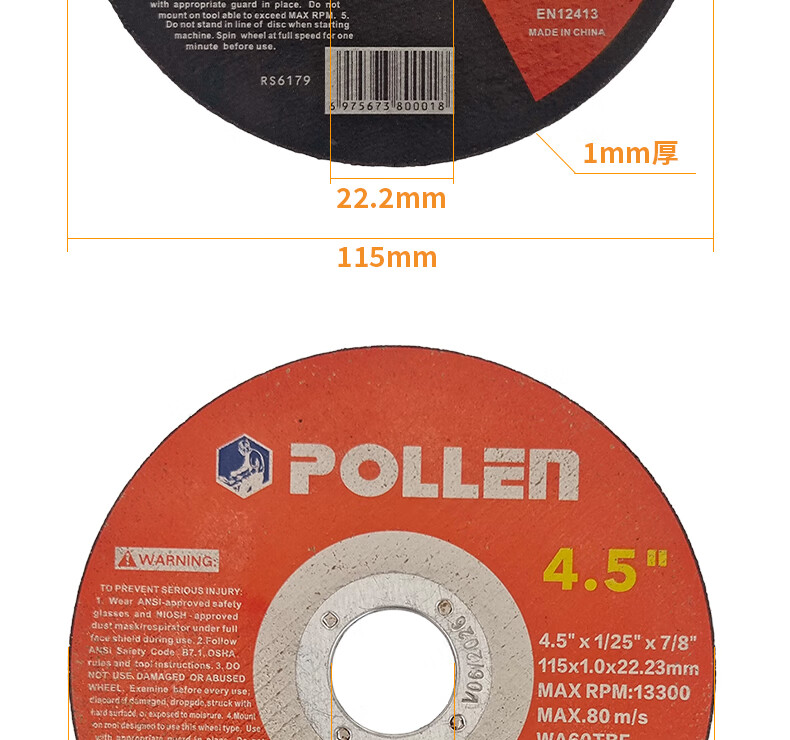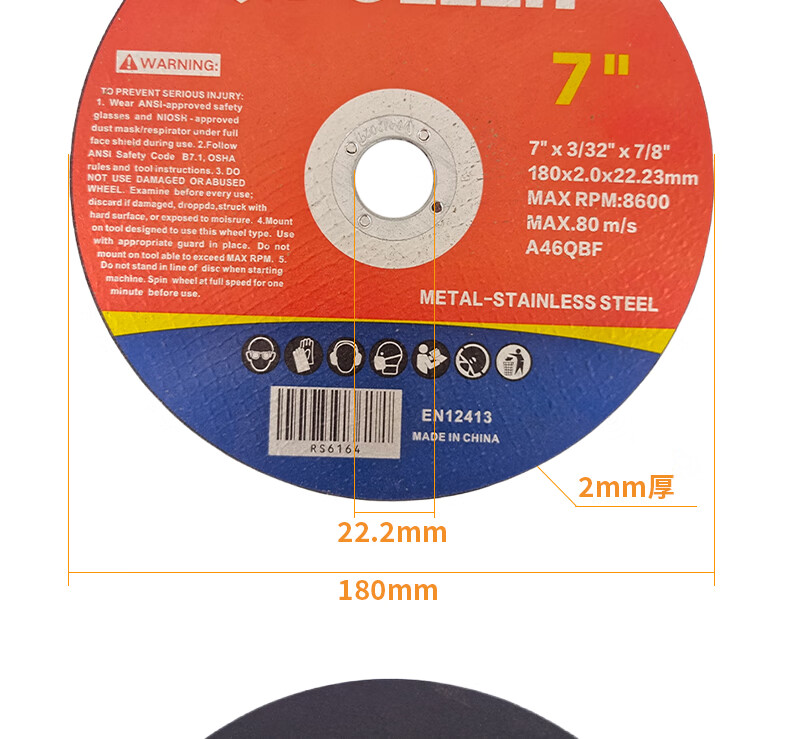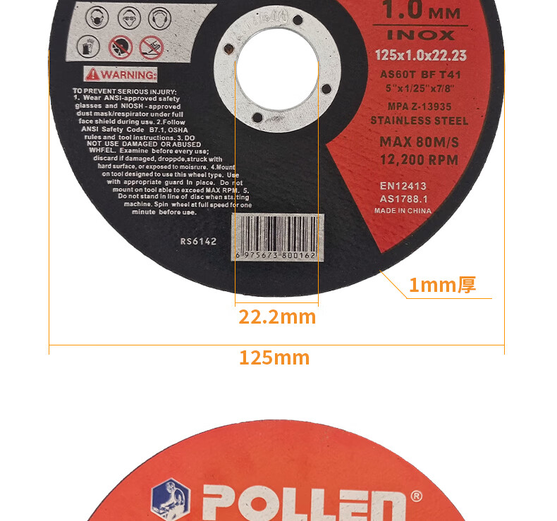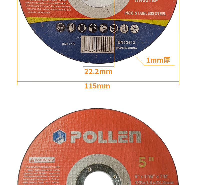 POLLEN cutting blade foreign trade quality angle grinder resin saw blade metal stainless steel hand grinder grinding wheel slice 180*2*22mm/2 pieces/A46QBF red and blue label POLLEN