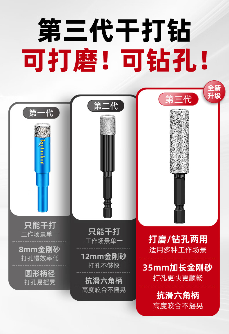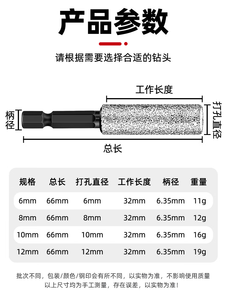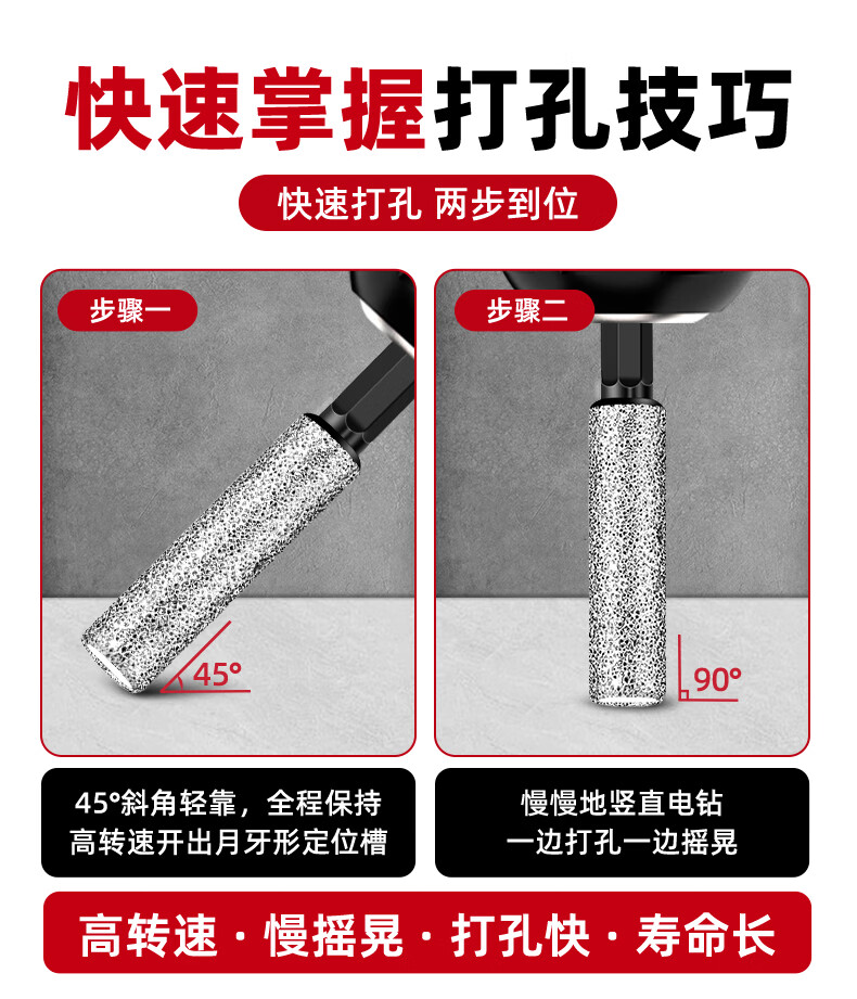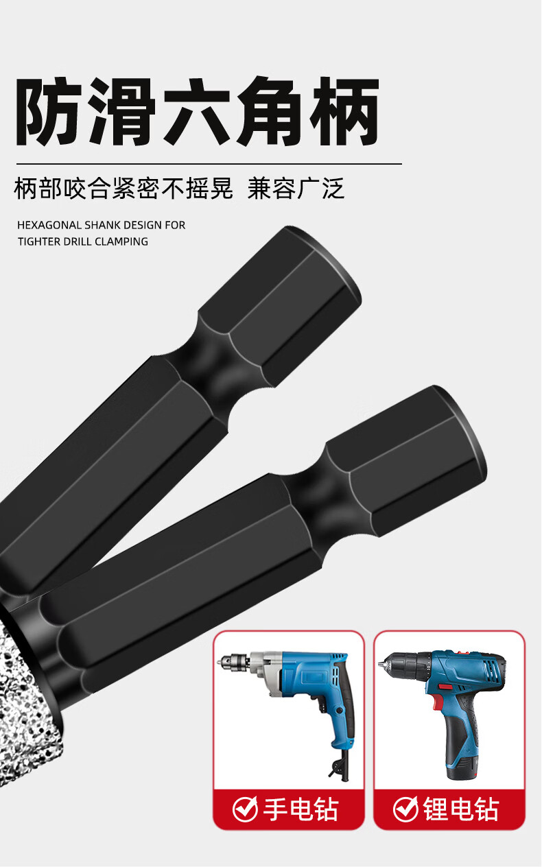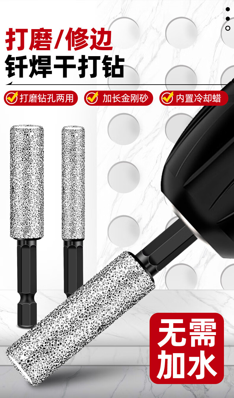 Ceramic tile drilling drill bit hole opener for drilling, grinding, trimming and dry-beating all-glass marble grinding head hand drill special brazing dry-beating tile drill bit 6mm 1 piece
