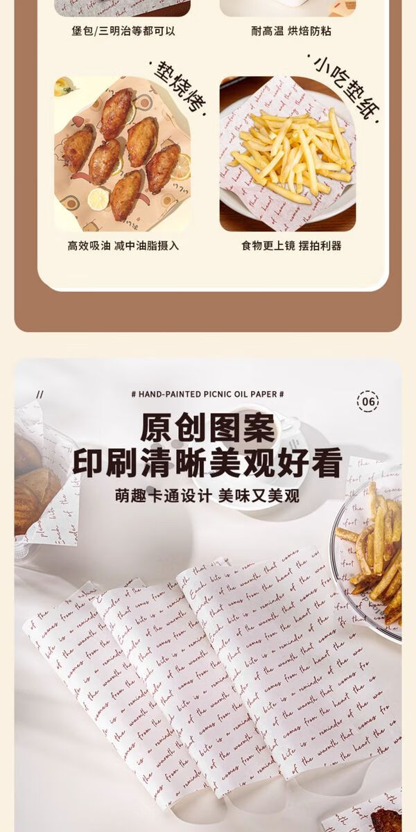 Fantasy oil-absorbing paper food bread mat paper cake paper mat tiramisu silicone paper 38x28 cowhide color hand-painted picnic 500 sheets