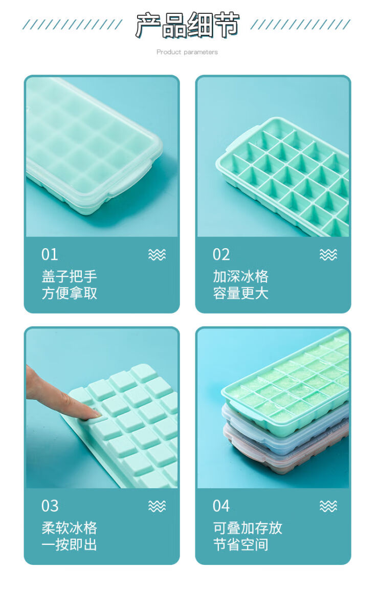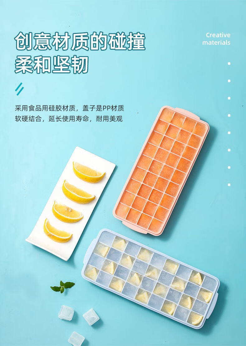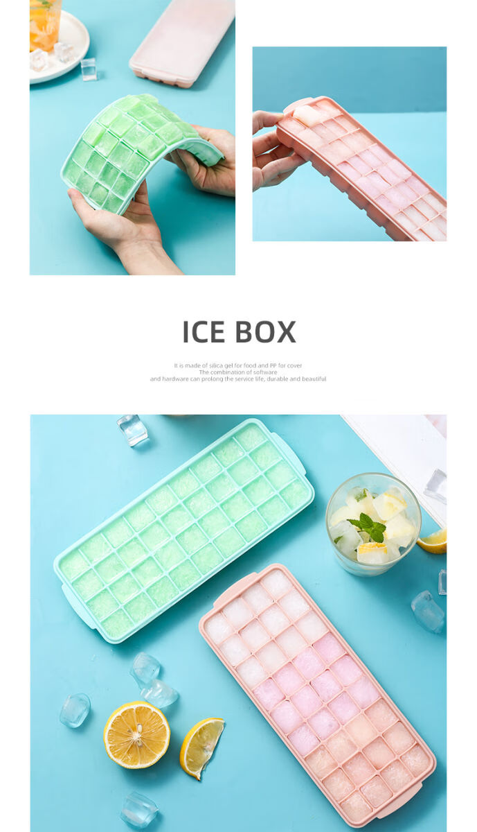 Fantasy ice cube mold ice tray ice making box frozen ice cube storage box with lid homemade ice cubes food grade silicone pink 24 compartments (lid bottom box)
