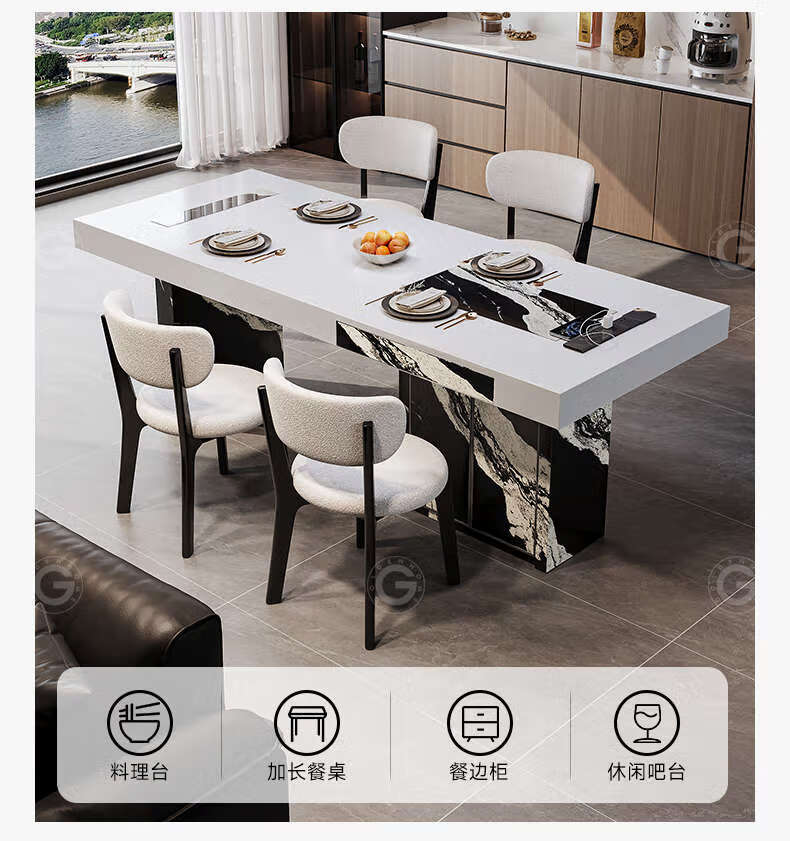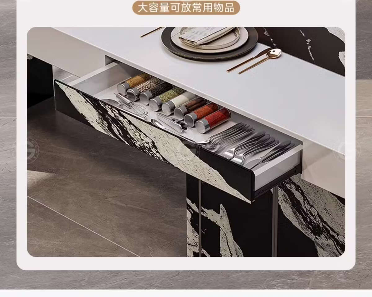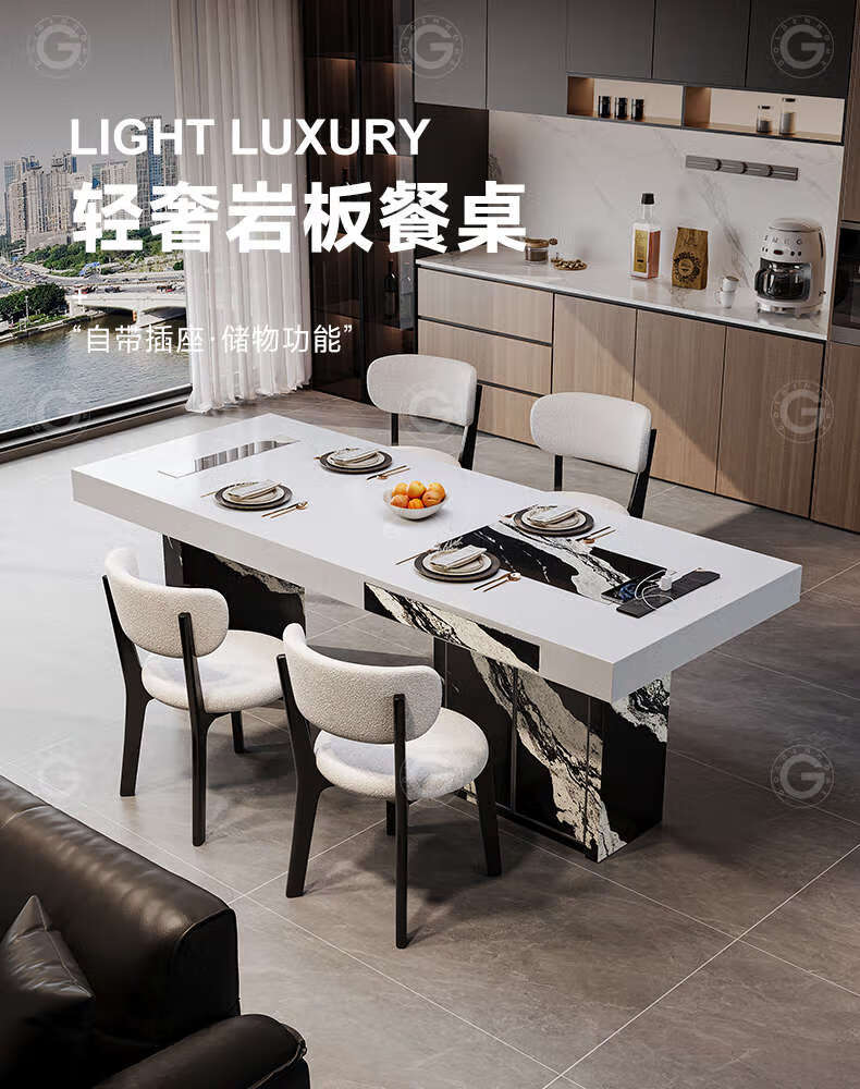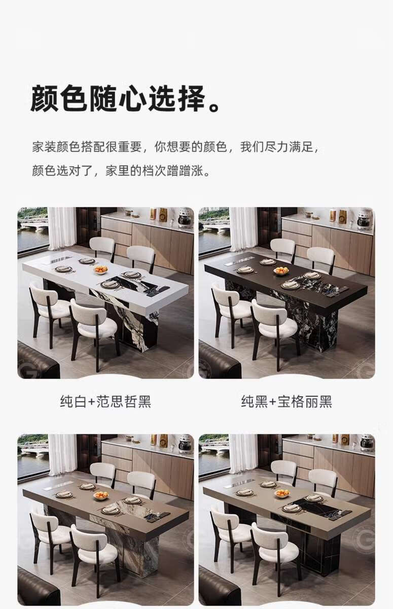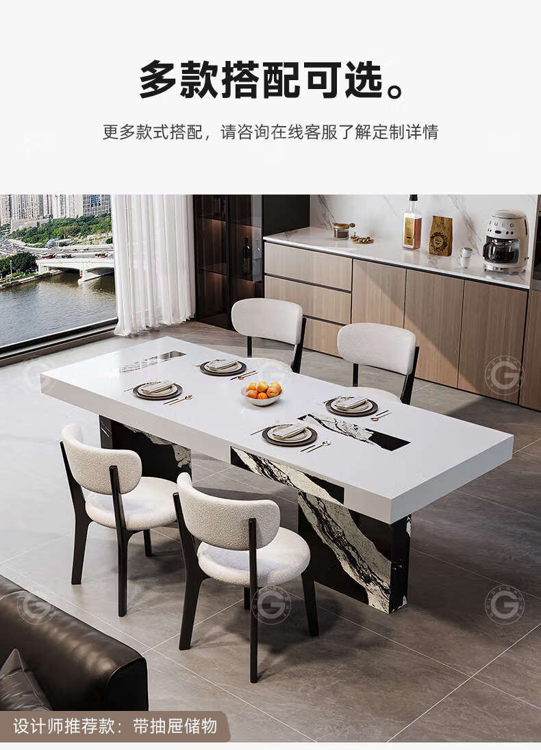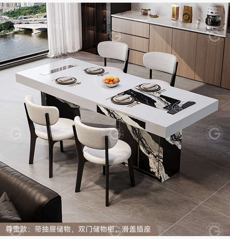 Yusenyi color-blocking dining table with storage for home use, regular model 2.0 meters, with storage, 6 chairs