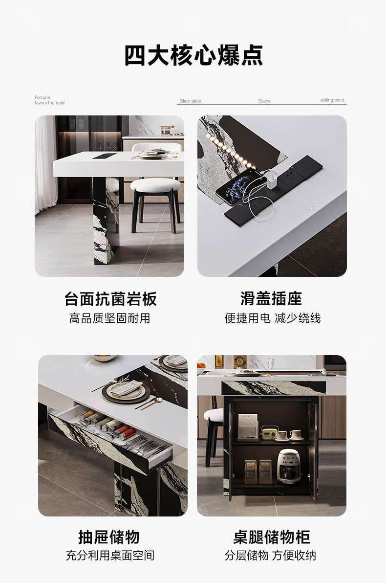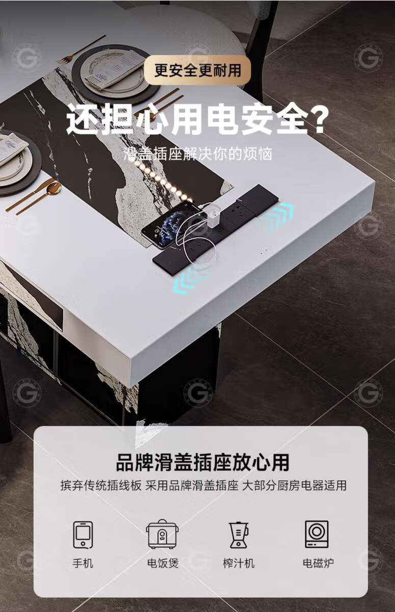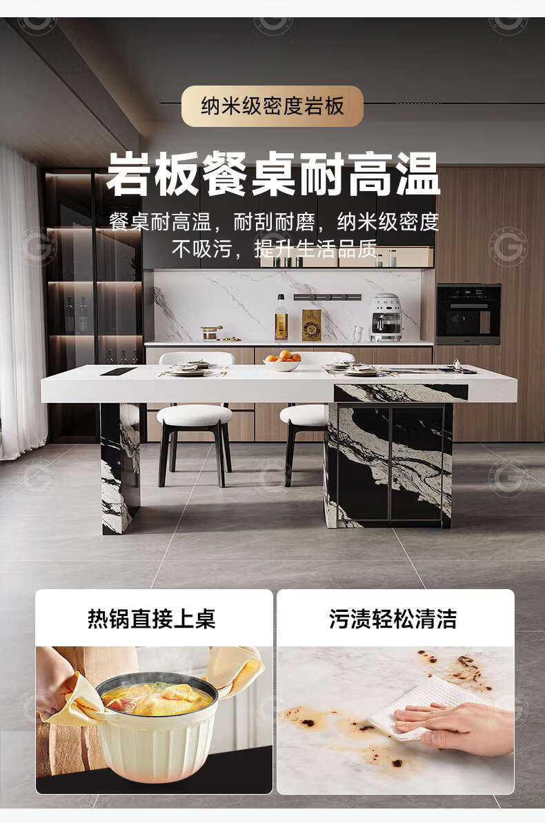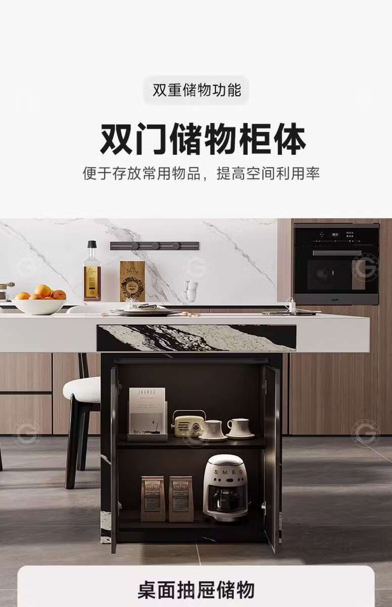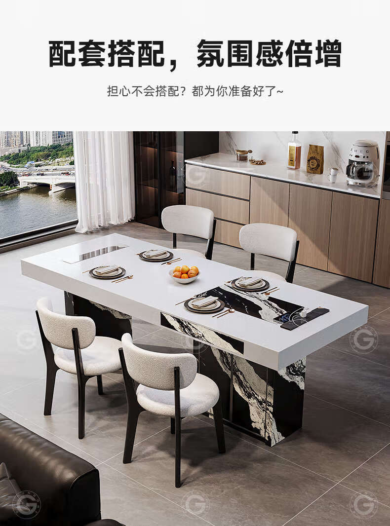 Yusenyi color-blocking dining table with storage for home use, regular model 2.0 meters, with storage, 6 chairs