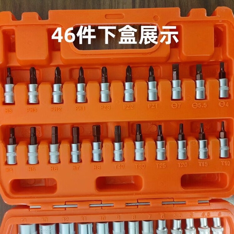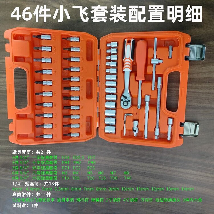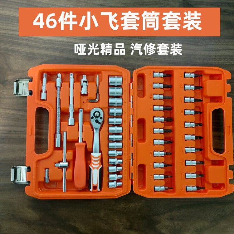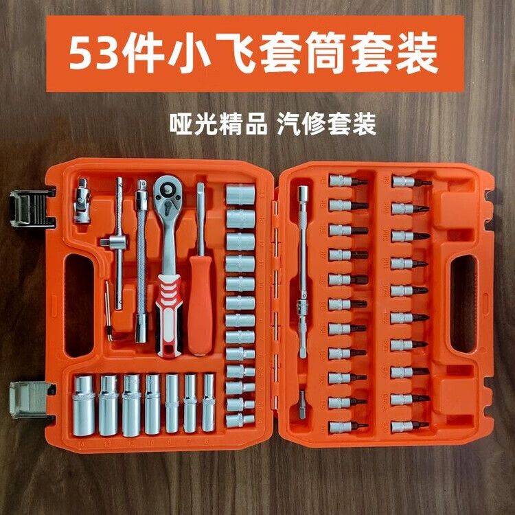 Yusenyi 46 pieces, 53 pieces, Xiaofei socket wrench, 1/4 quick ratchet wrench set, matte orange, 52 pieces, Xiaofei set + 1 tool box