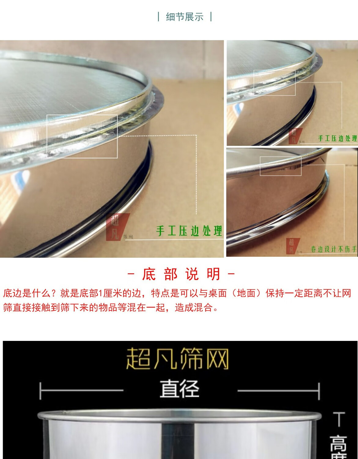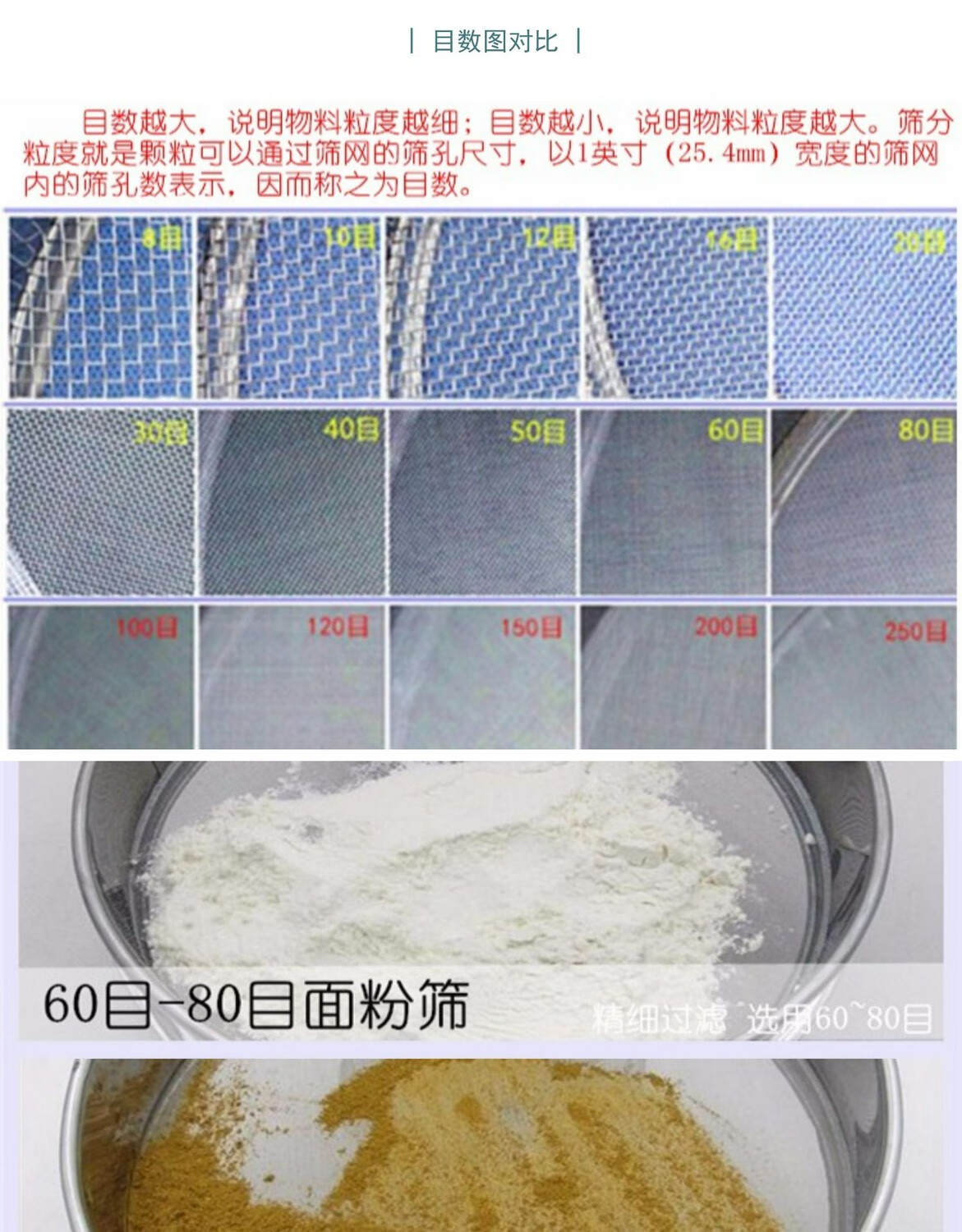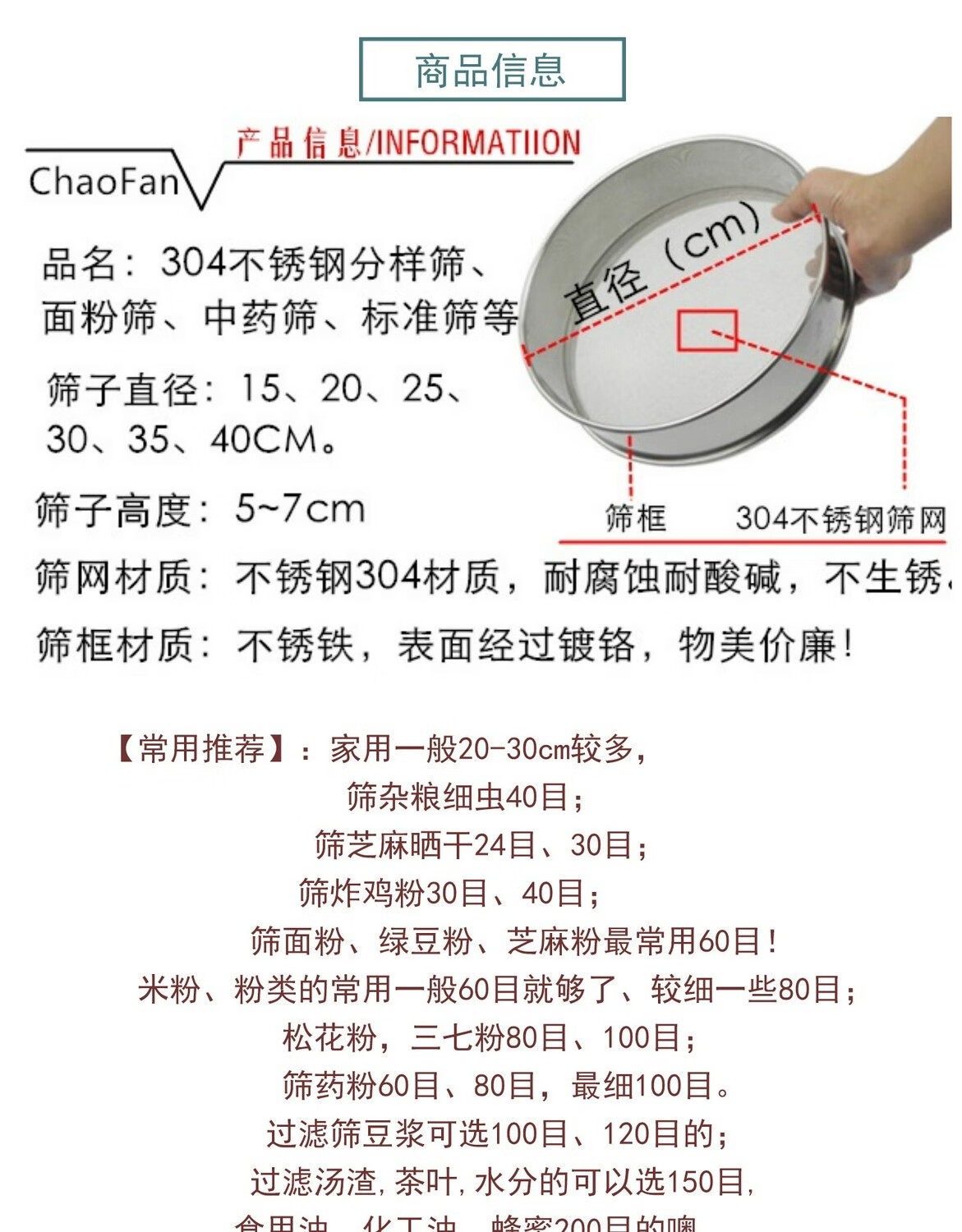304 stainless steel sieve flour sieve Chinese medicine soy milk sieve 40 mesh 60 mesh 80 mesh 100 mesh sampling sieve 1050cm diameter 50cm frame height 9cm - message mesh number