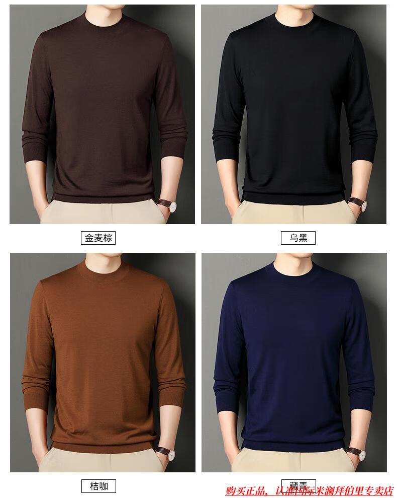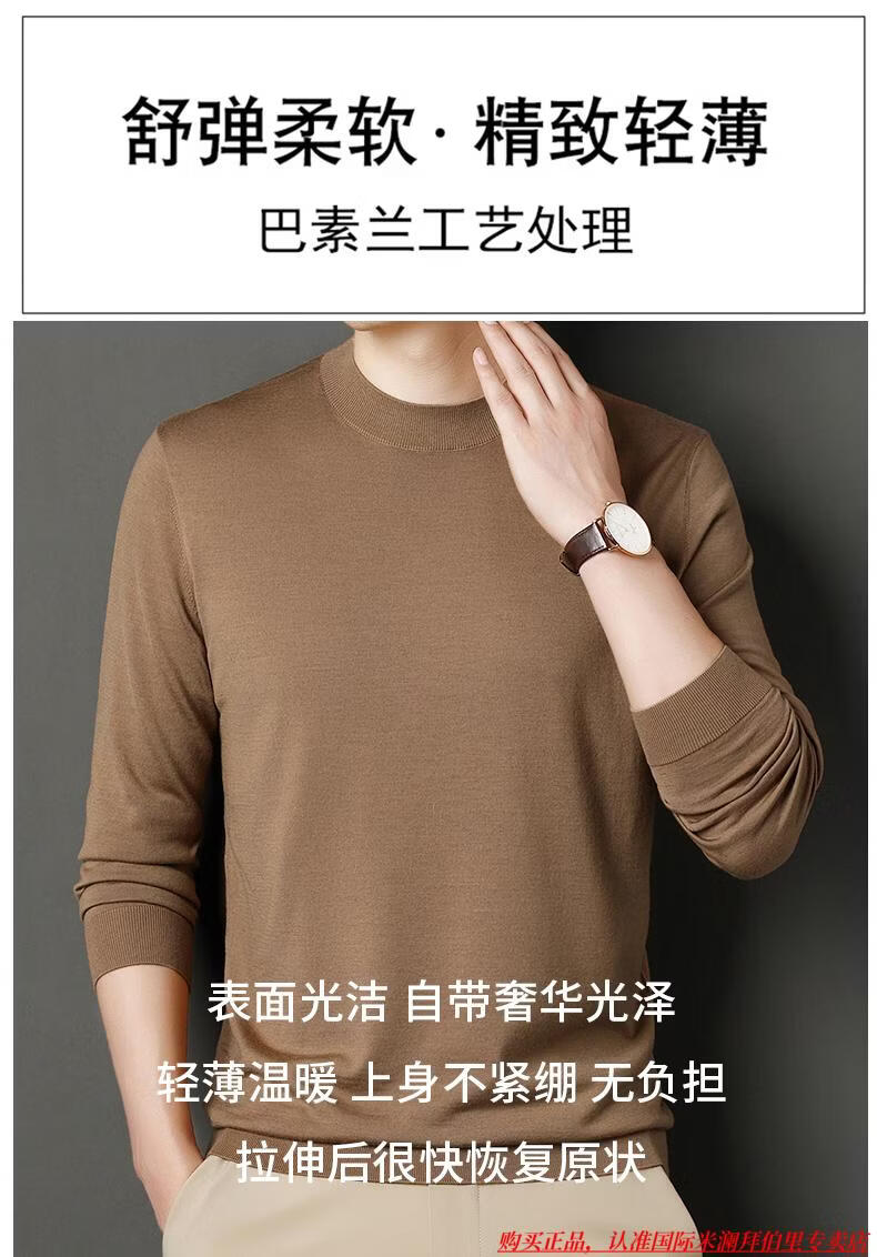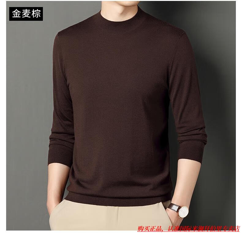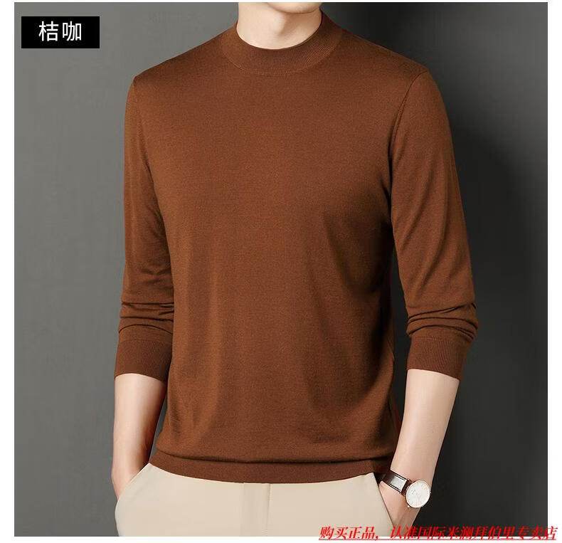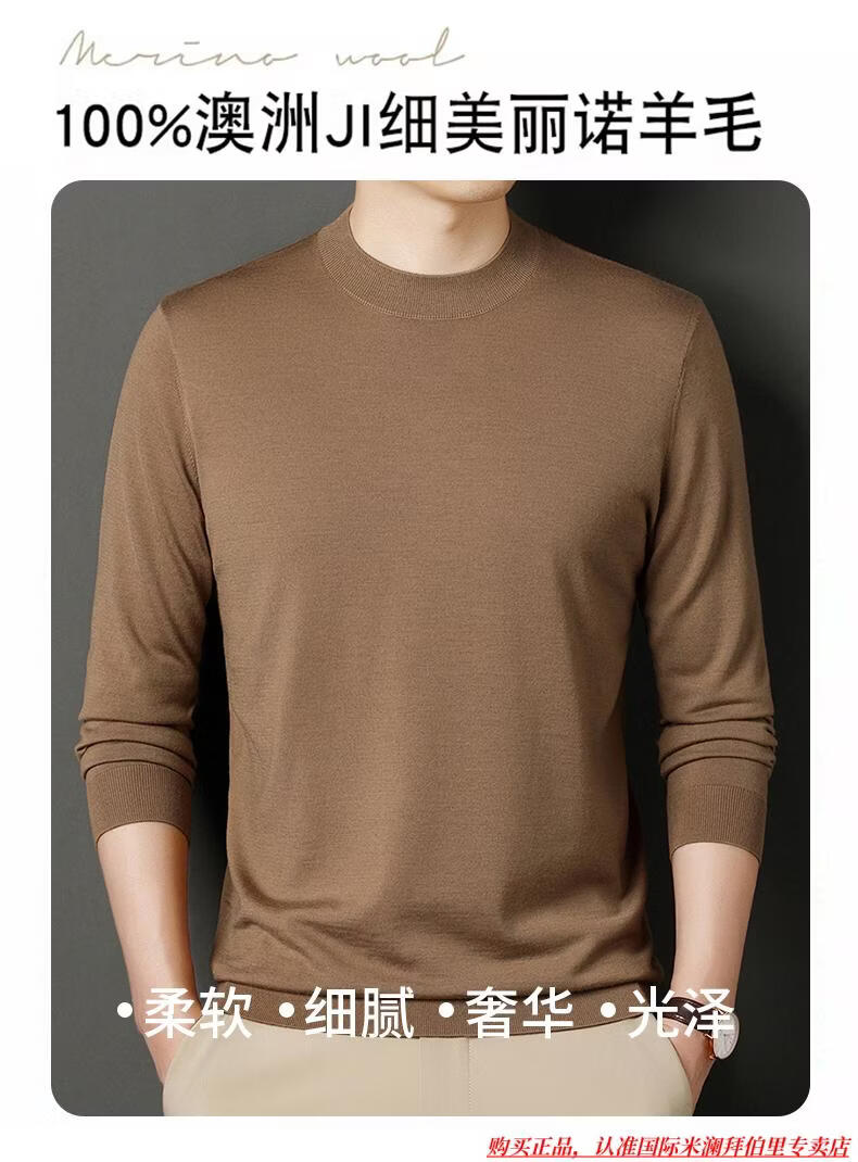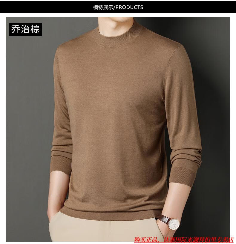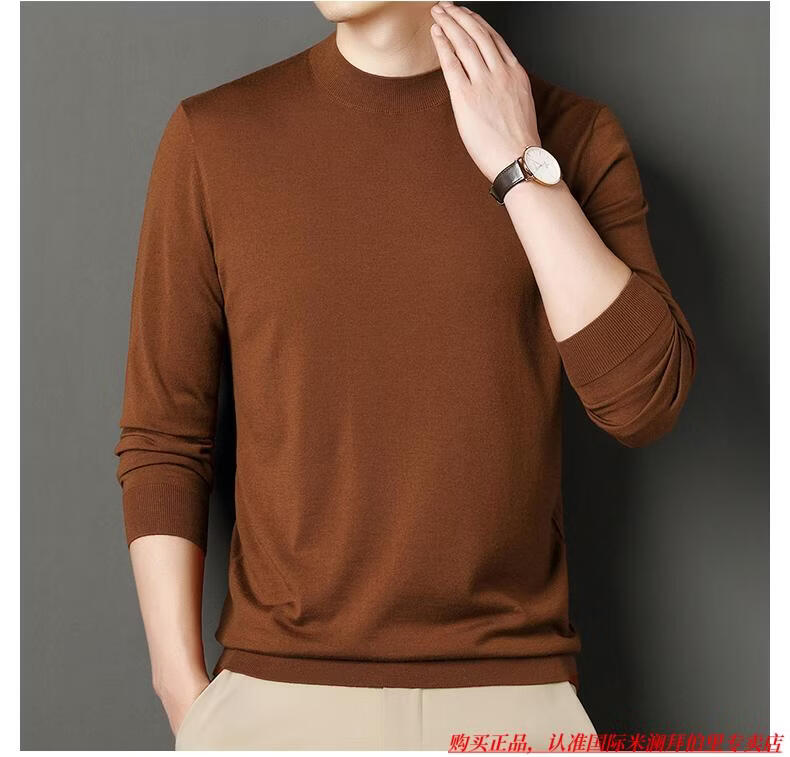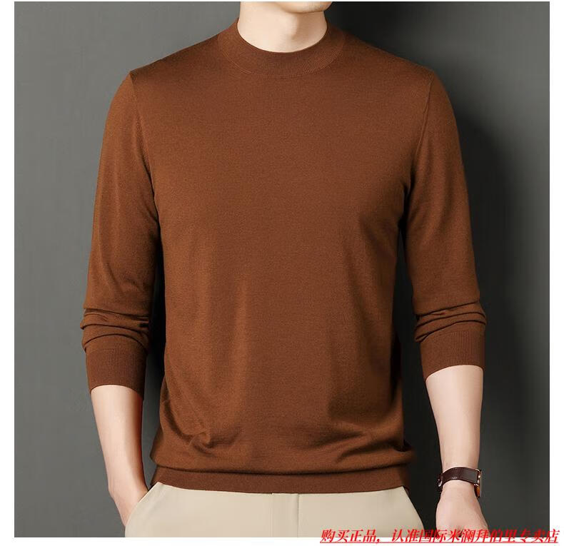 International Milan high-end brand 100% wool sweater men's anti-pilling sweater autumn and winter business knitted bottoming sweater sheep. Cashmere sweater George brown-100% sheep wool machine washable anti-pilling XL 175 (recommended weight 140-160Jin Jin equals 0.5 kg)