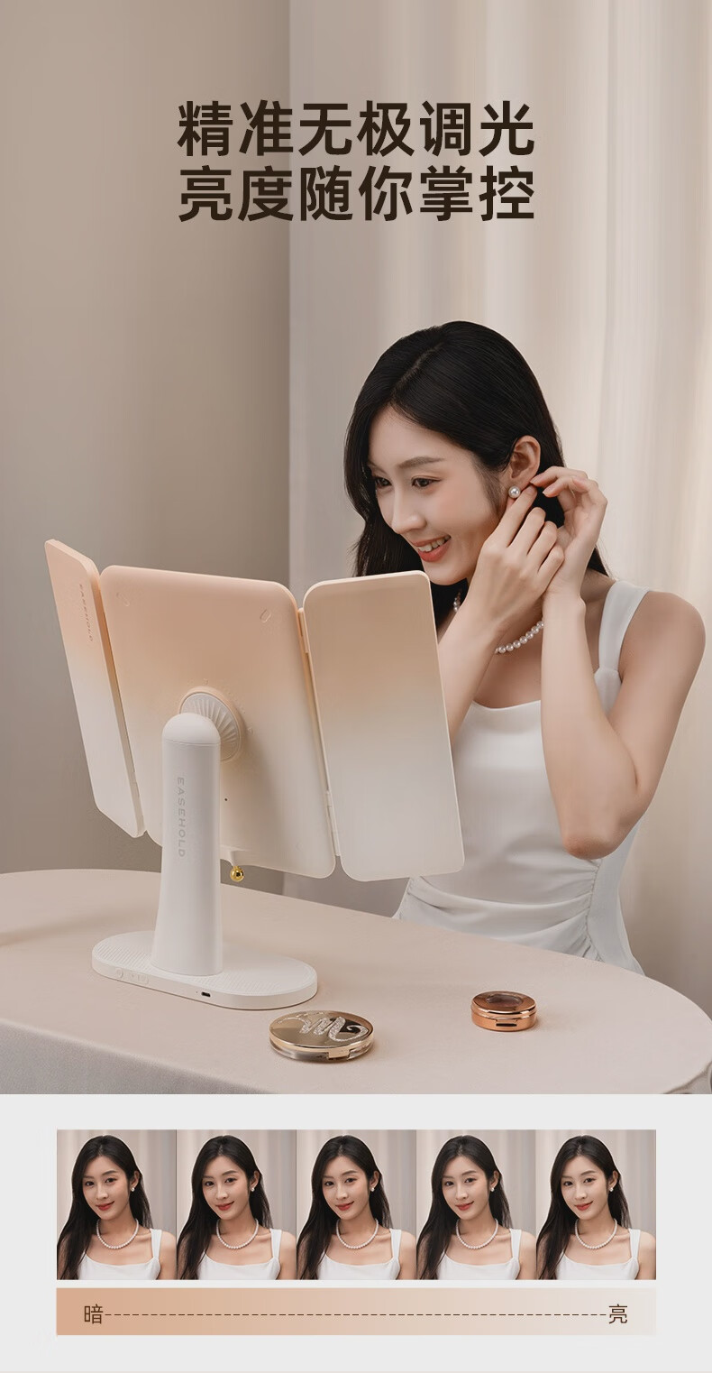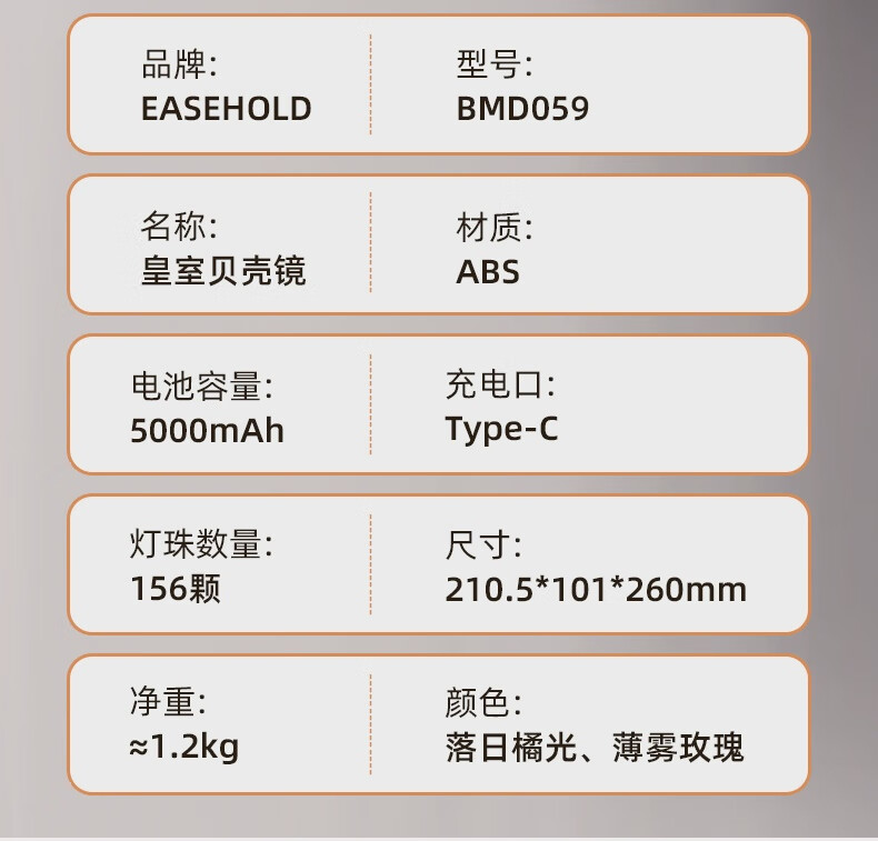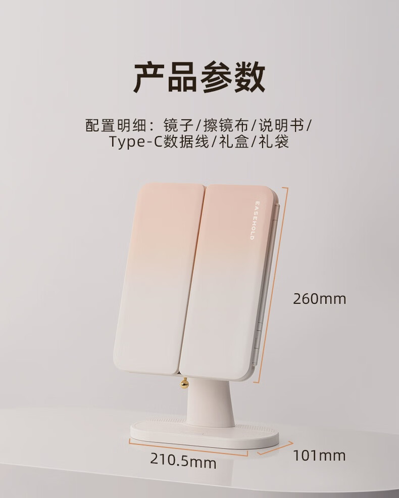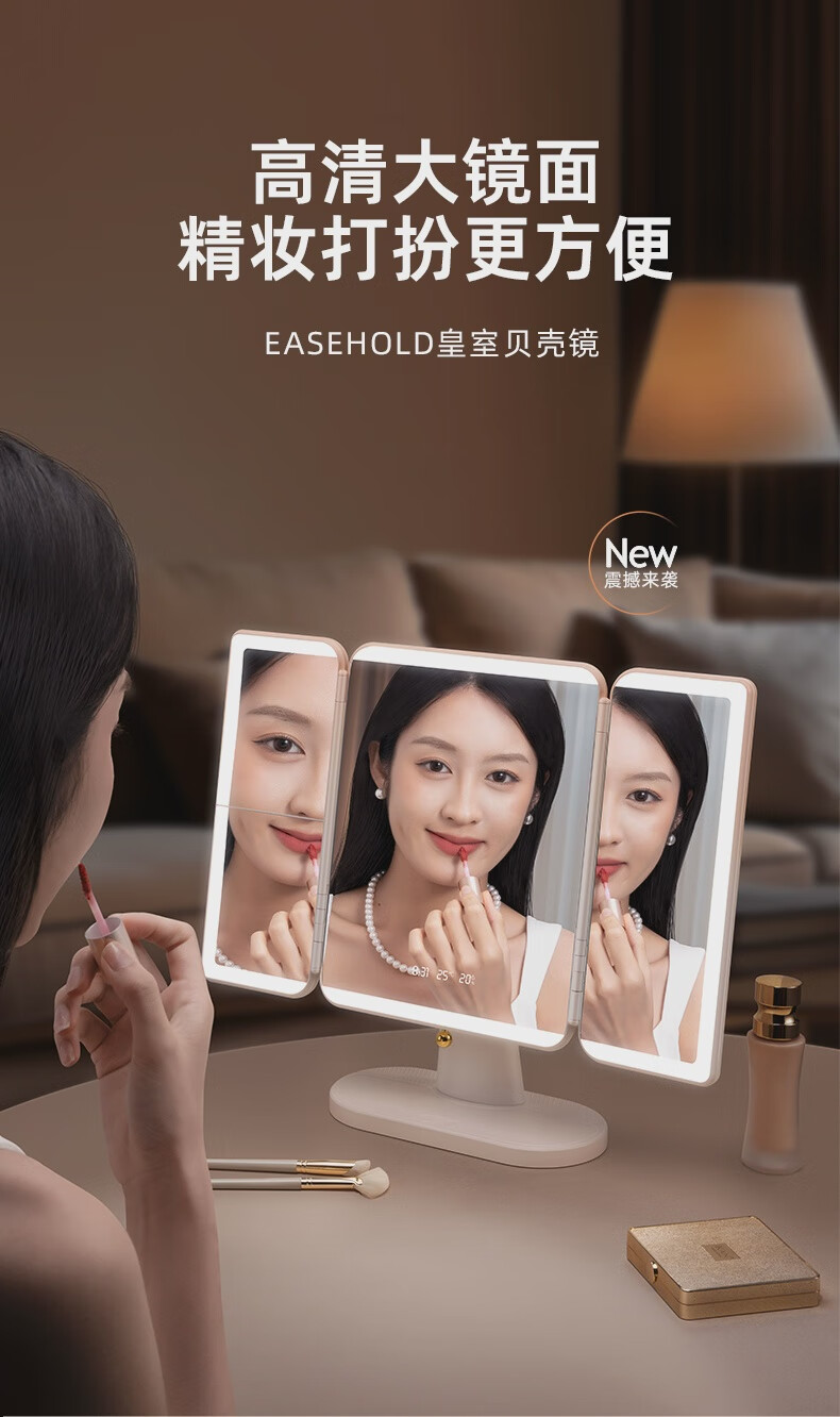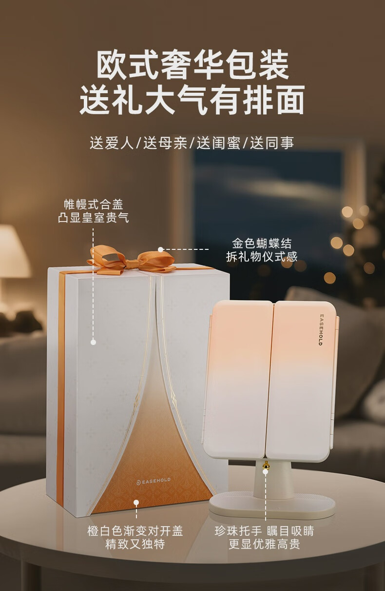 EASEHOLD Yijing Royal Shell Makeup Mirror Smart Desktop Desktop Lighted Mirror Dressing Royal Shell Mirror/Sunset Orange Light HD Mirror + 5000 mAh + 3 Surround Lights + 1