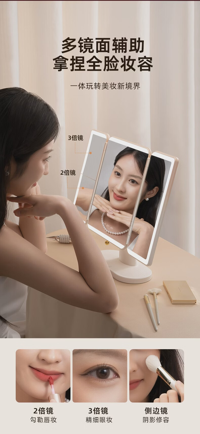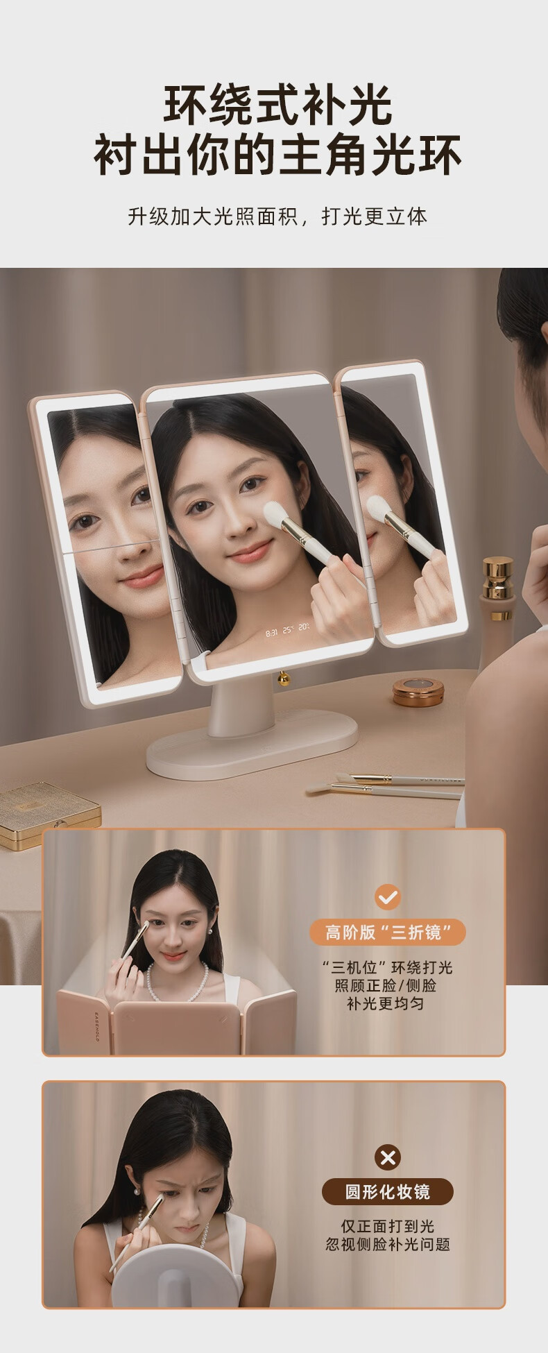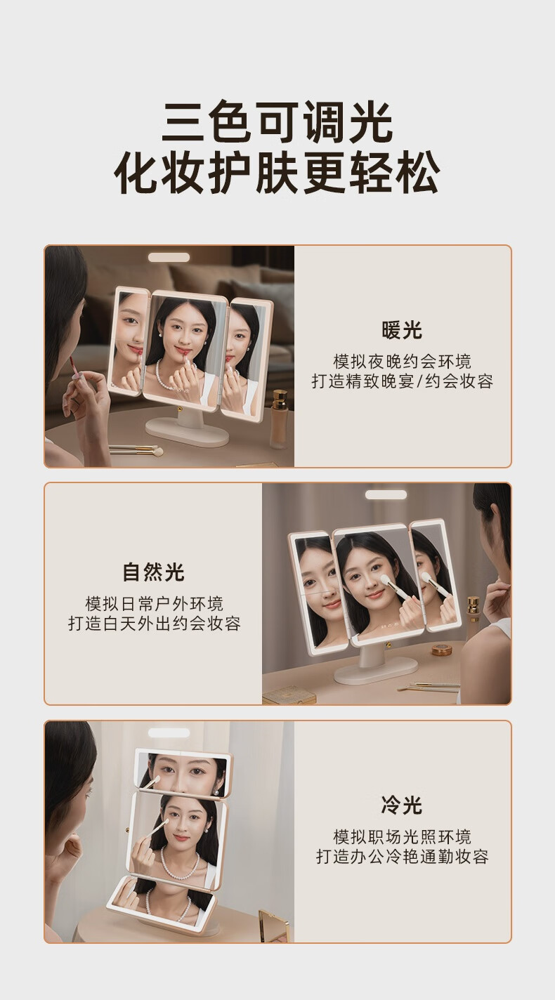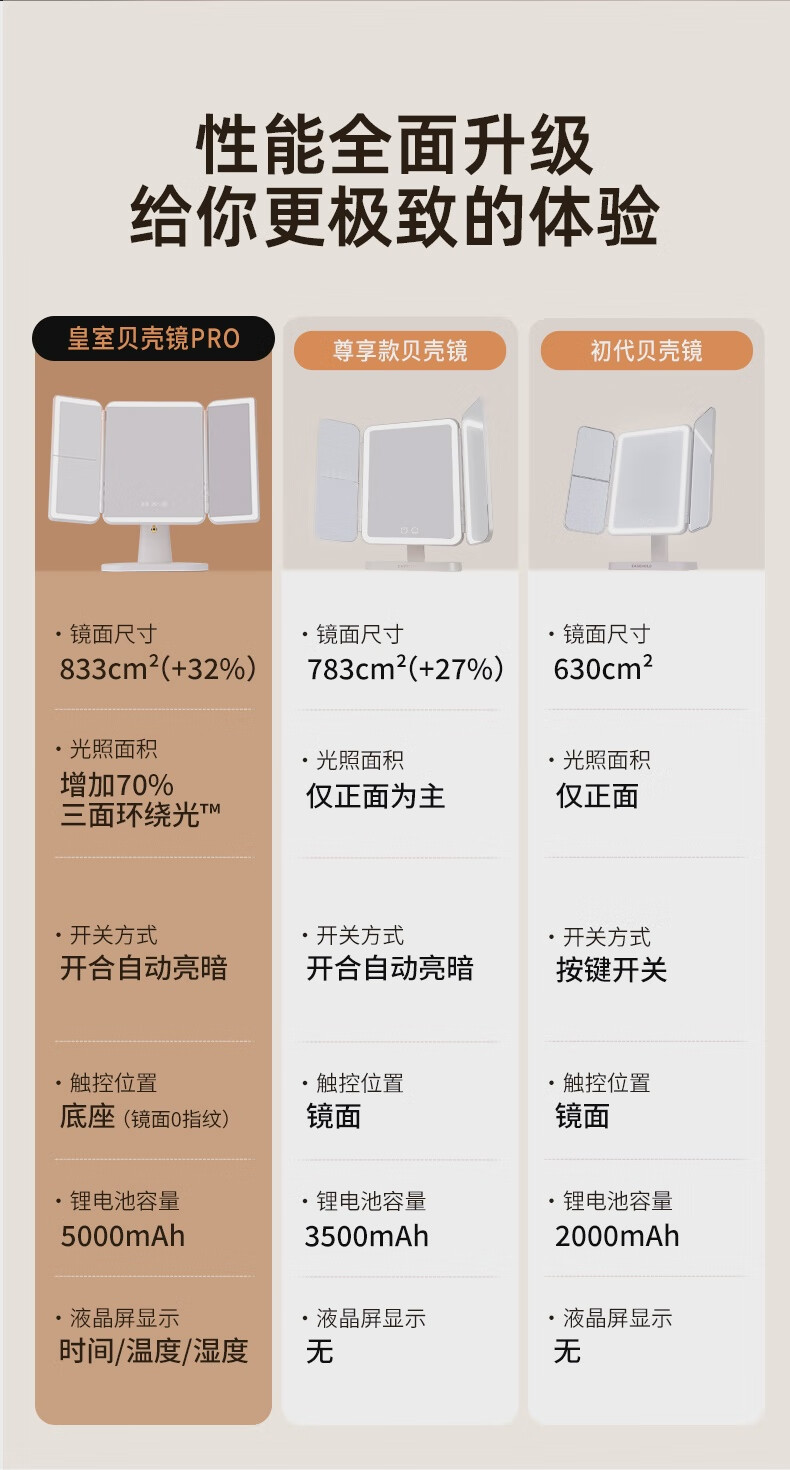 EASEHOLD Yijing Royal Shell Makeup Mirror Smart Desktop Desktop Lighted Mirror Dressing Royal Shell Mirror/Sunset Orange Light HD Mirror + 5000 mAh + 3 Surround Lights + 1