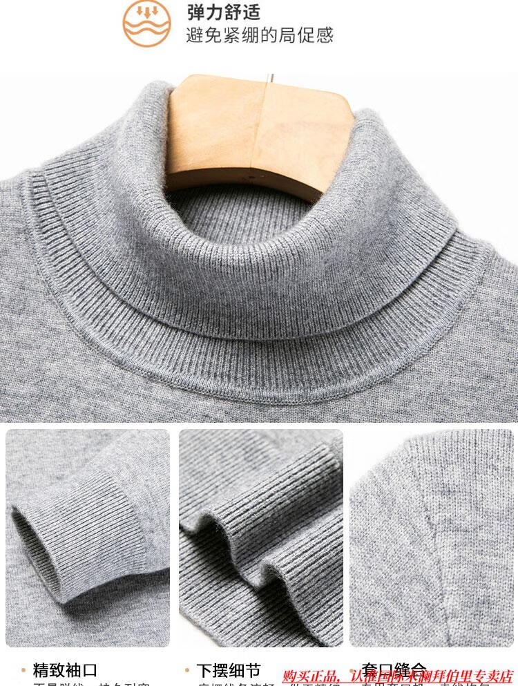 International Milan Ordos city-produced 100% woolen sweater men's winter turtleneck thickened warm knitted sweater sheep. Cashmere sweater 450g - medium gray high-end special grade non-pilling 2025 autumn and winter new model XL 175 (recommended weight 140-160Jin Jin is equal to 0.5 kg)