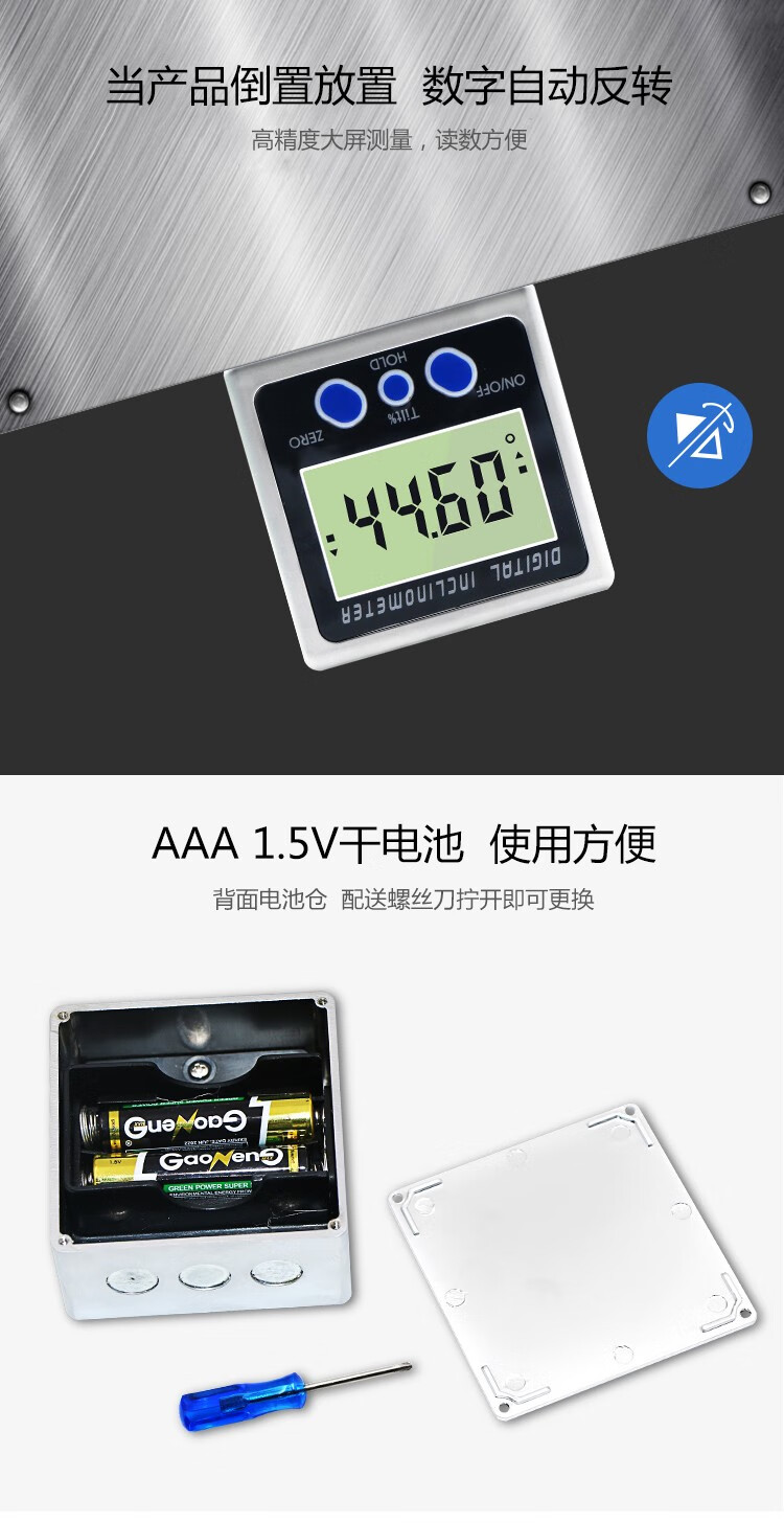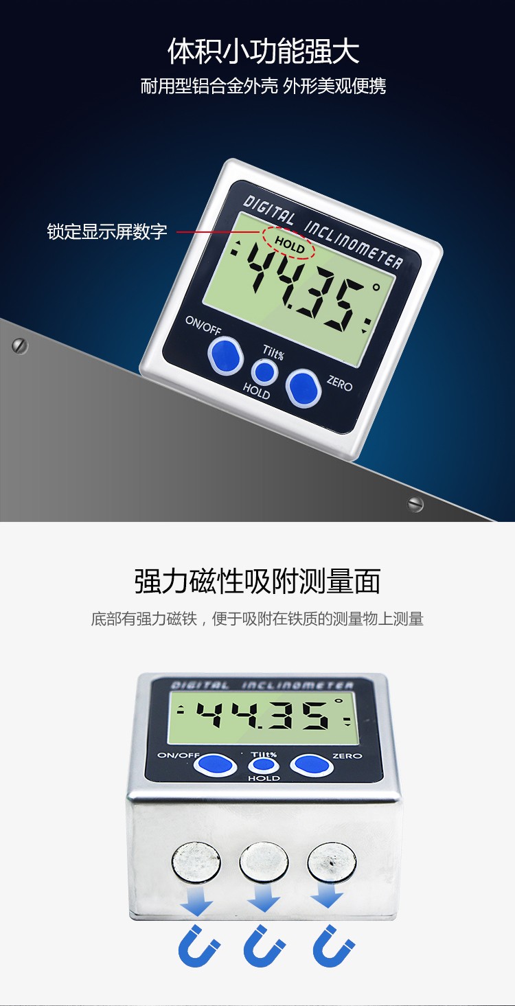 Jiujuhe customized strong magnetic digital display inclination box meter angle measuring instrument horizontal ruler digital display magnetic protractor slope measuring ruler black four buttons with magnetic