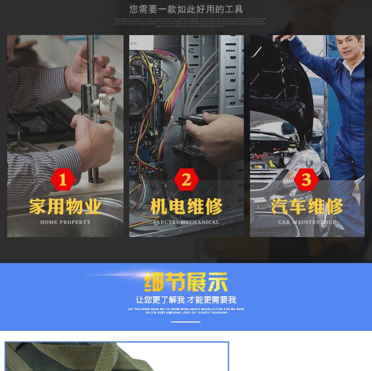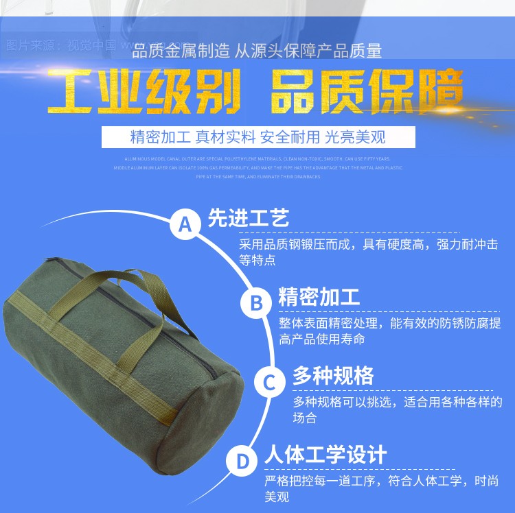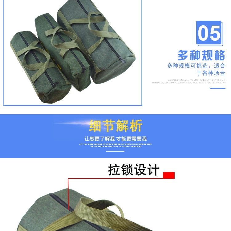 Sailotou thickened canvas tool bag tool bag tool storage bag electrician bag round bag 50*25 cm with reflective strips