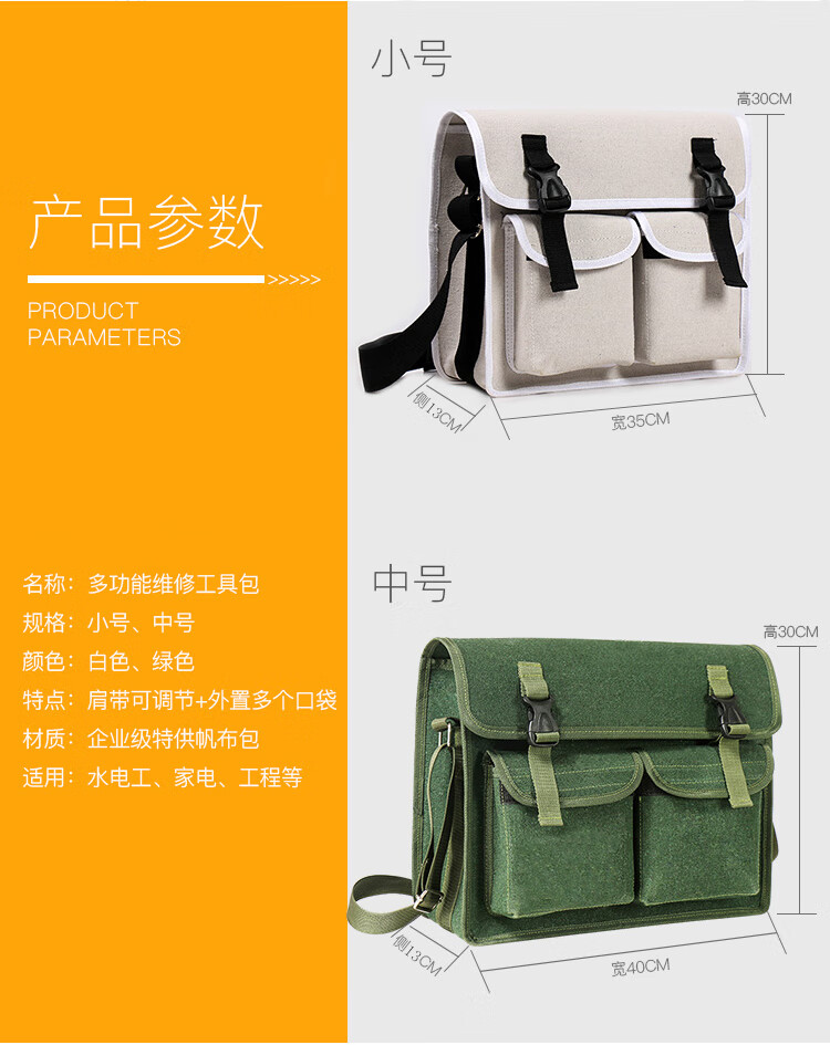 Sailoto No. 40 double canvas tool bag multi-functional repair electrician large and small wear-resistant men's enlarged and thickened D No. 40 white medium 40*13*30CM