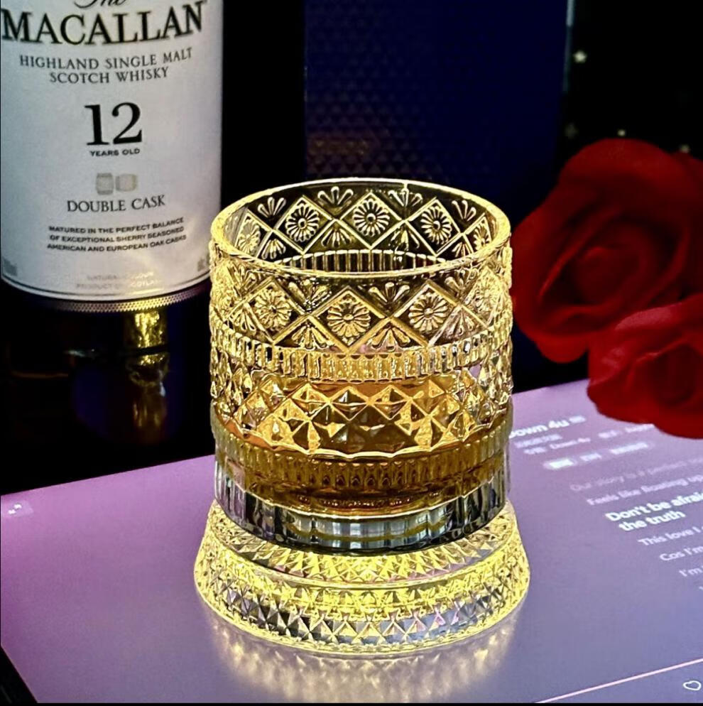 Luminous rotating whiskey glass, beautiful rotating decompression wine glass, tumbler, 360-degree rotating diamond cup, free luminous coaster