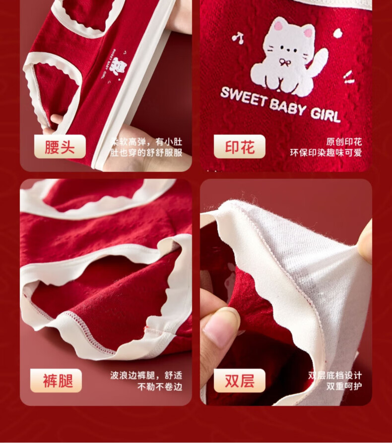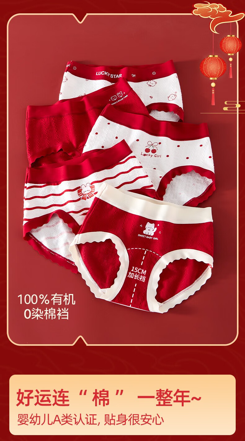 Modal Zodiac Year Horse Year Children's Underwear Girls Red Cotton Cotton Class A Briefs Little Girls 12 Years Old Shorts 5 Pairs - Lucky New Year Class A Jacquard Cotton + 100% Cotton Extended Crotch 130 XL Size 80-110 Jin Jin is equal to 0.5 kg