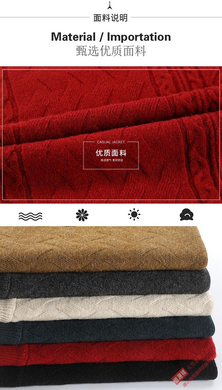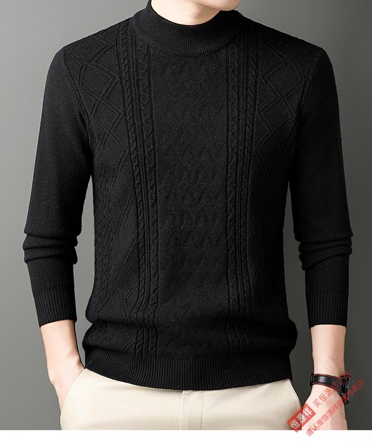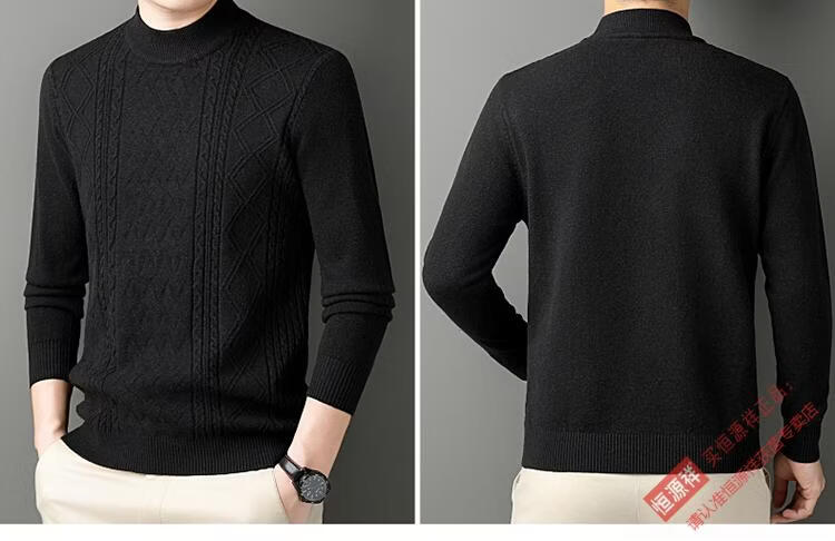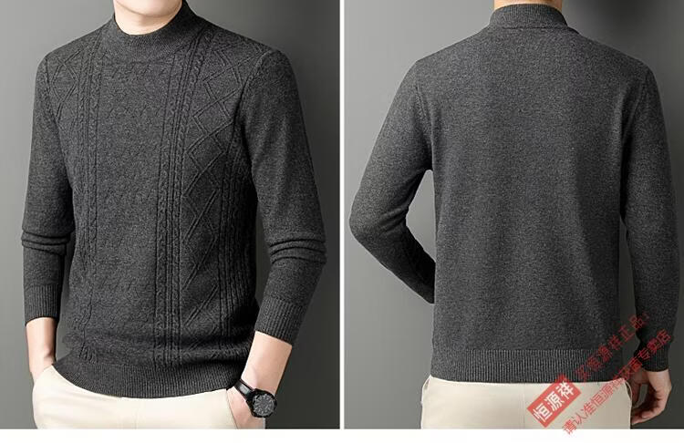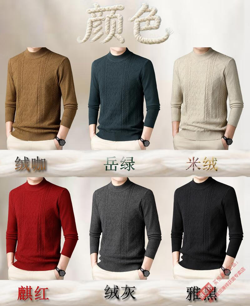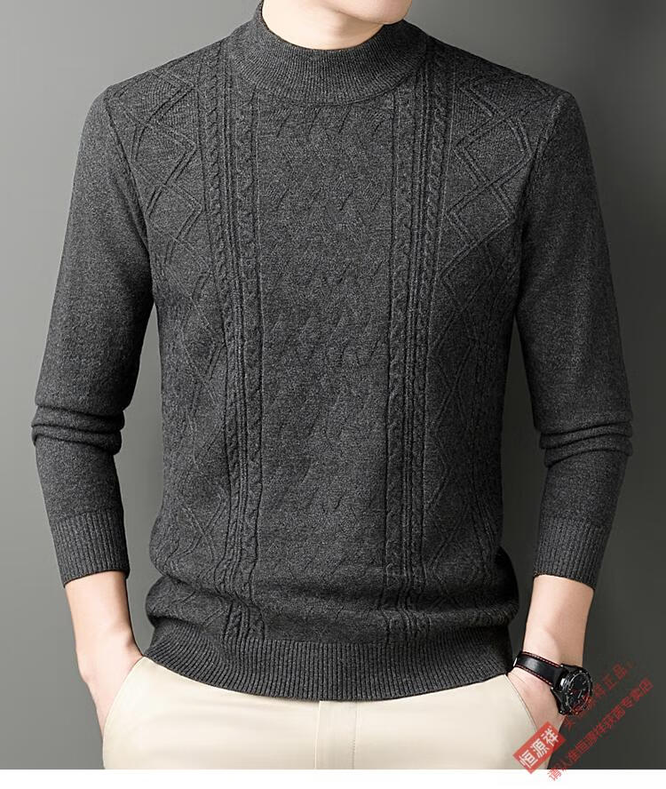 恒源祥冬季羊毛衫男半高领针织衫新款提花羊毛绒衫中青年宽松加厚毛衣男 岳绿 M