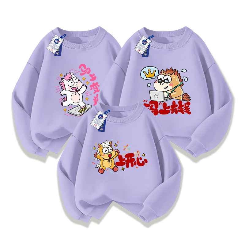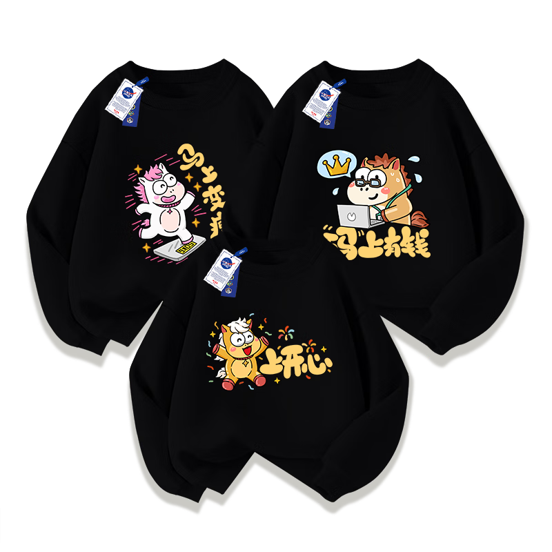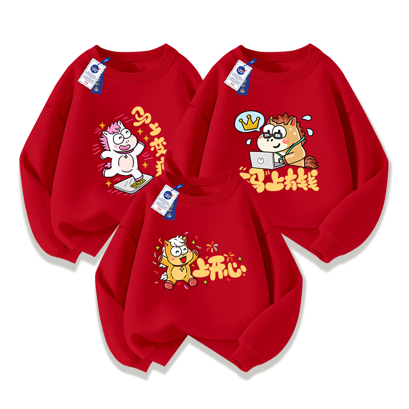 NASA STONE co-branded parent-child clothing for a family of three red sweatshirts plus velvet 2026 new family festive clothing for the Year of the Horse, red spring and autumn style 130 130cm children's size recommendation 46-55Jin Jin is equal to 0.5 kg