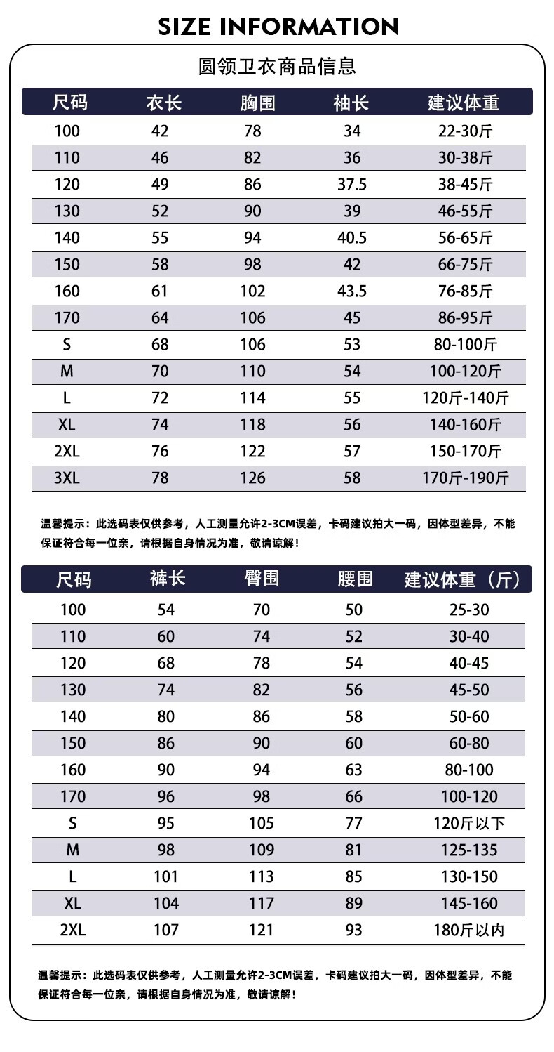 China (cm) 165 / 88-90 170 / 96-98 175 / 108-110 180 / 118-122 185 / 126-130