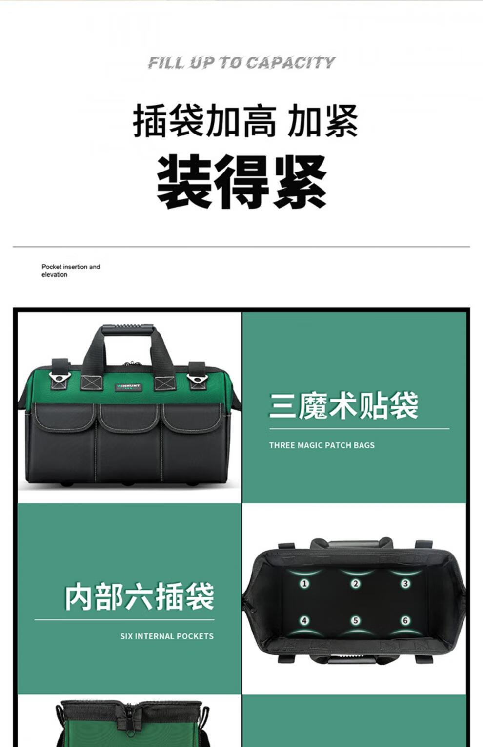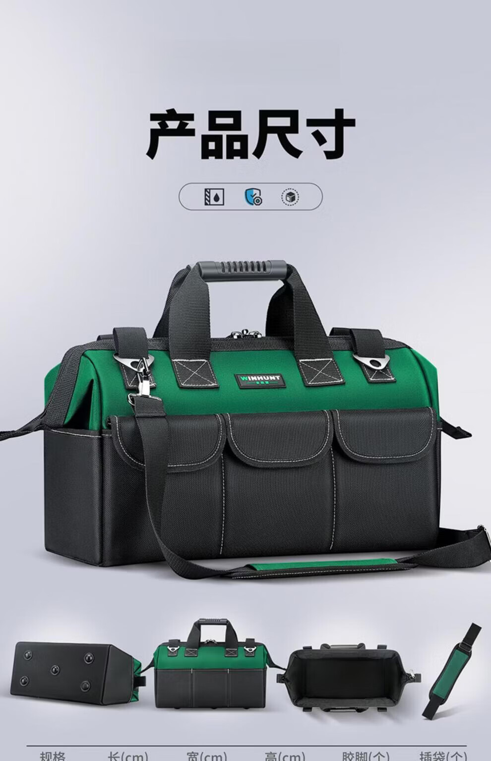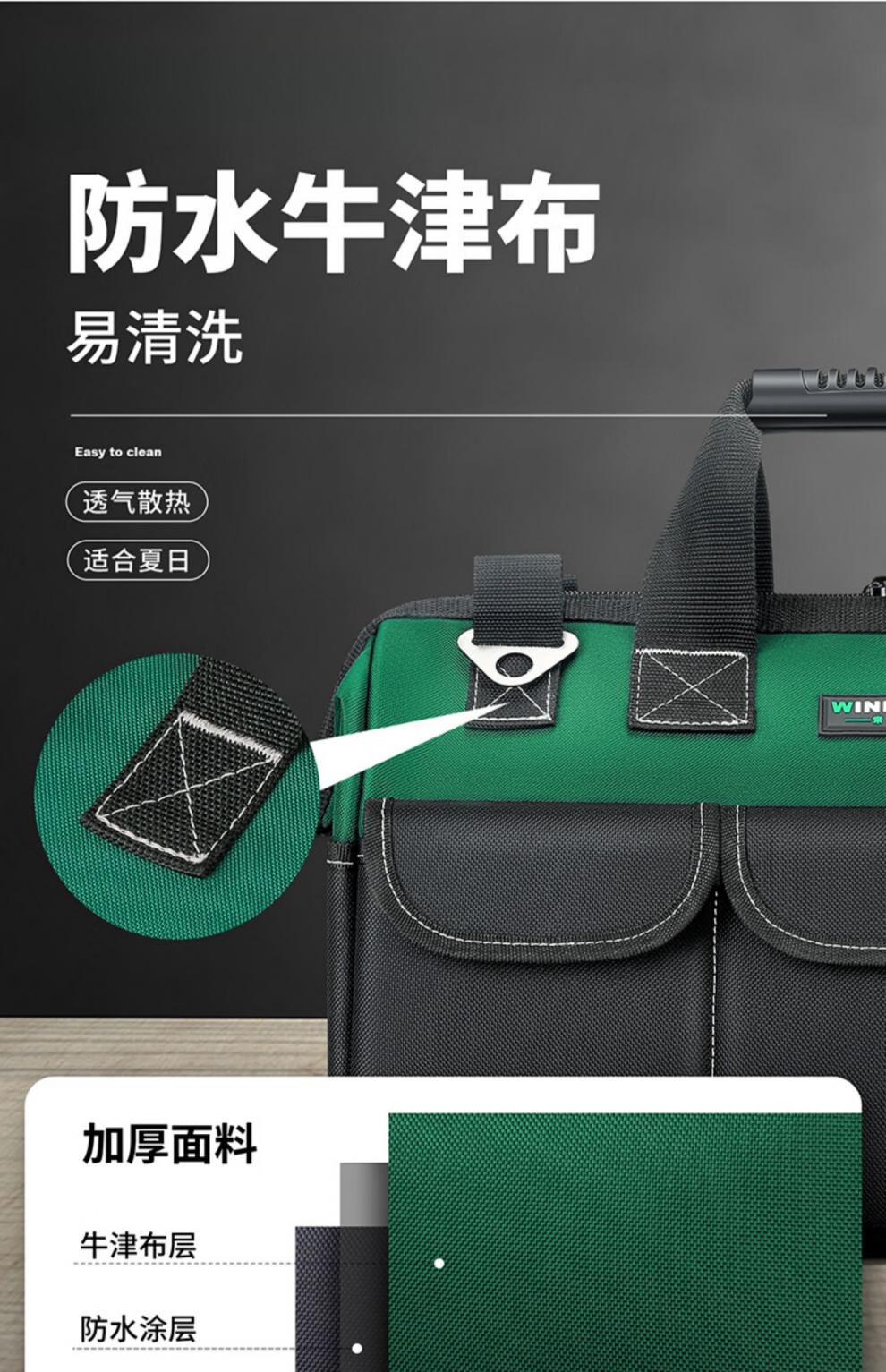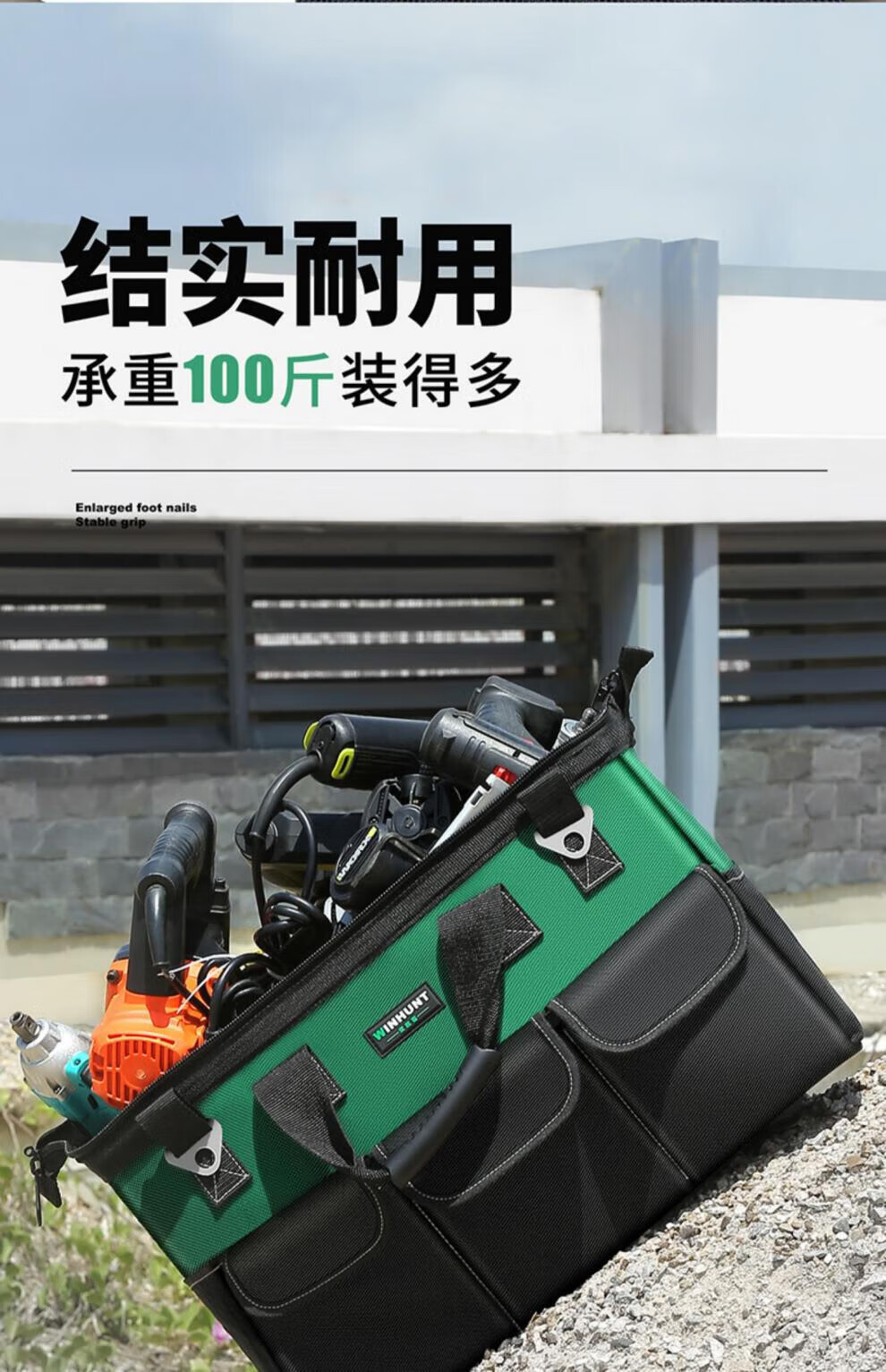 He Jiagong portable multi-functional strong and durable electrical canvas repair accessories storage hardware tool bag 18-inch load-bearing and wear-resistant plastic bottom steel nail reinforcement 5 layers of fabric + shoulder strap
