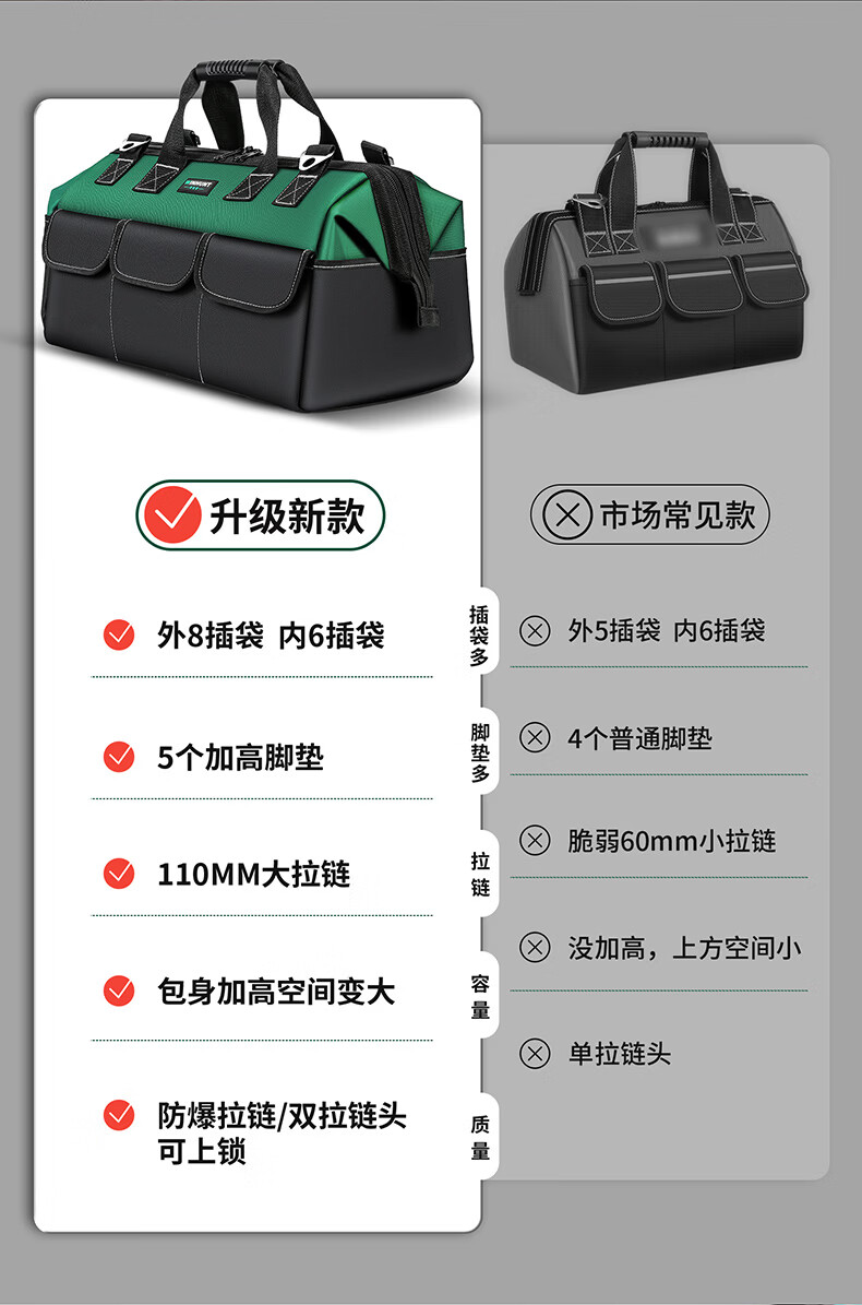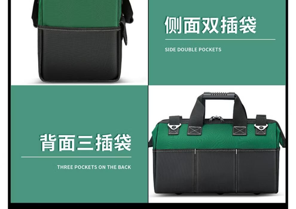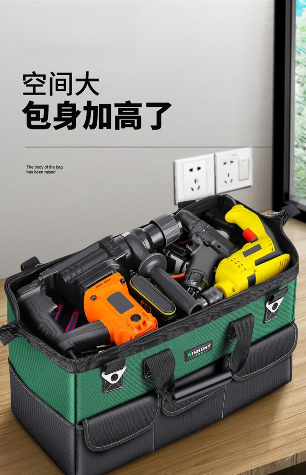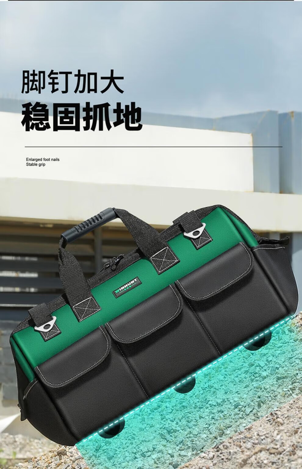 He Jiagong portable multi-functional strong and durable electrical canvas repair accessories storage hardware tool bag 18-inch load-bearing and wear-resistant plastic bottom steel nail reinforcement 5 layers of fabric + shoulder strap