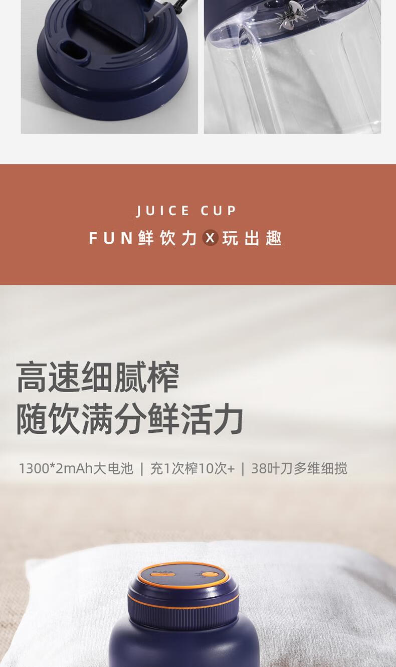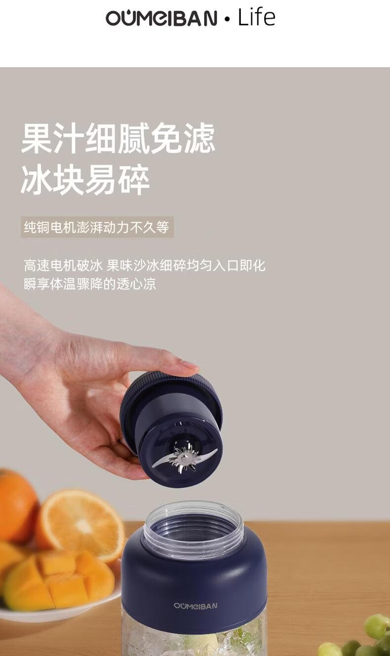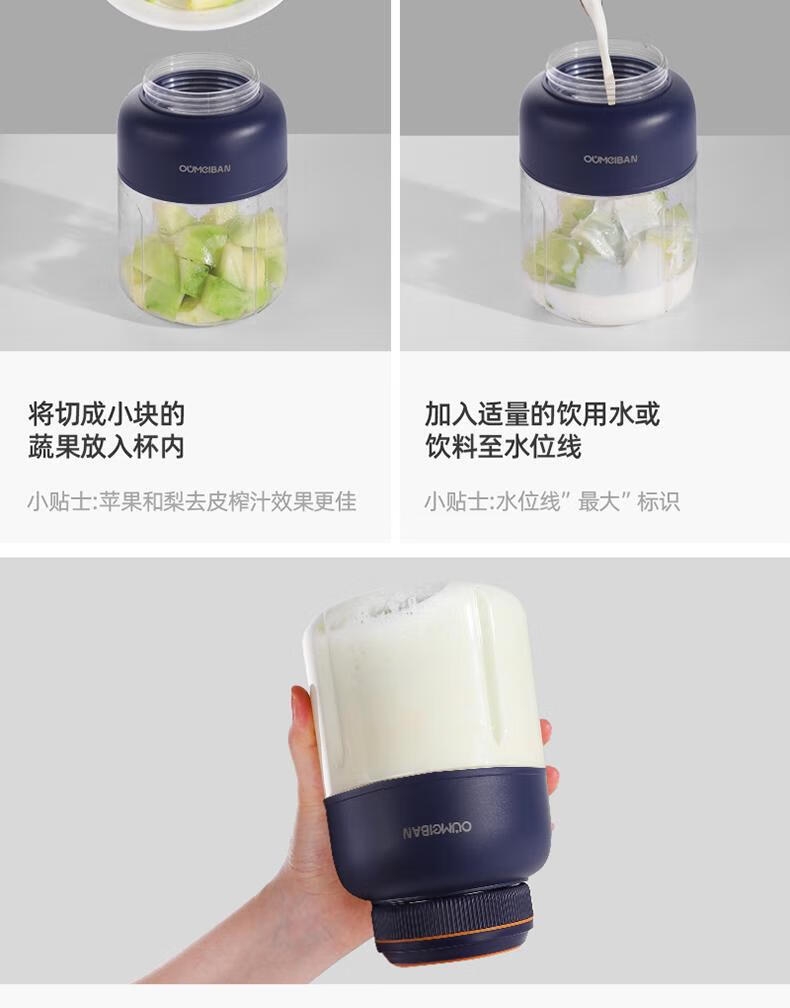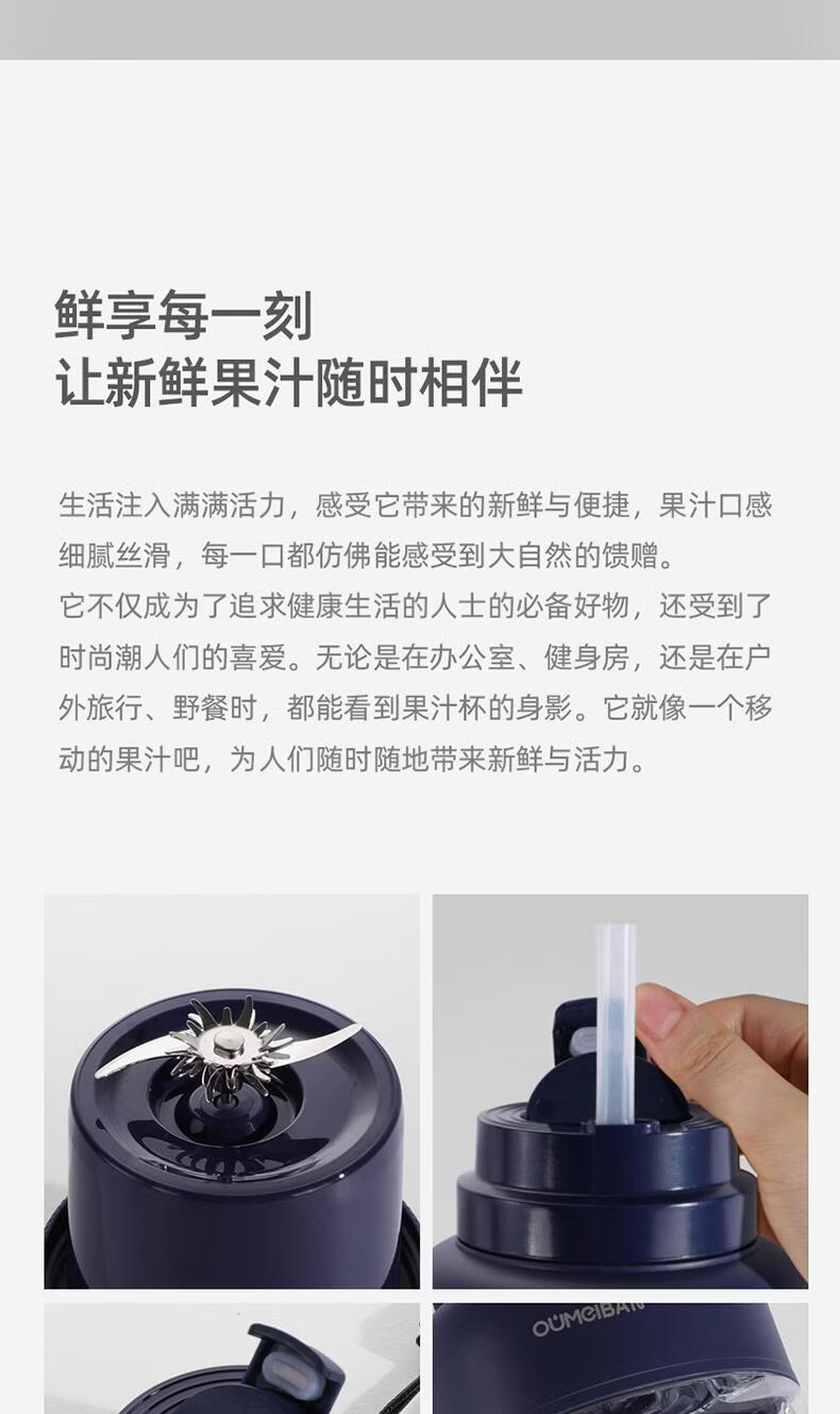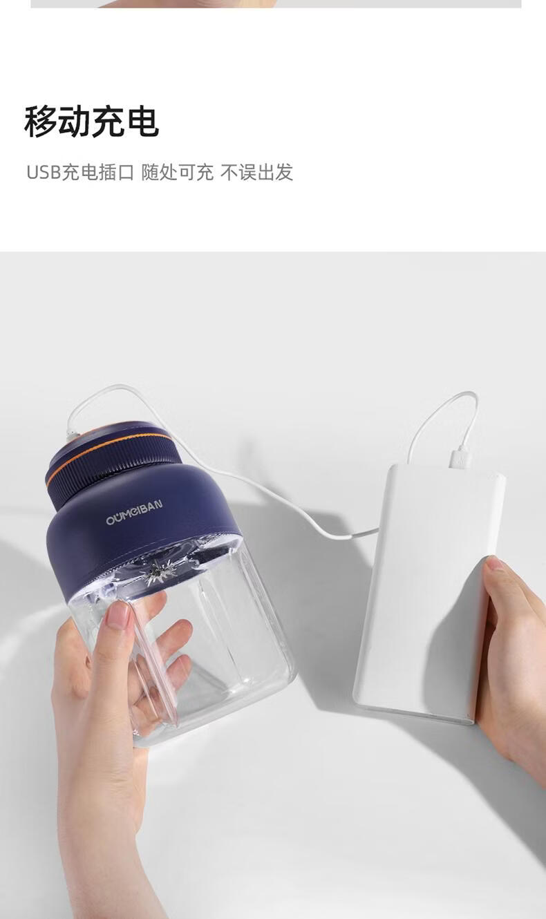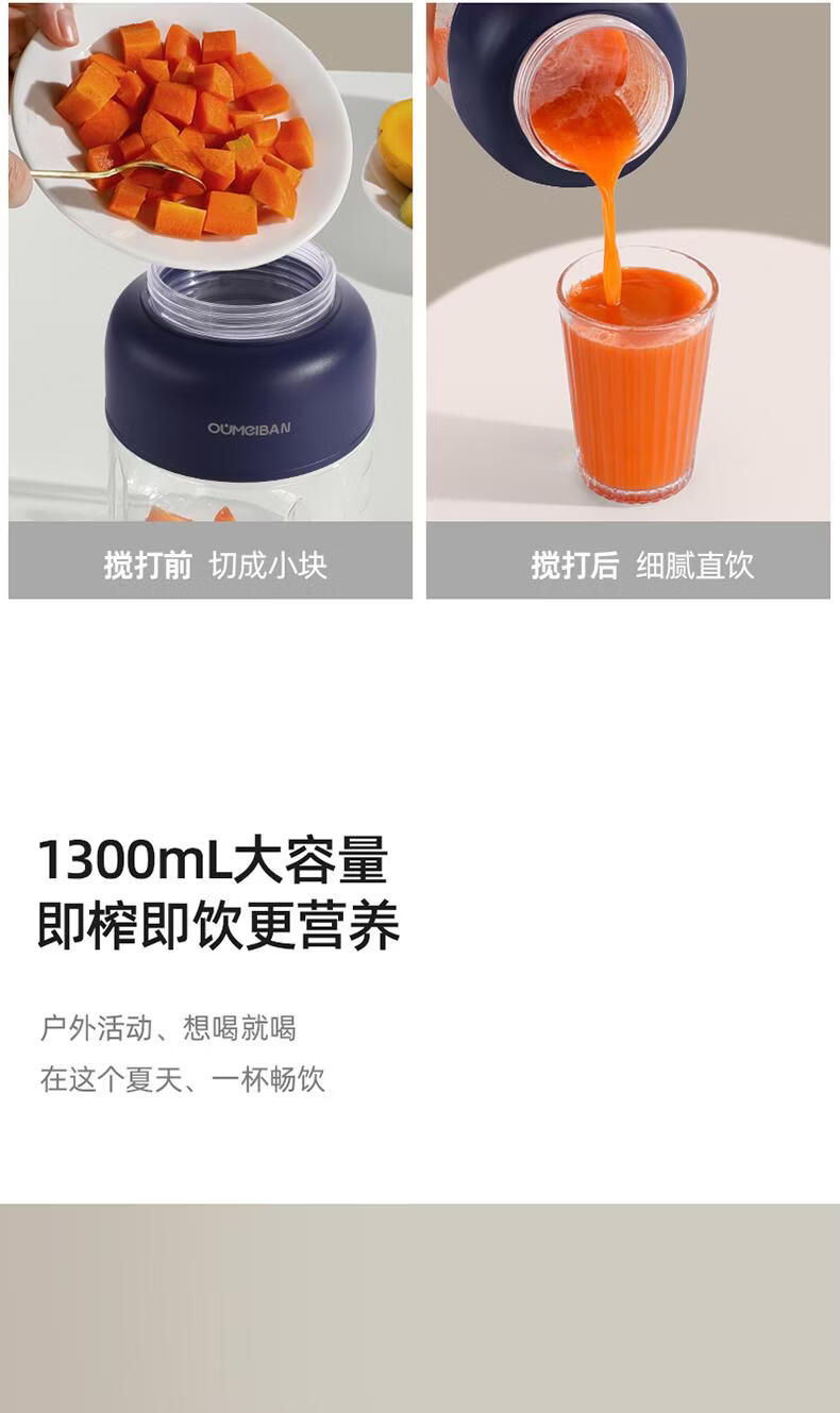 Oumeibang 1300 juicer 38-page knife can crush ice portable multi-functional electric large-capacity juicer fruit cup blue 1300ml large capacity single cup double lid