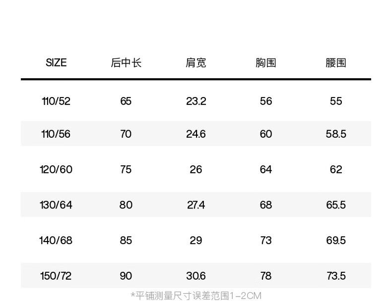 China (cm) 160-165/84-86 165-170 / 88-90 167-172 / 92-96 168-173 / 98-102 170-176 / 106-110