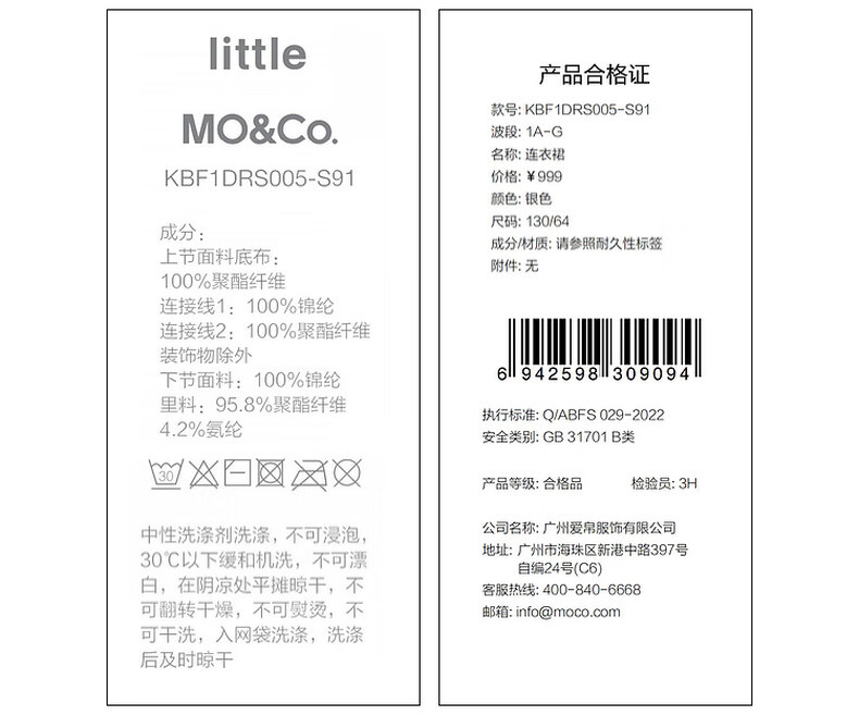 Little MO&Co. Jiajia same style little moco children's clothing 26 spring new style girls tutu skirt dress mesh skirt skirt silver 100 110/52