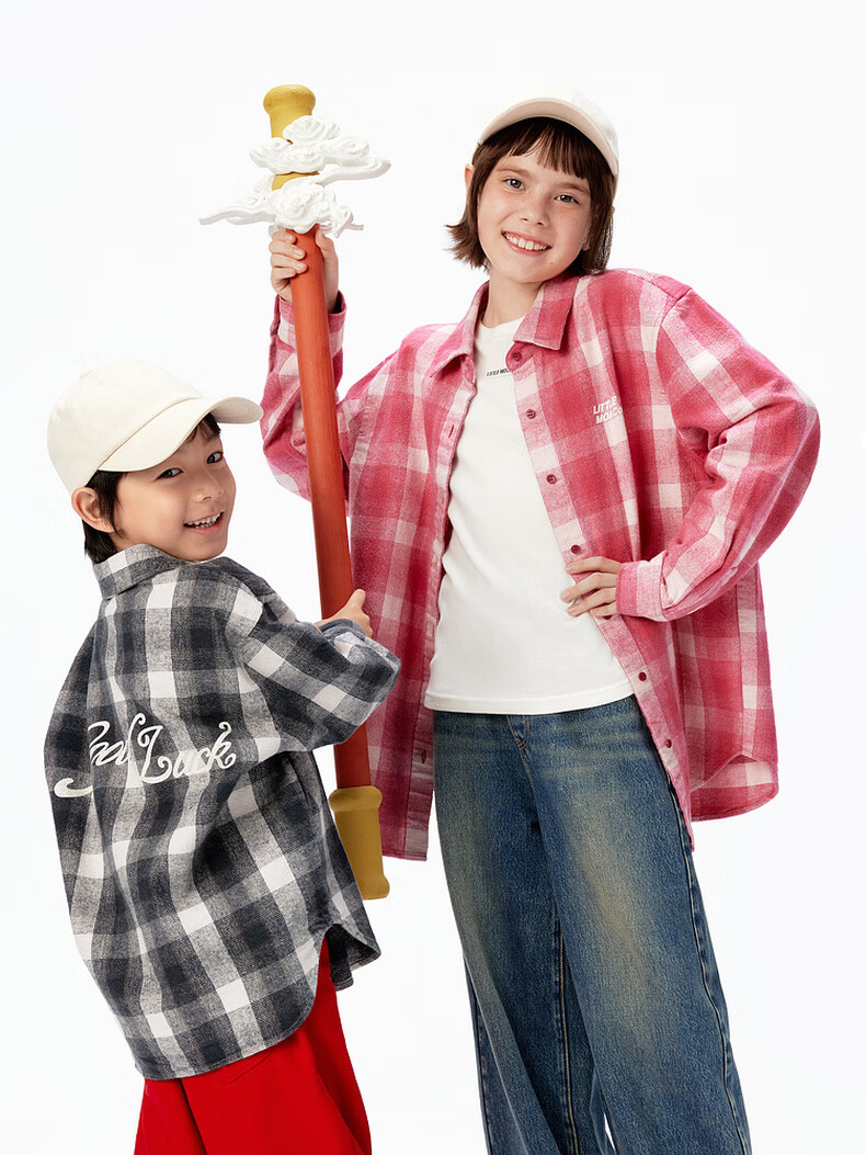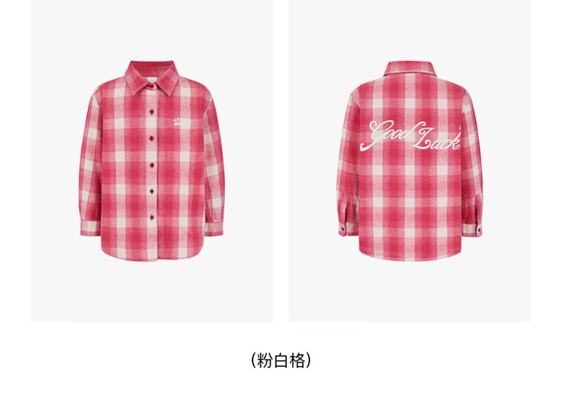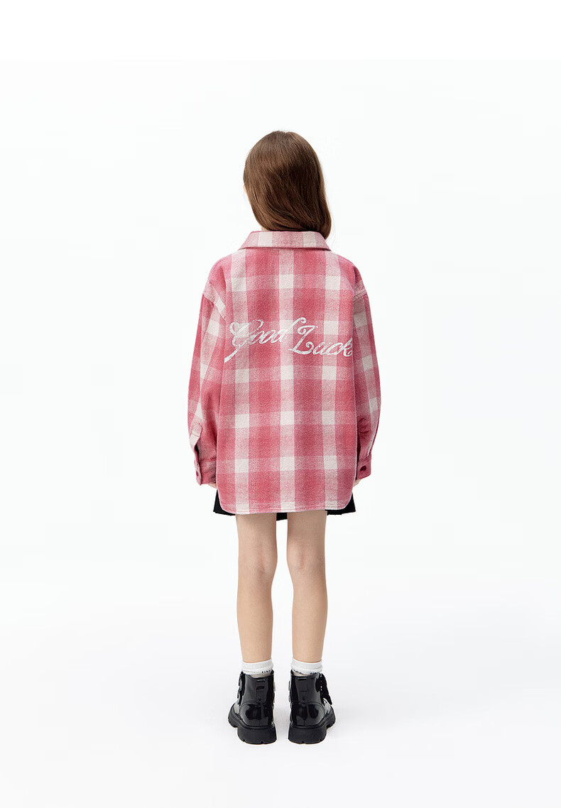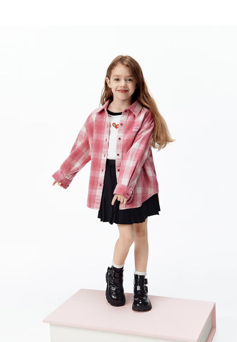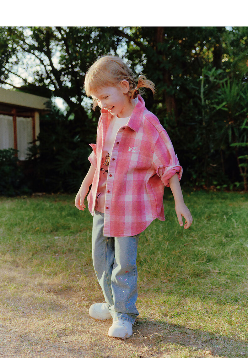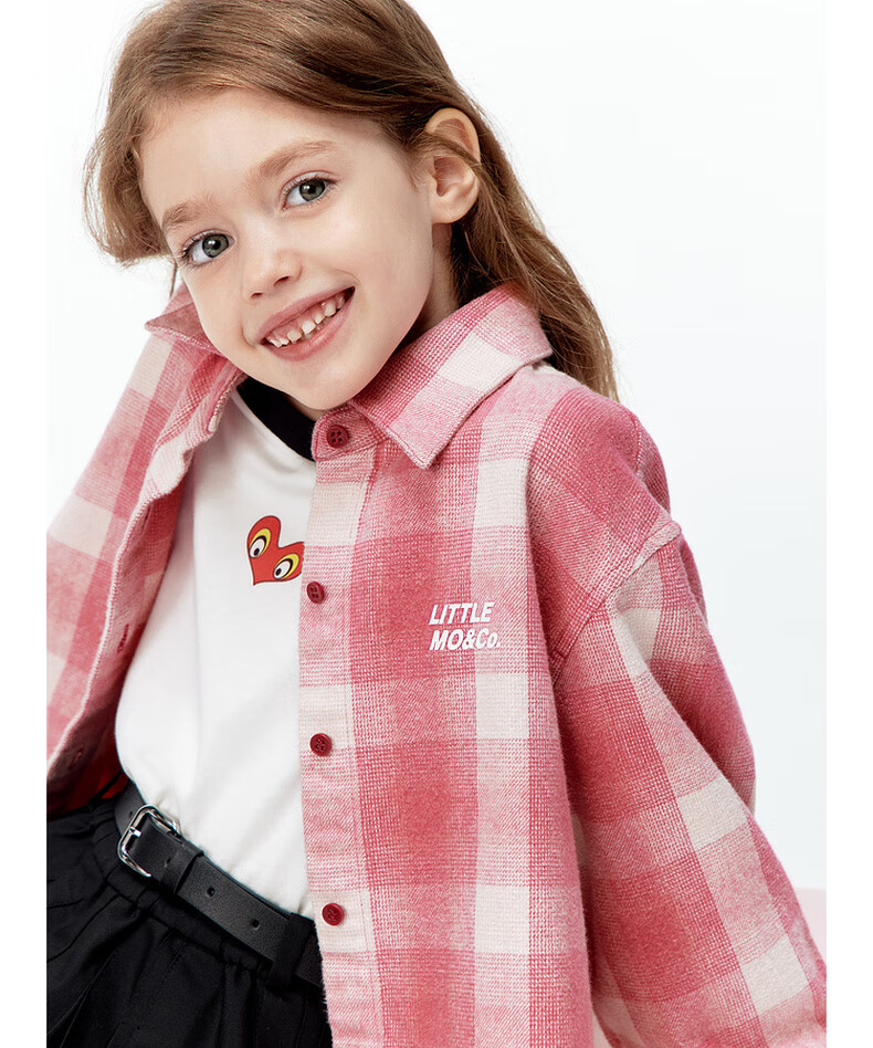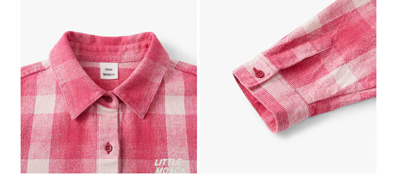 Little MO&Co. Show same style little moco children's clothing 26 new children's pure cotton plaid shirt printed long-sleeved parent-child wear pink and white plaid 110 110/56