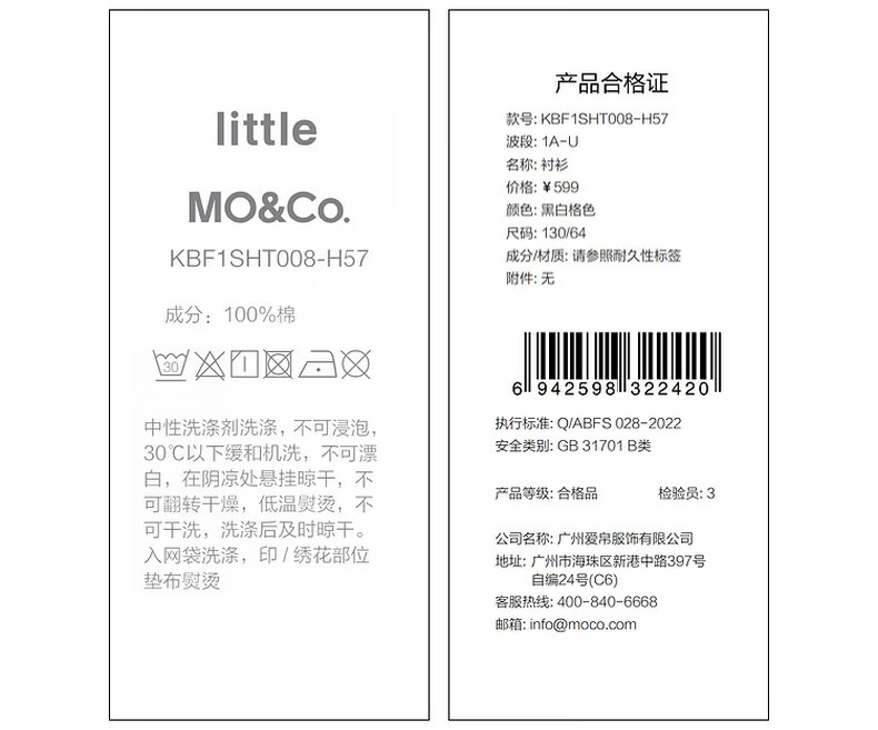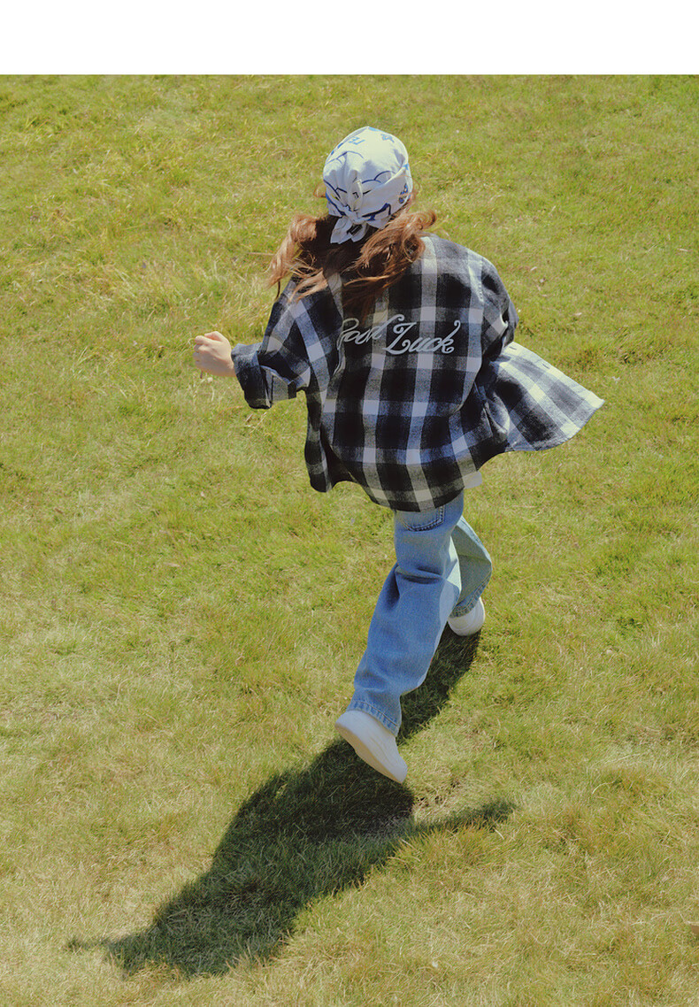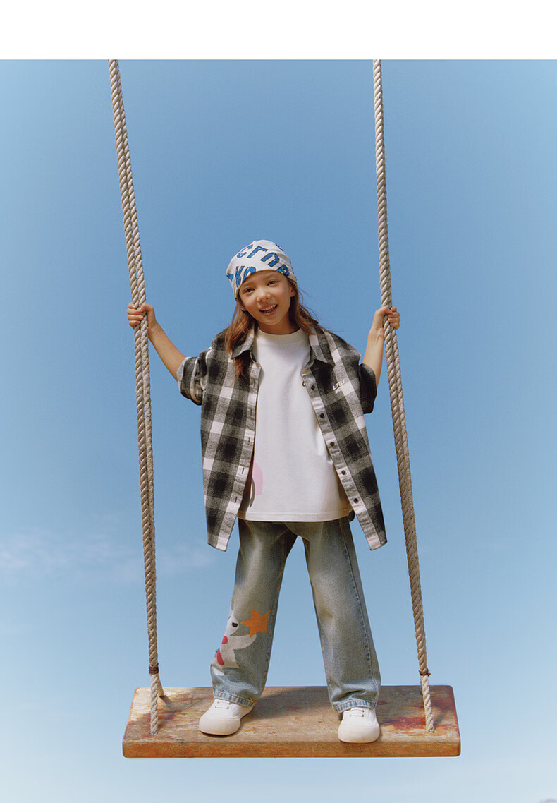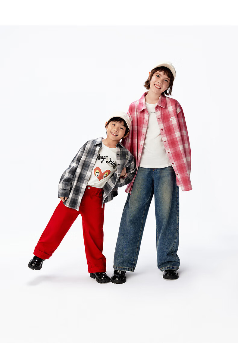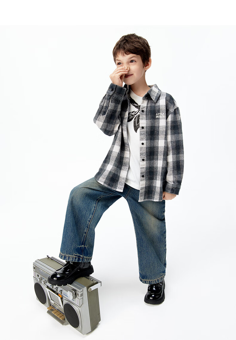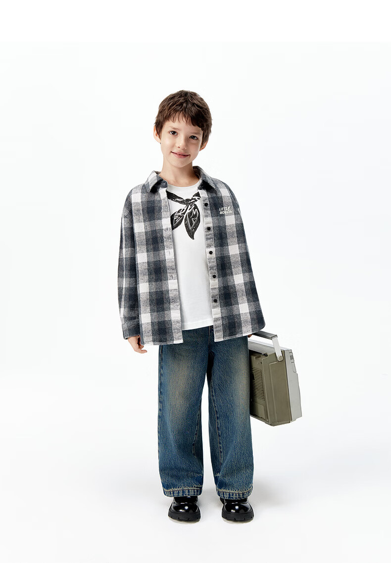 Little MO&Co. Show same style little moco children's clothing 26 new children's pure cotton plaid shirt printed long-sleeved parent-child wear pink and white plaid 110 110/56