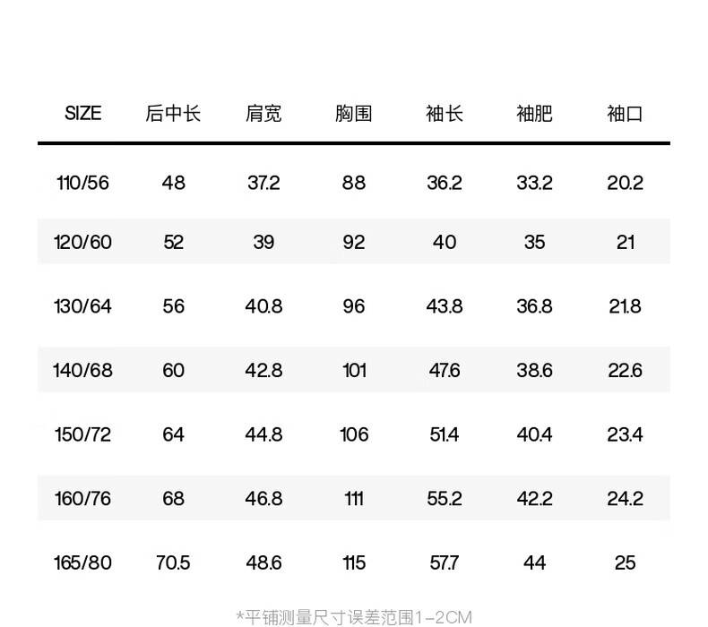 China (cm) 160-165/84-86 165-170 / 88-90 167-172 / 92-96 168-173 / 98-102 170-176 / 106-110