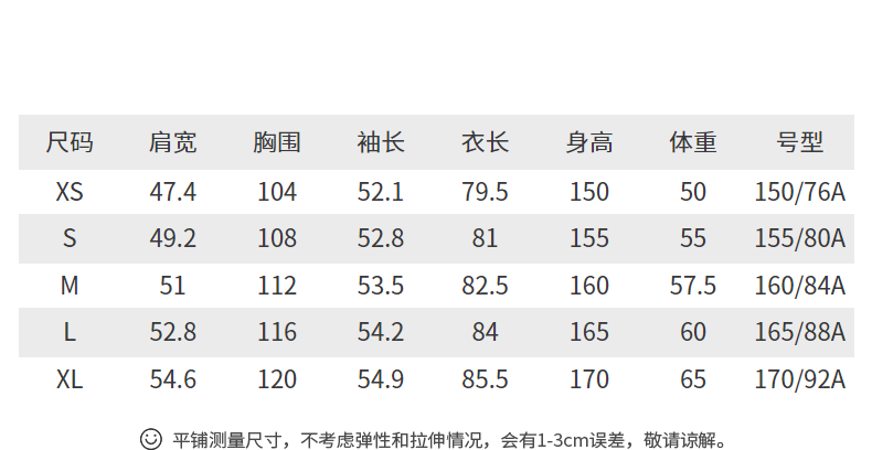 China (cm) 160-165/84-86 165-170 / 88-90 167-172 / 92-96 168-173 / 98-102 170-176 / 106-110