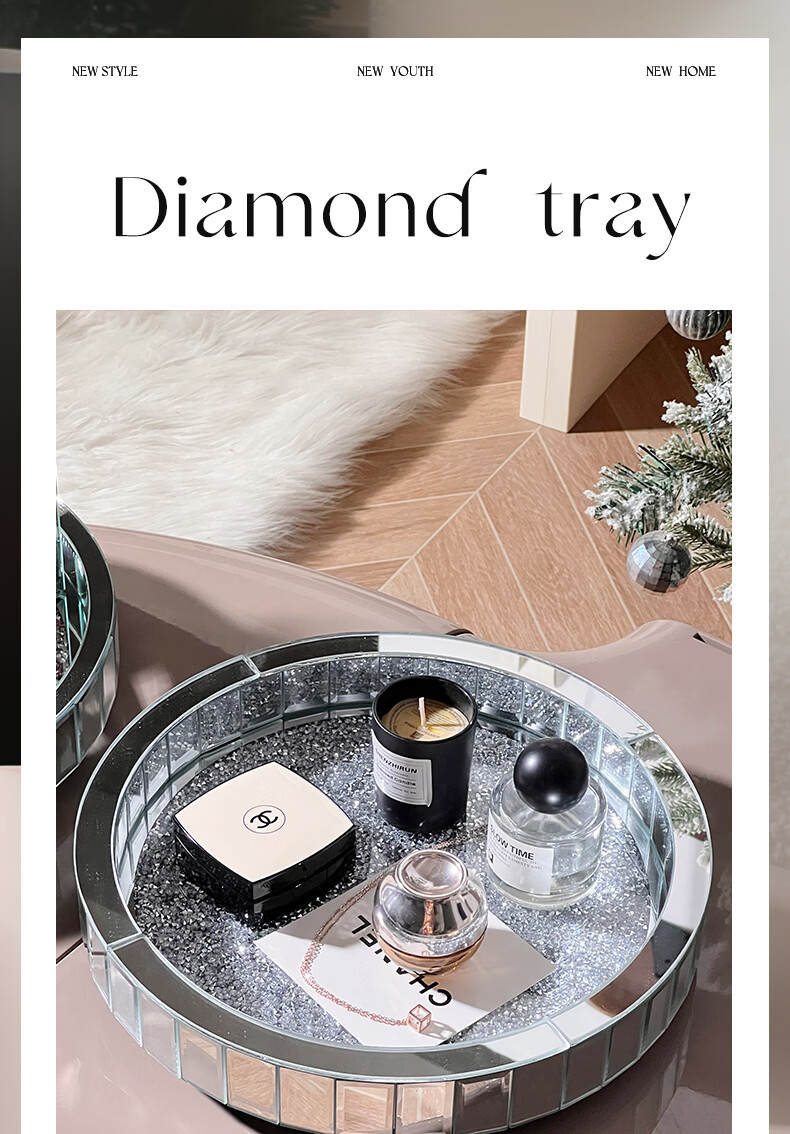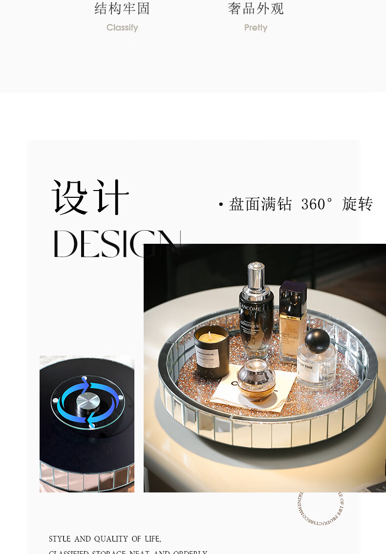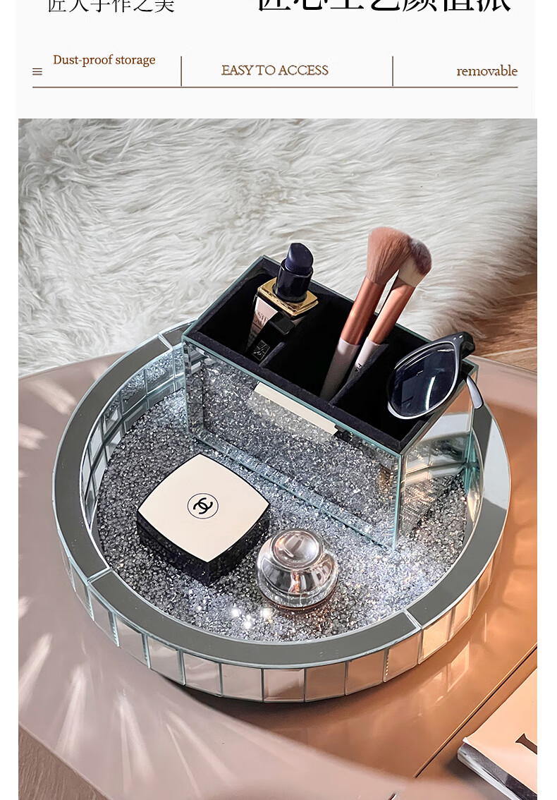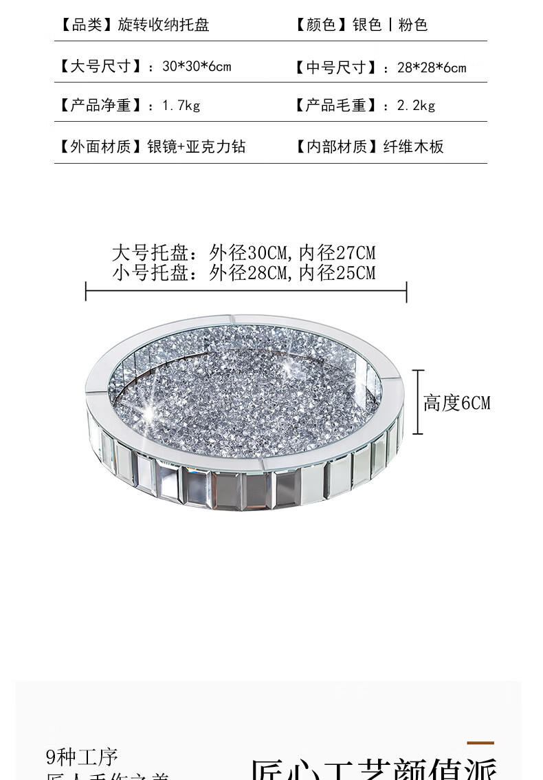 Vipero perfume storage rack rotatable perfume storage rack desktop cosmetics storage box skin care product storage rack entrance circle large silver diamond rotating tray diameter 30cm