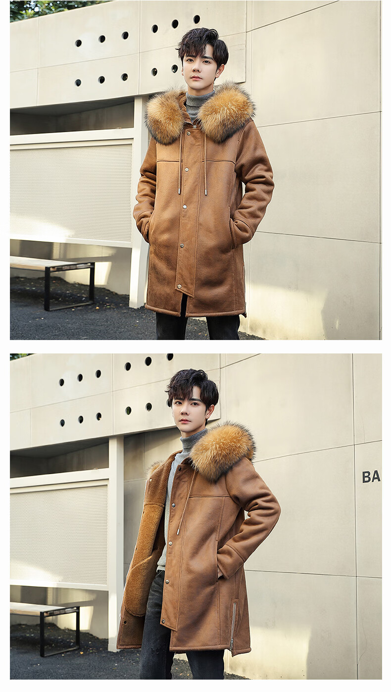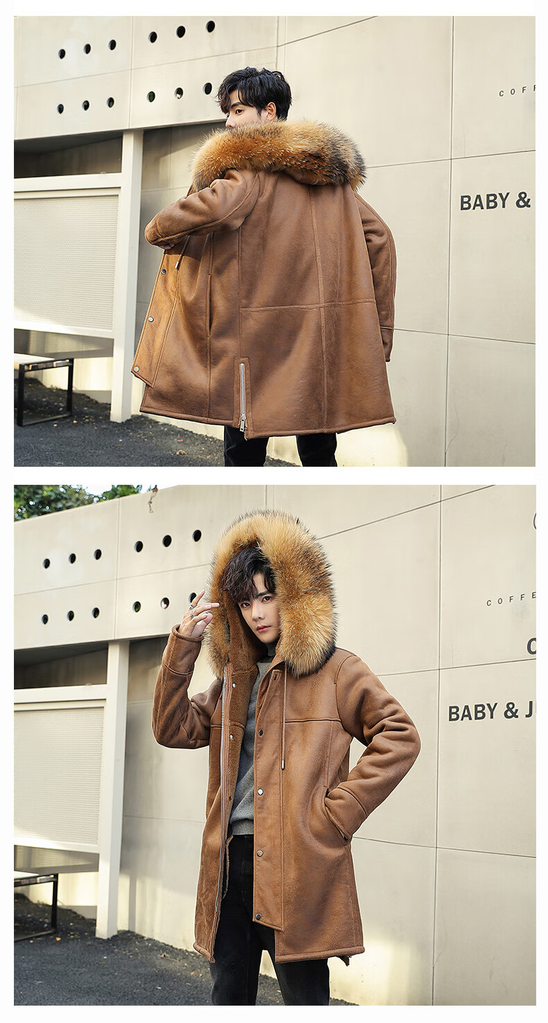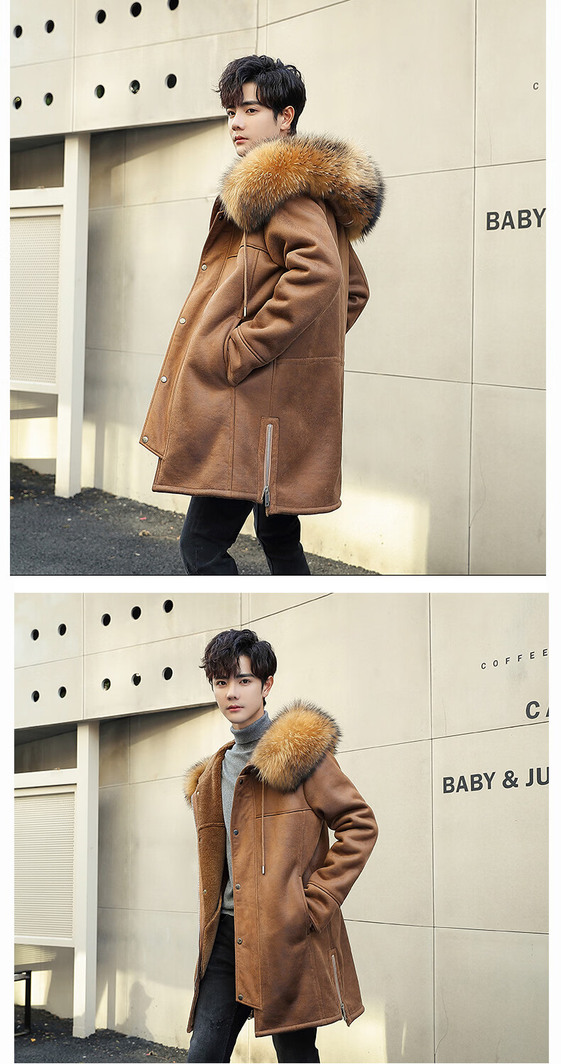 CHEVALPES international first-line brand 2025 new style parka men's fur all-in-one mid-length leather jacket wool lining fur outer brown L