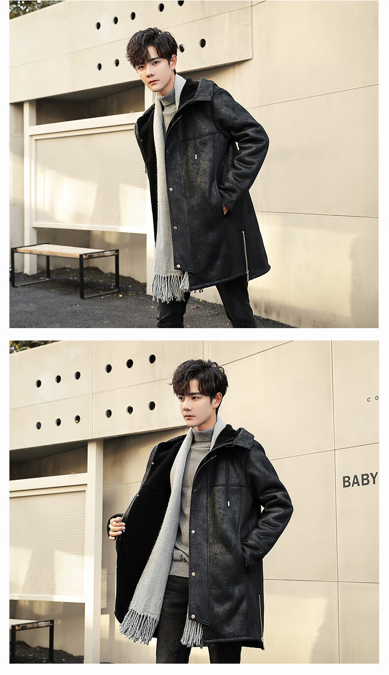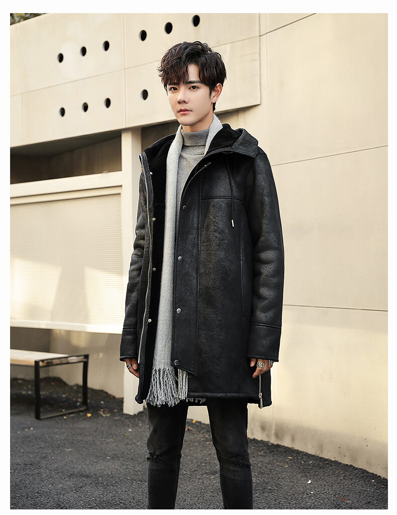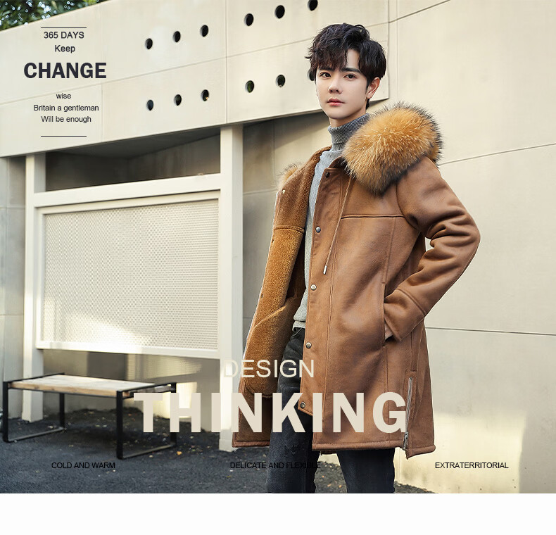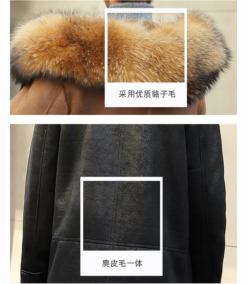 CHEVALPES international first-line brand 2025 new style parka men's fur all-in-one mid-length leather jacket wool lining fur outer brown L