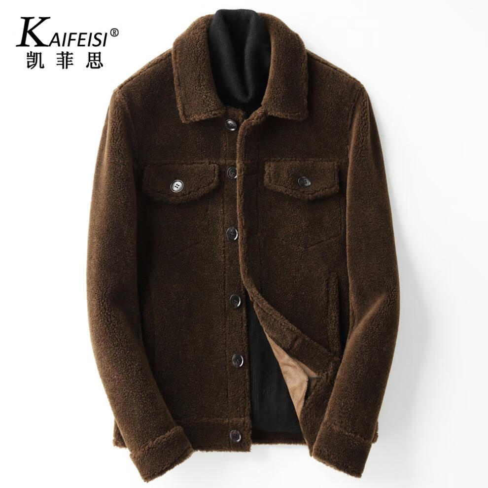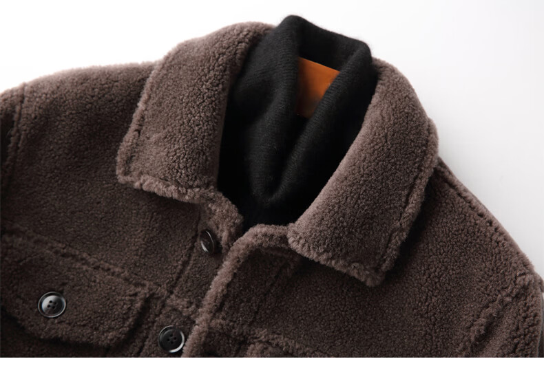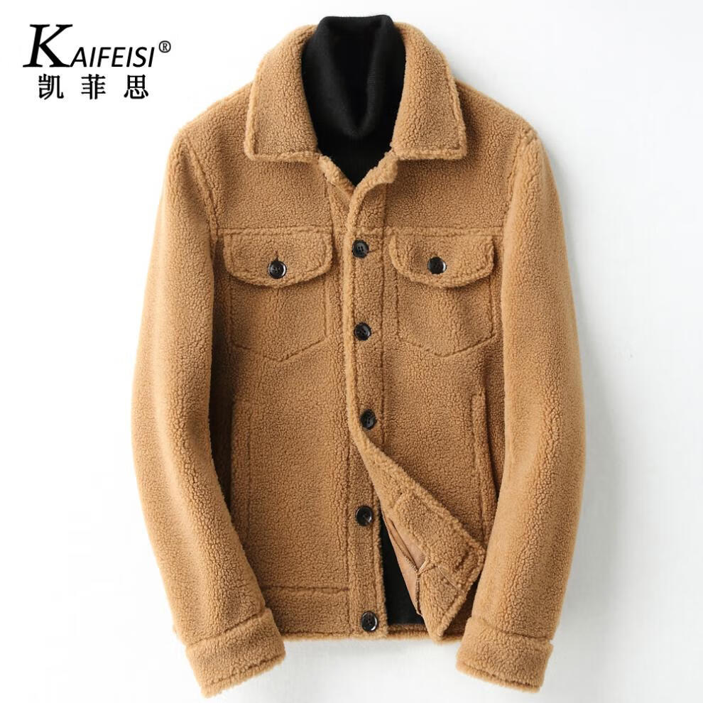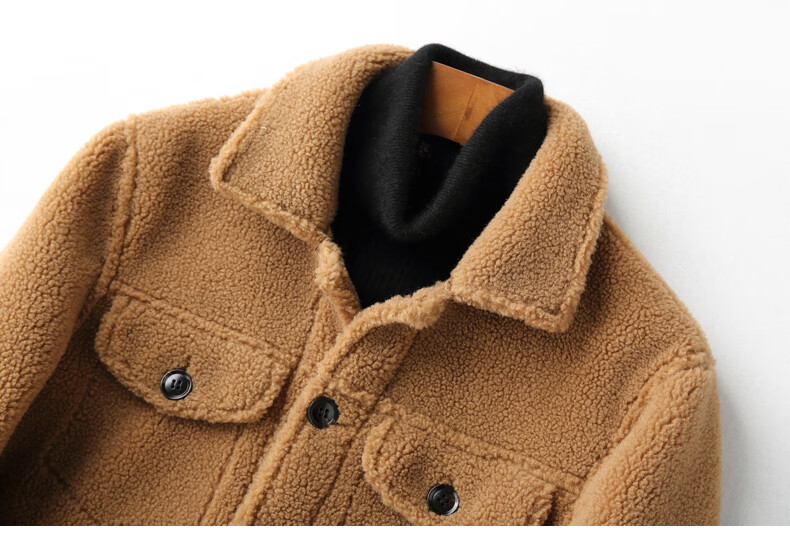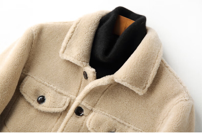 CHEVALPES国际一线品牌皮毛一体皮夹克男羊羔毛短款颗粒羊剪绒皮草皮衣外套 麦穗金 M 165
