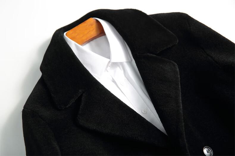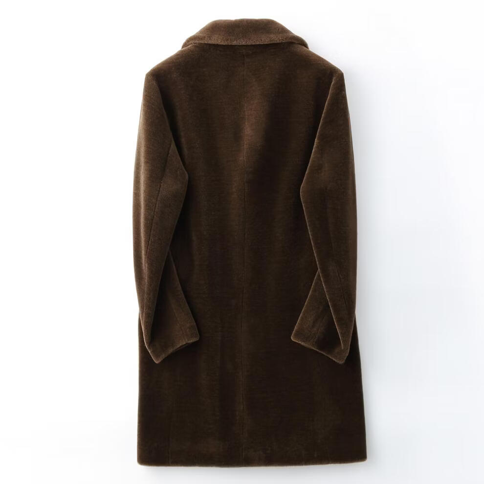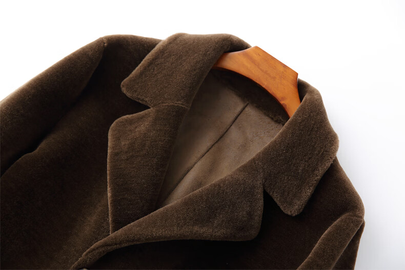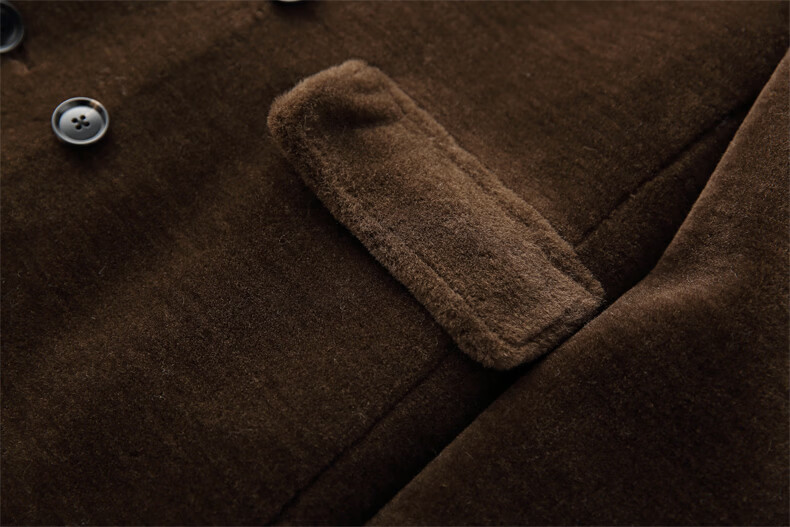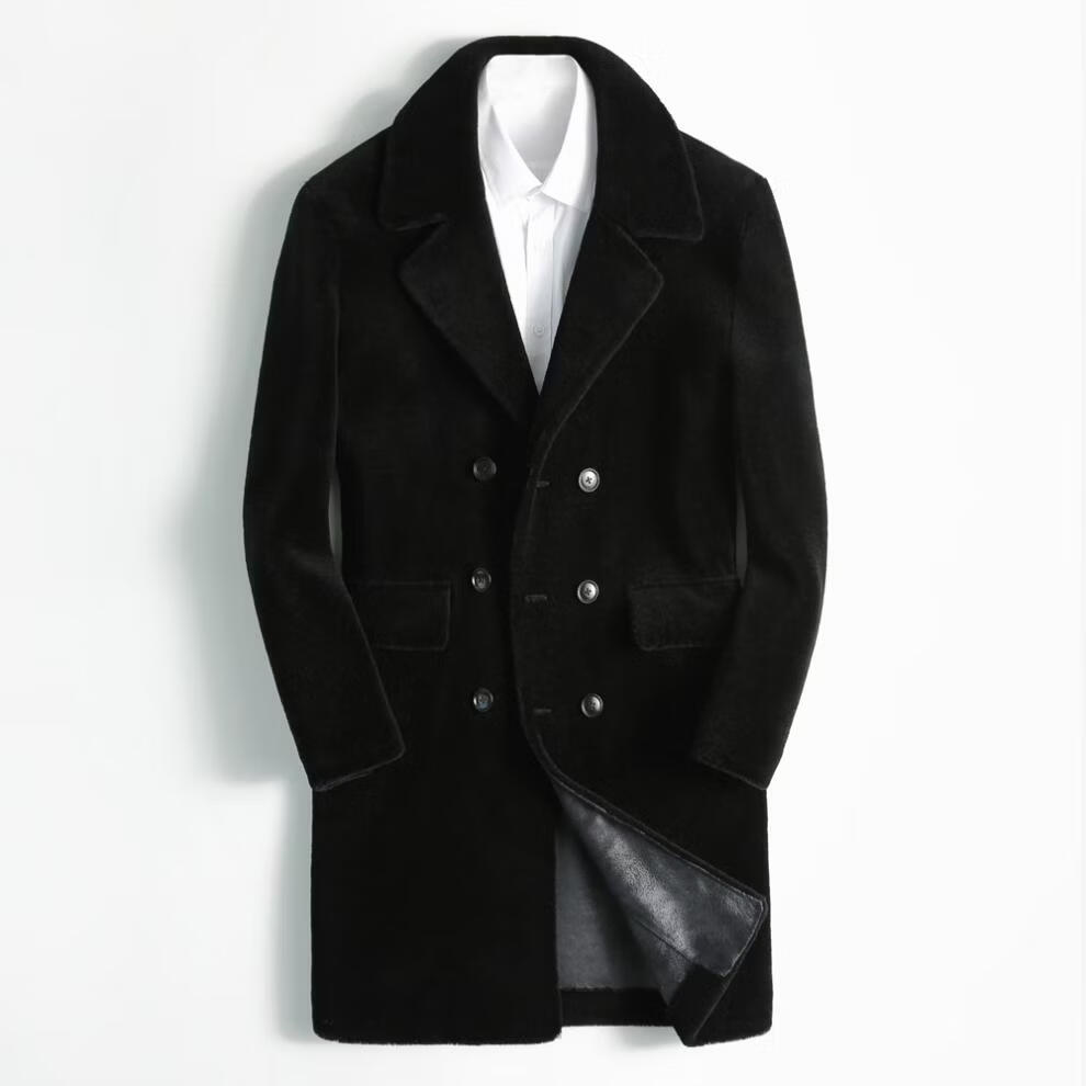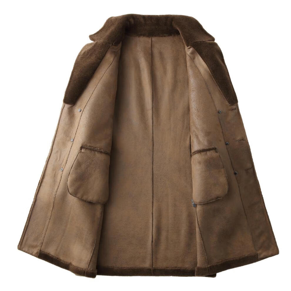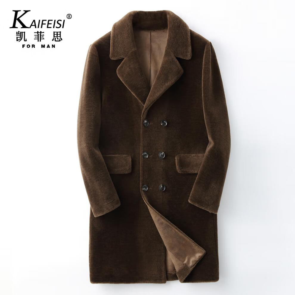 CHEVALPES international first-line brand suit collar sheep sheared double-breasted long fur coat one-piece lamb hair men's fur outer military coffee M 165