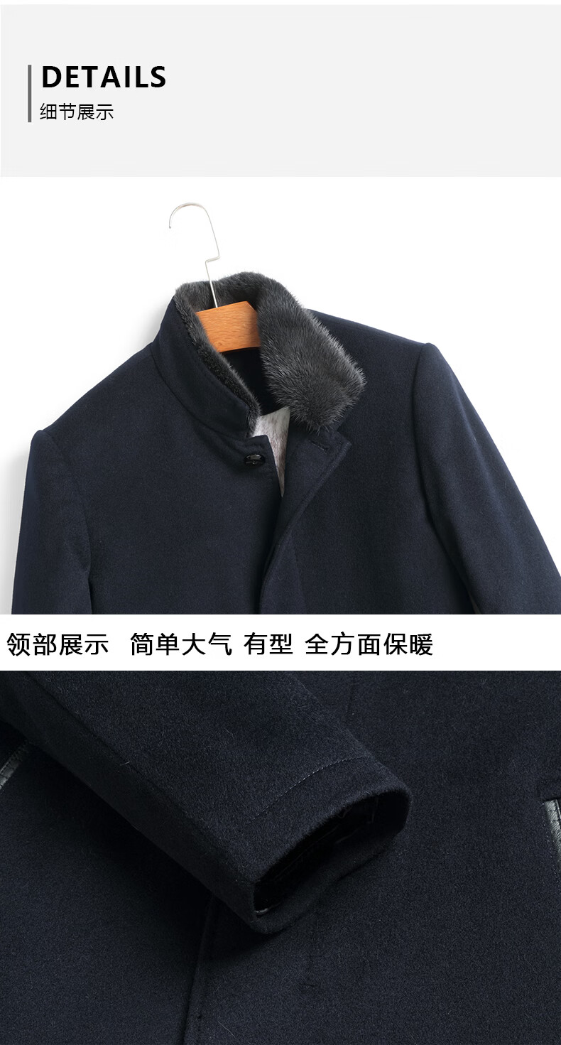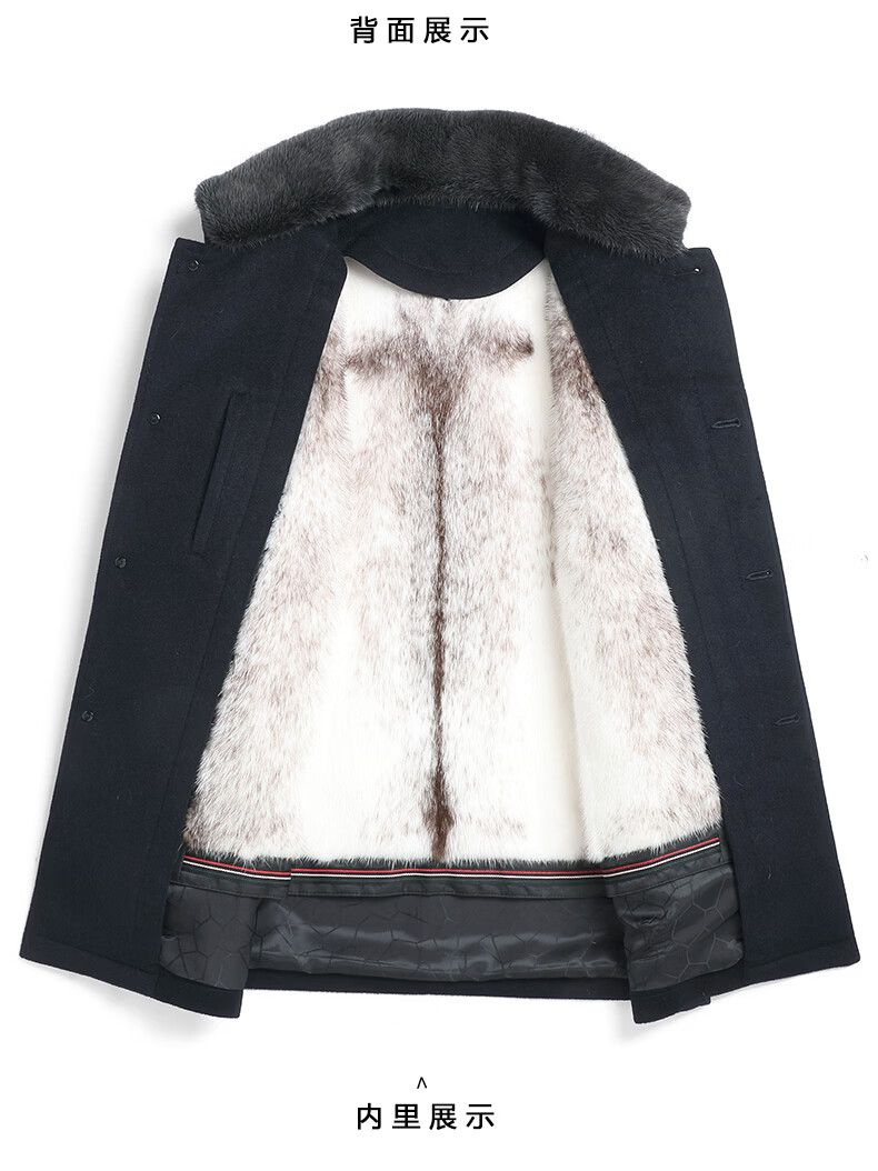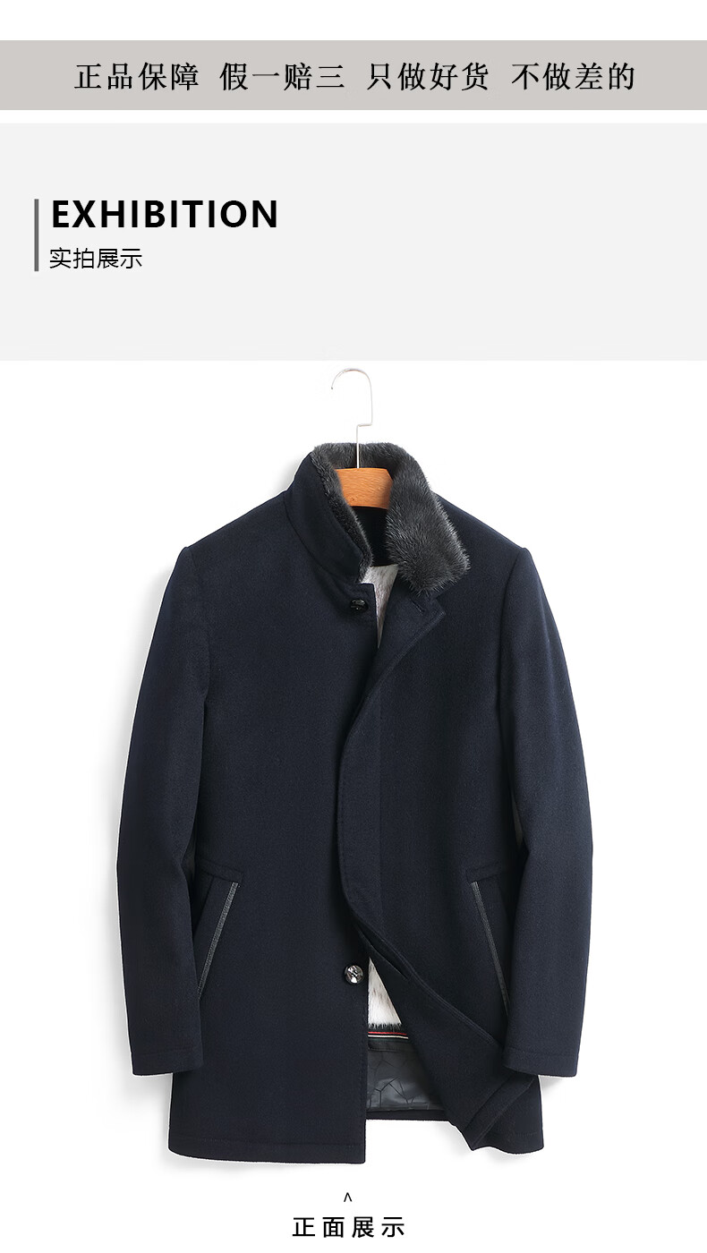 CHEVALPES international first-line brand pie overcome men's fur one-piece stand-up collar imported mink lining mink coat full mink navy blue mink with mink + rabbit fur sleeves M 165