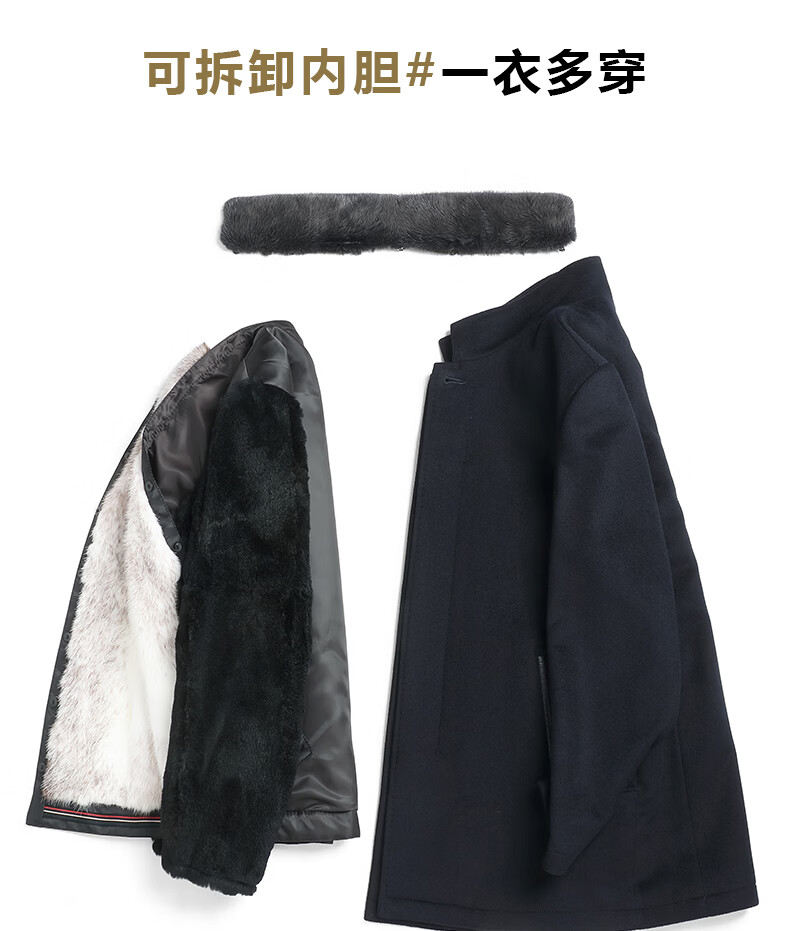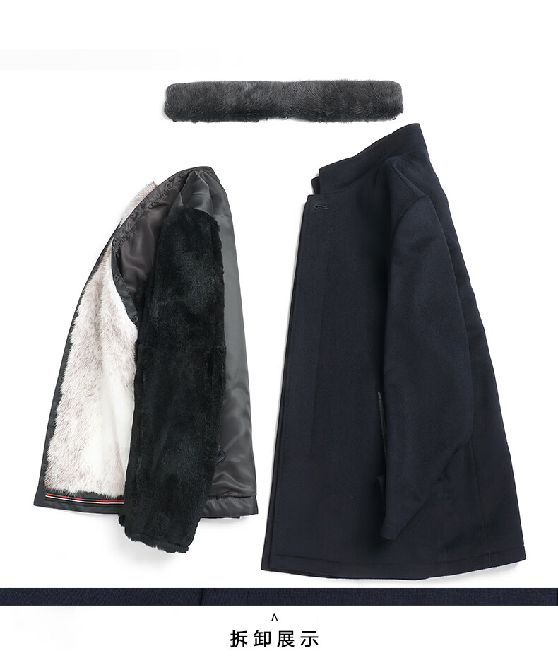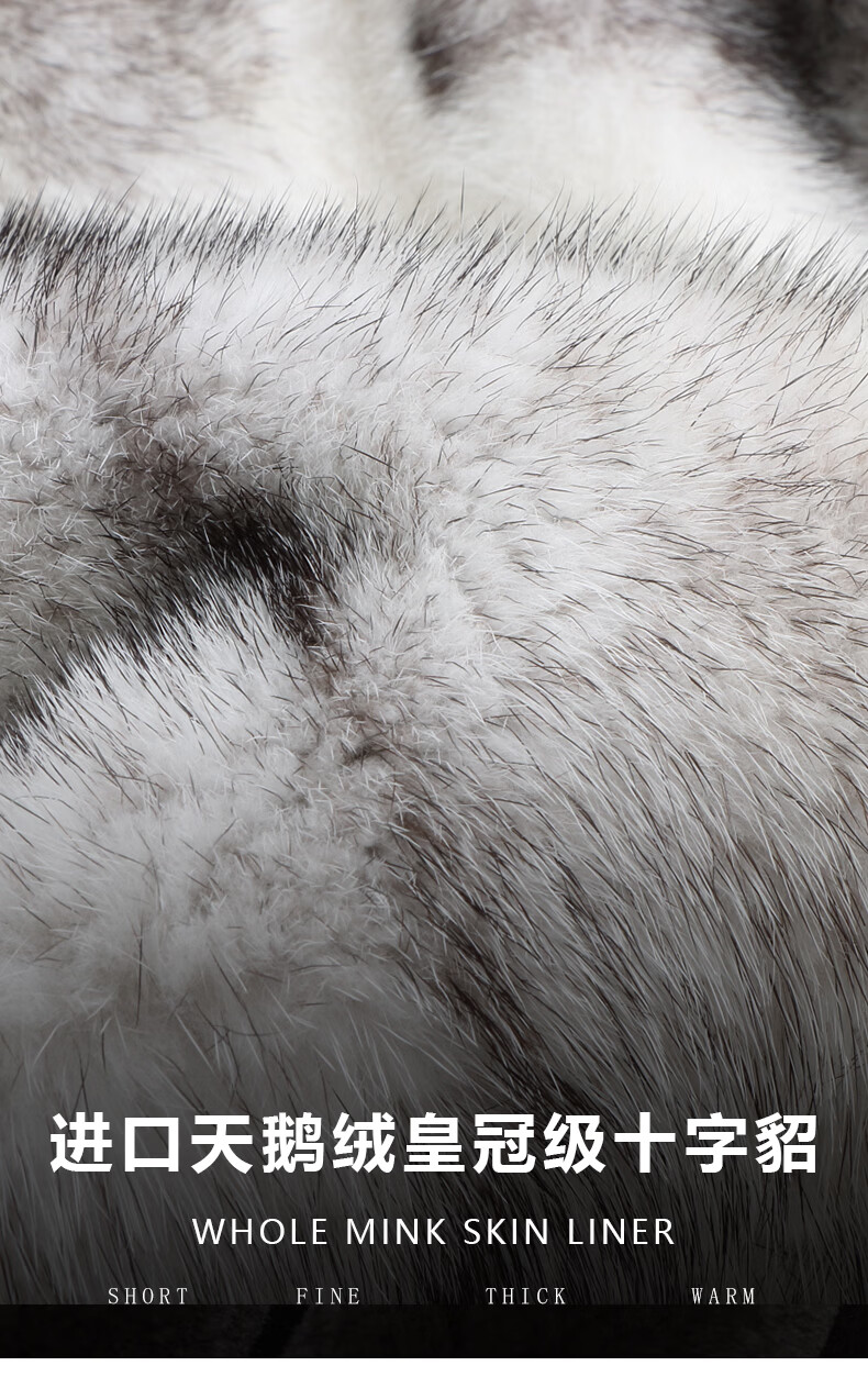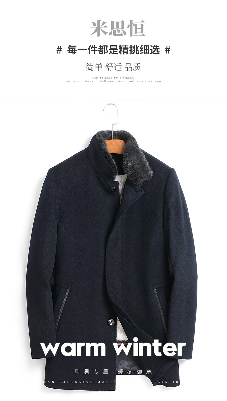 CHEVALPES international first-line brand pie overcome men's fur one-piece stand-up collar imported mink lining mink coat full mink navy blue mink with mink + rabbit fur sleeves M 165