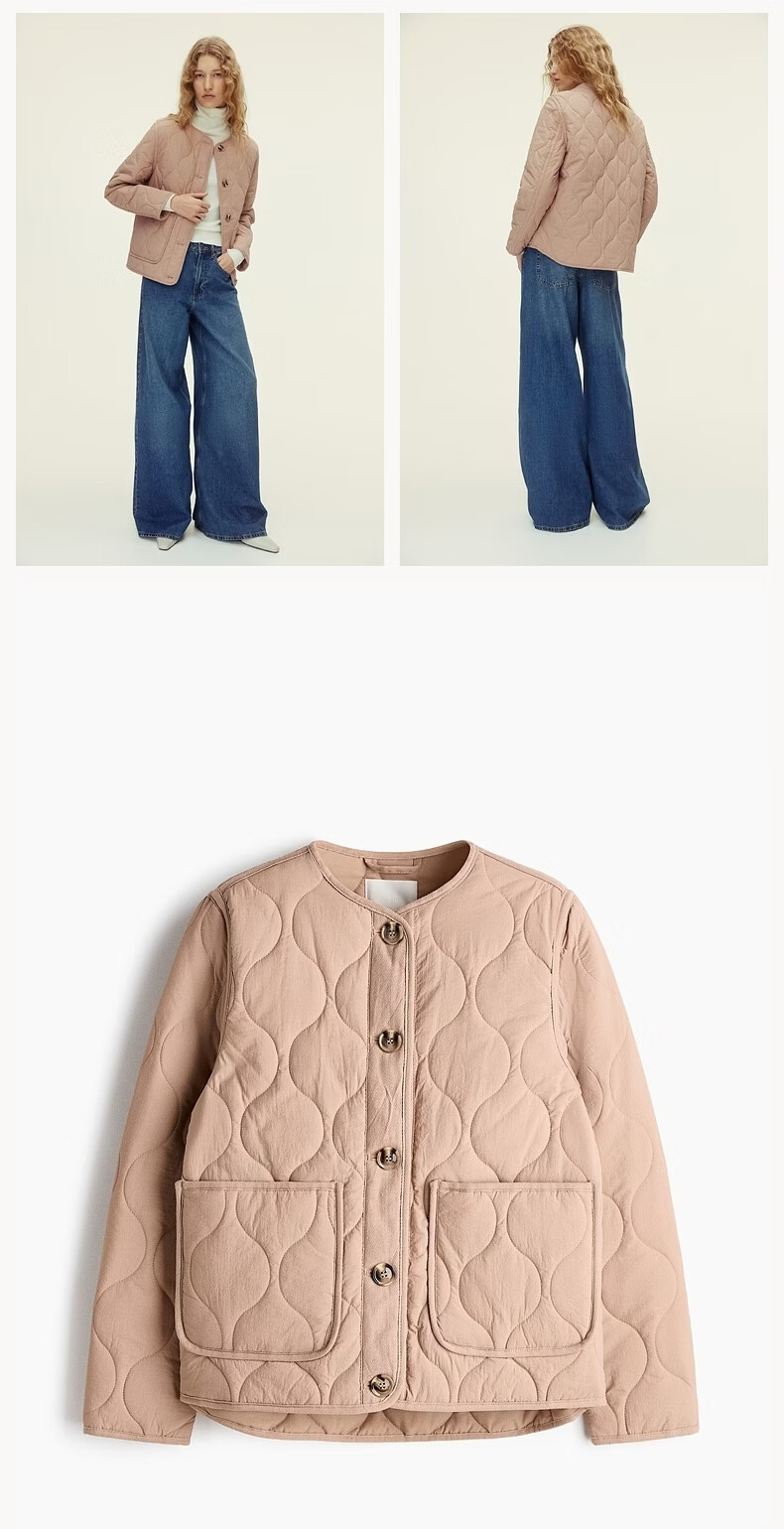 H&M2026 Spring New Women's Quilted Jacket 1315662 Beige XS 155/80