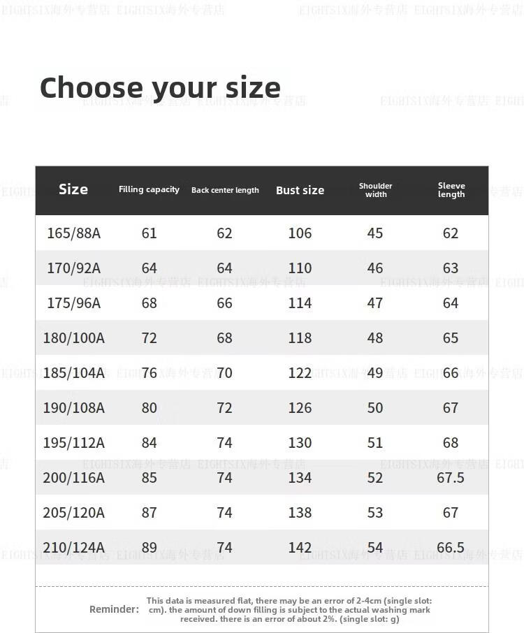 China (cm) 165 / 88-90 170 / 96-98 175 / 108-110 180 / 118-122 185 / 126-130