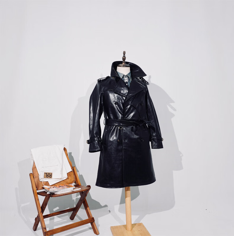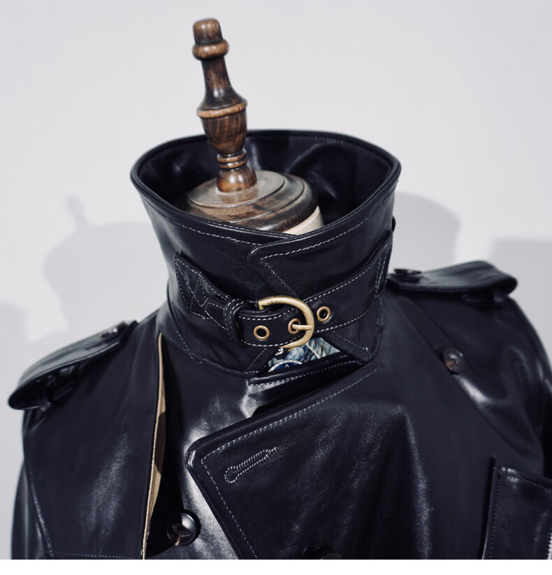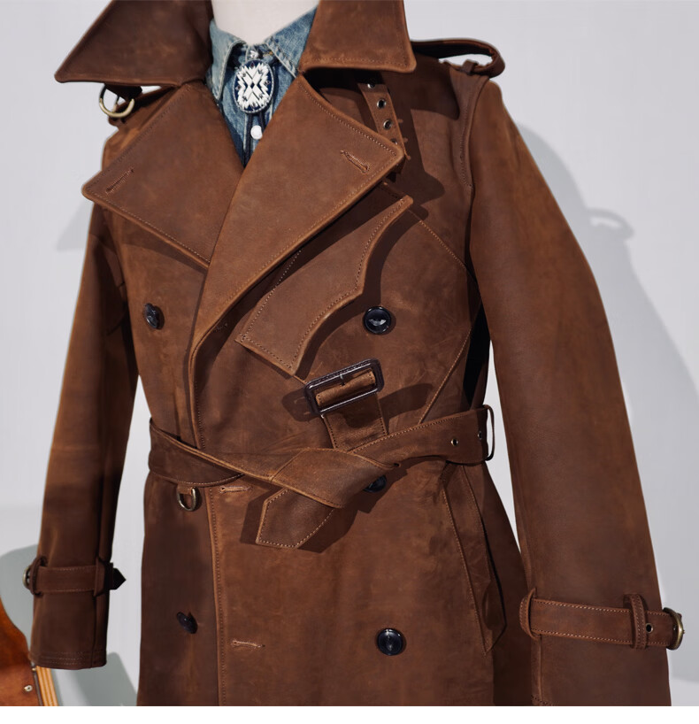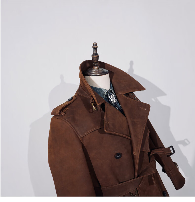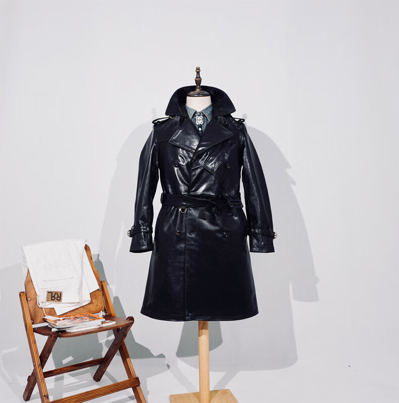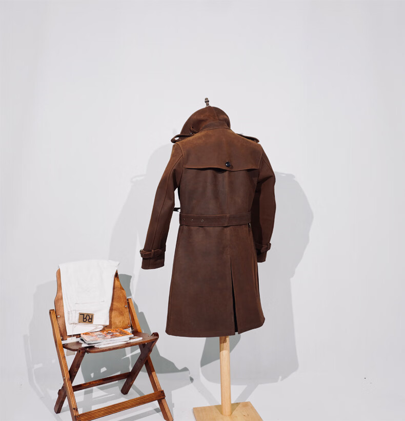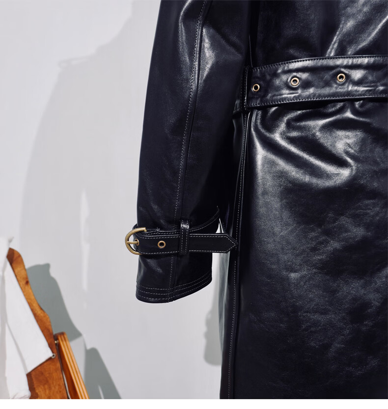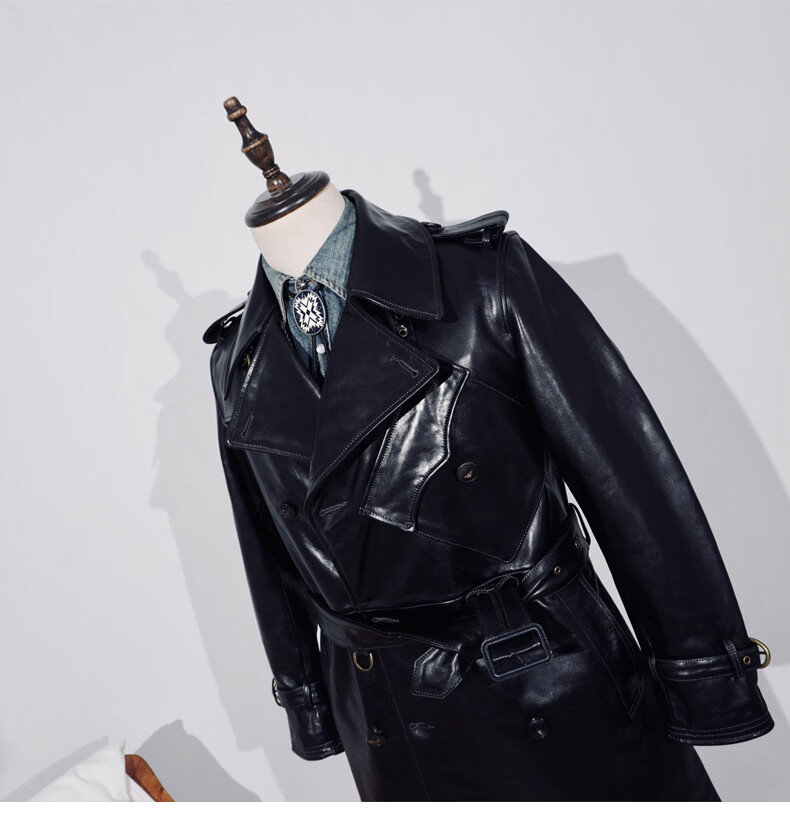 CHEVALPES国际一线品牌经典翻领中长款重磅马皮皮衣战壕风衣工装双排扣大衣 牛皮 S