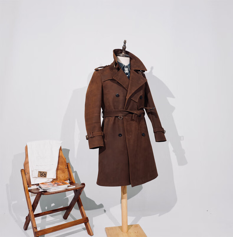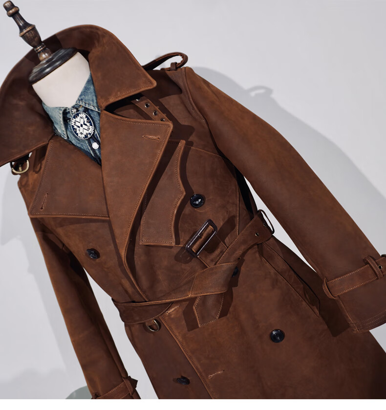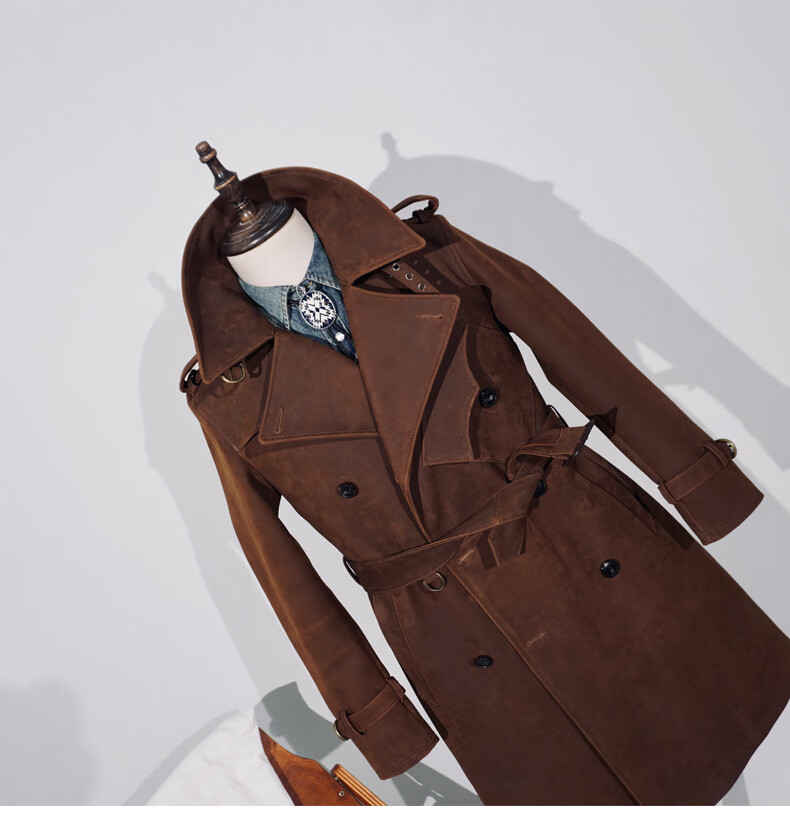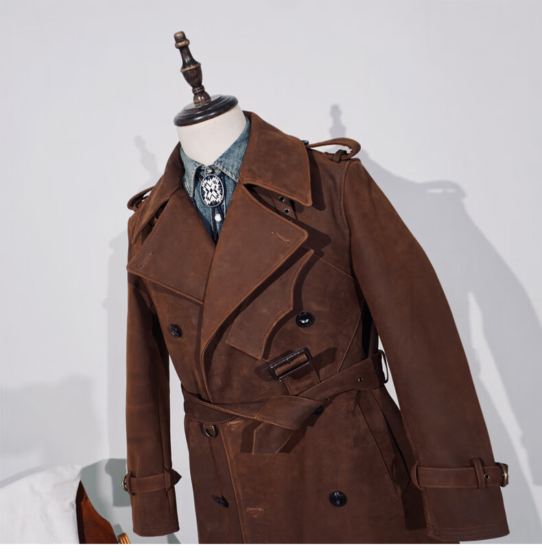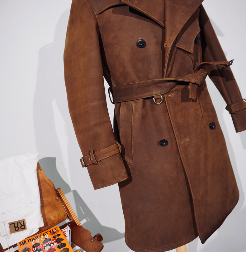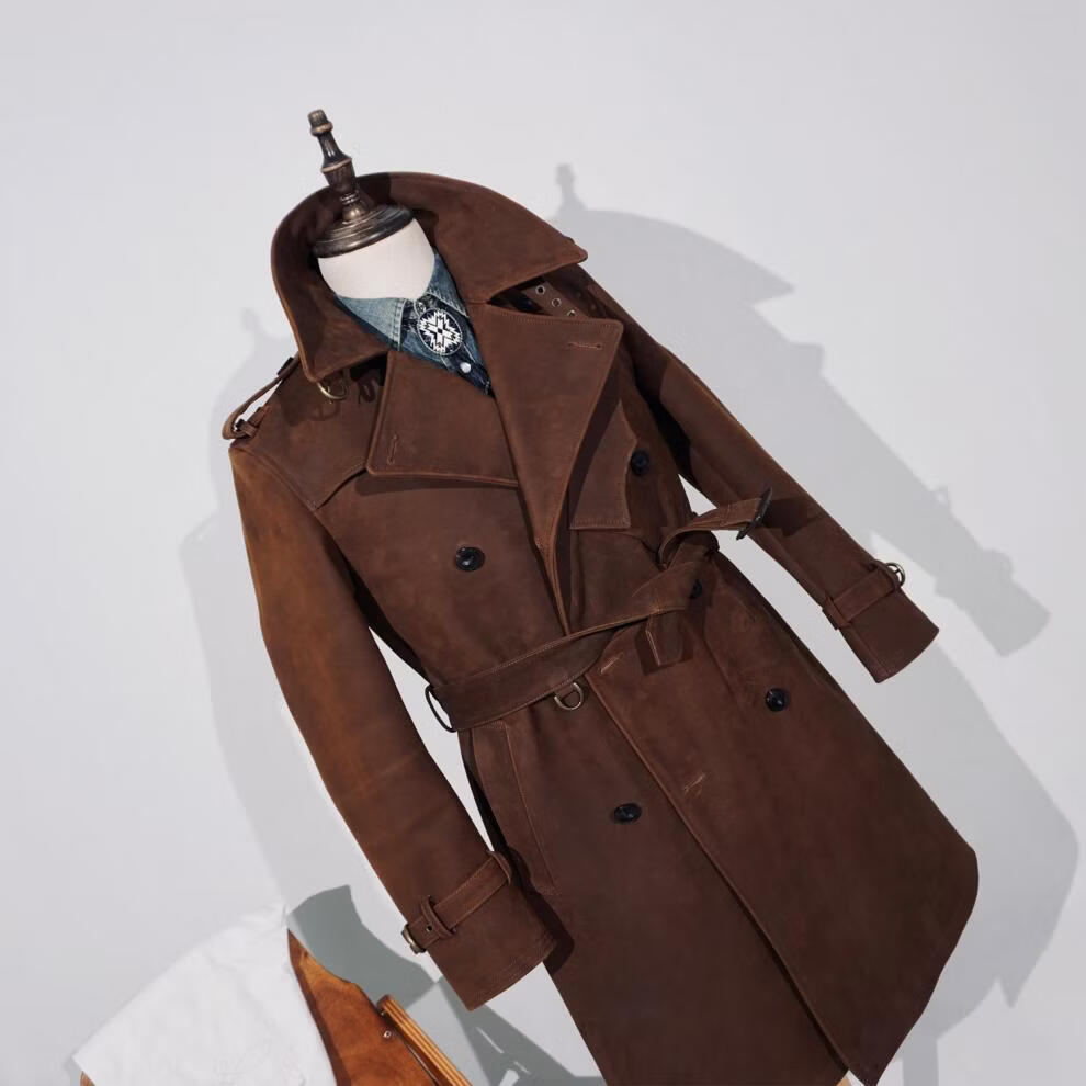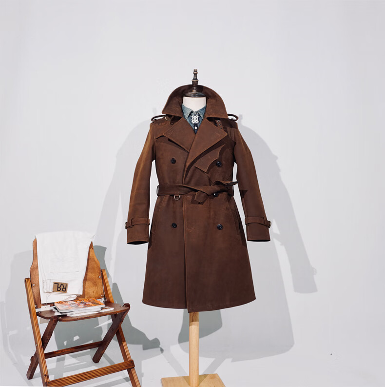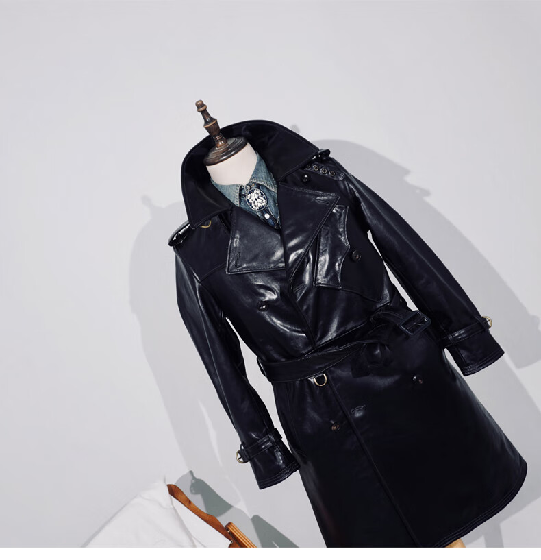 CHEVALPES国际一线品牌经典翻领中长款重磅马皮皮衣战壕风衣工装双排扣大衣 牛皮 S