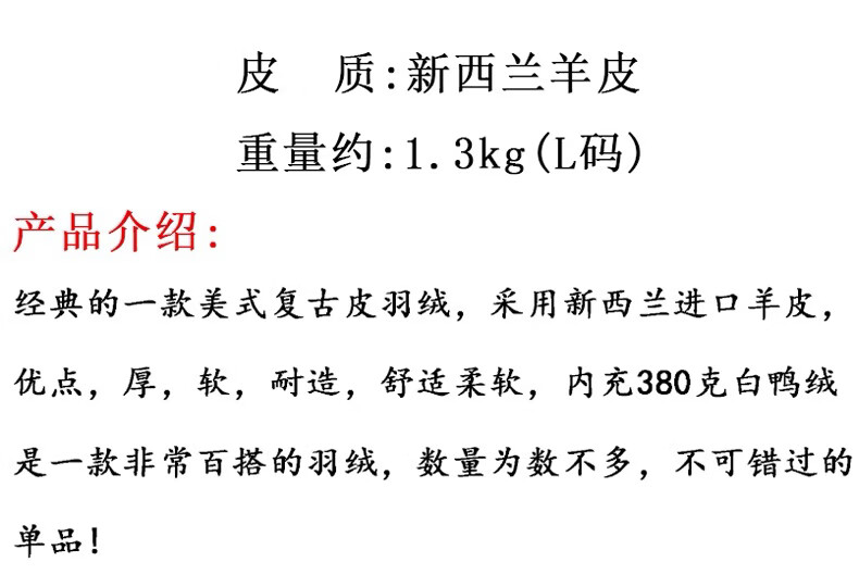 CHEVALPES international first-line brand full, fluffy, New Zealand sheepskin down jacket leather jacket for winter cold protection New Zealand sheepskin down jacket S