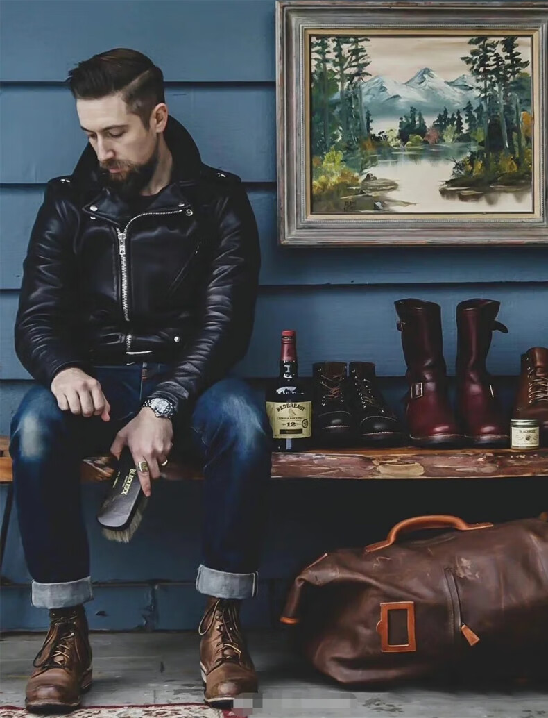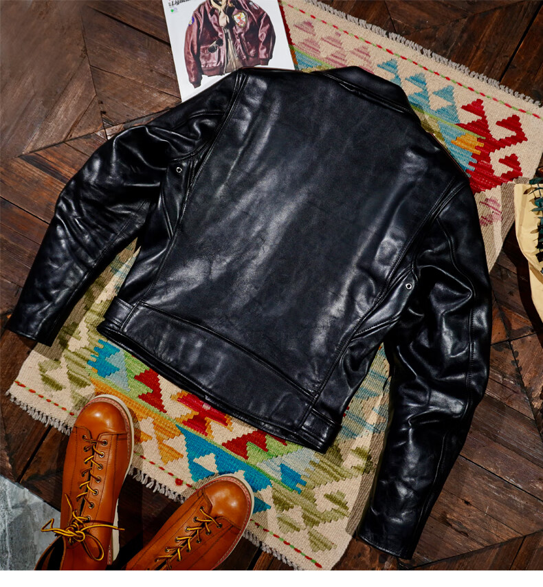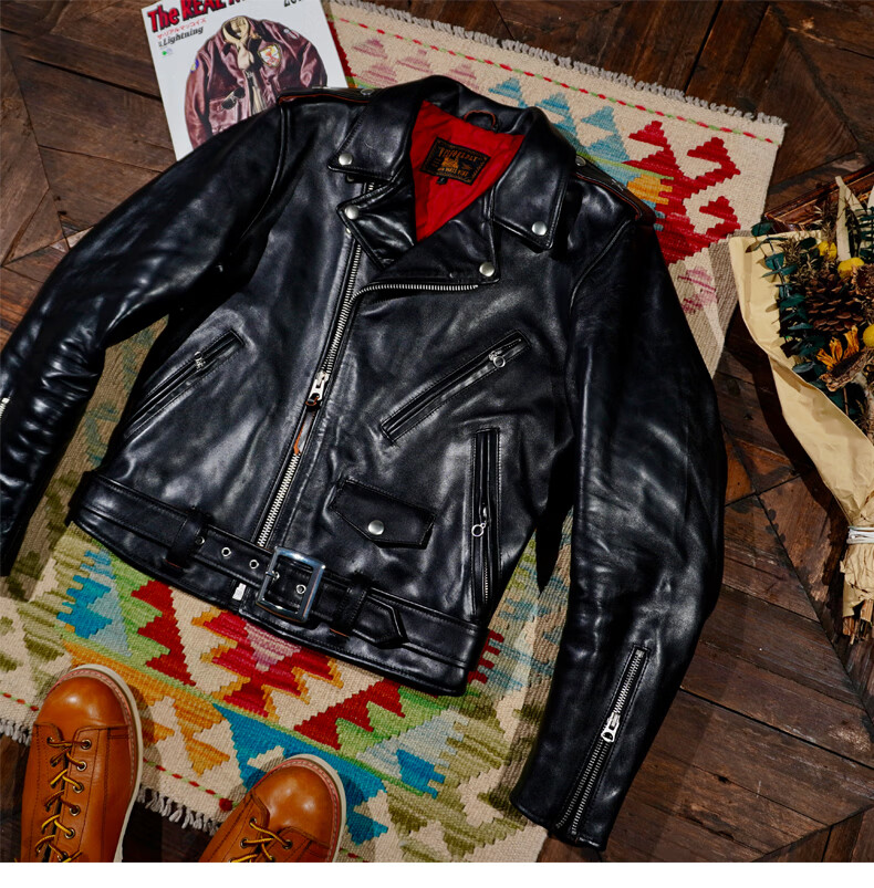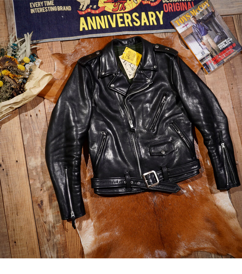 CHEVALPES国际一线品牌经典复刻马龙白兰度Sch*tt613型号植鞣牛皮斜拉机车 植鞣牛皮613 S