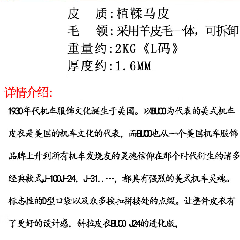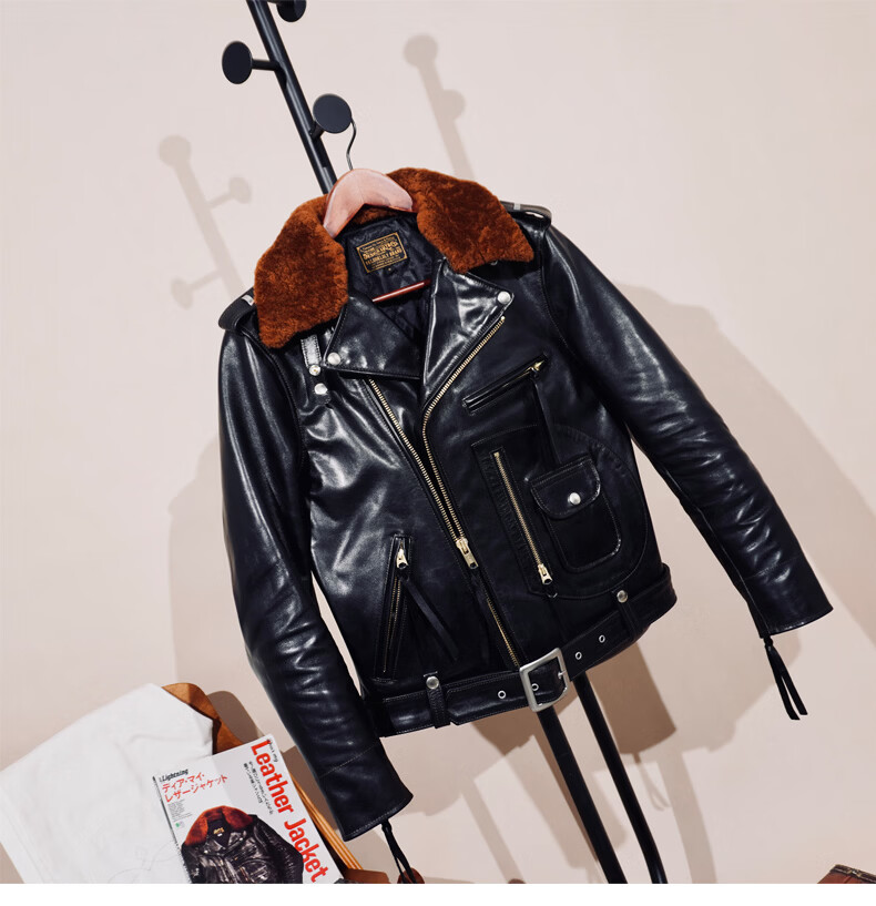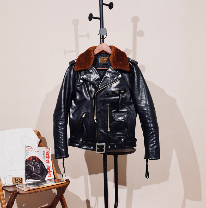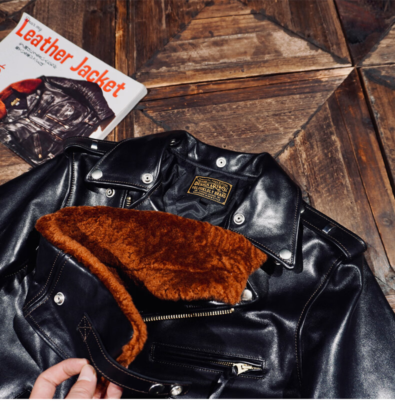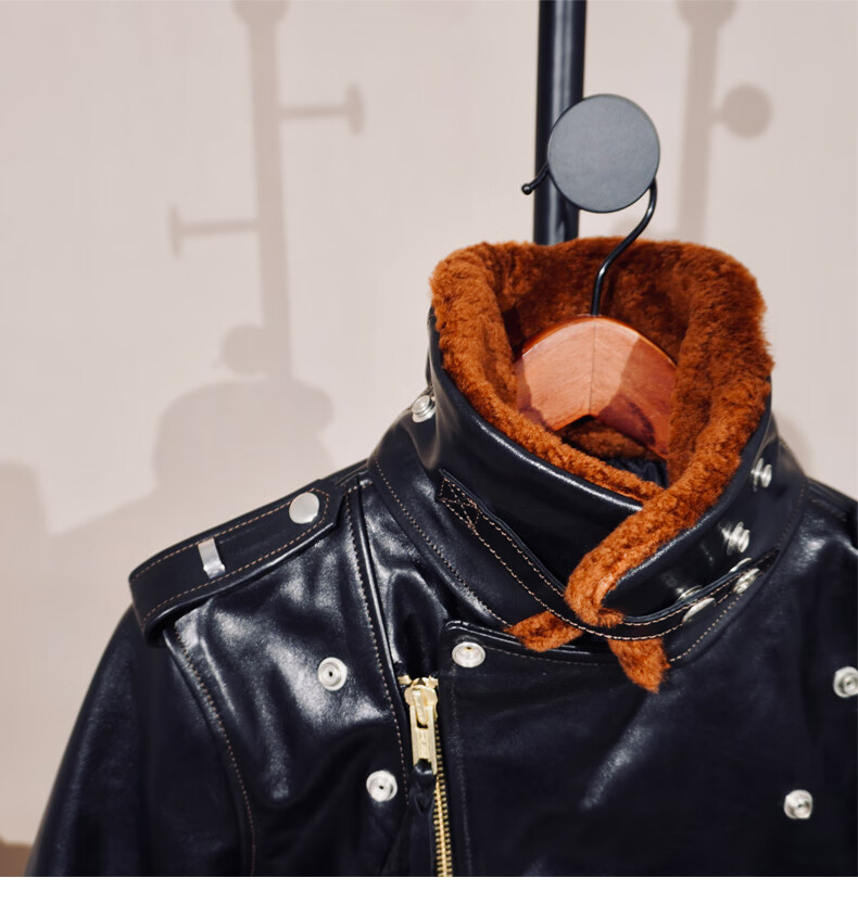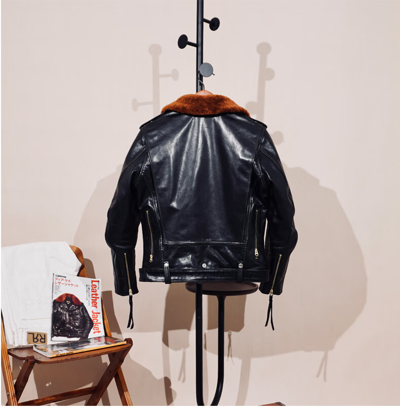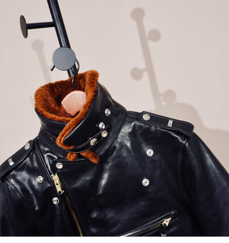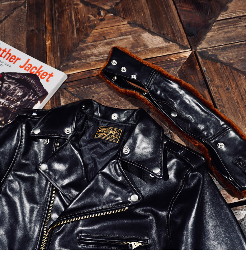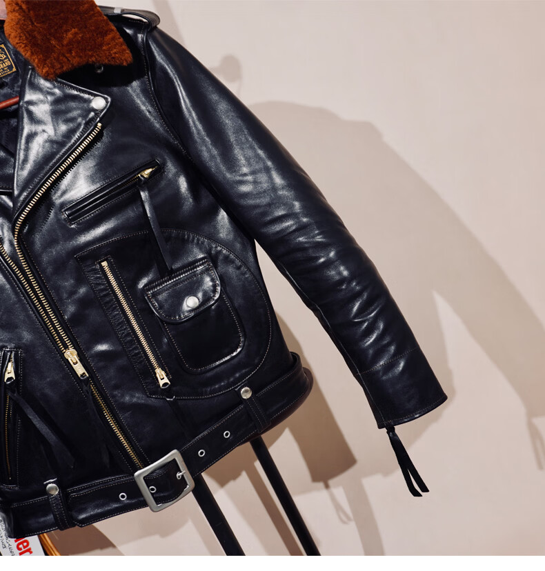 CHEVALPES international first-line brand graduation version replica of the original BUCO version fully vegetable-tanned dyed horsehide leather jacket J24 bias-laden black vegetable-tanned horsehide <fur collar belt detachable> S