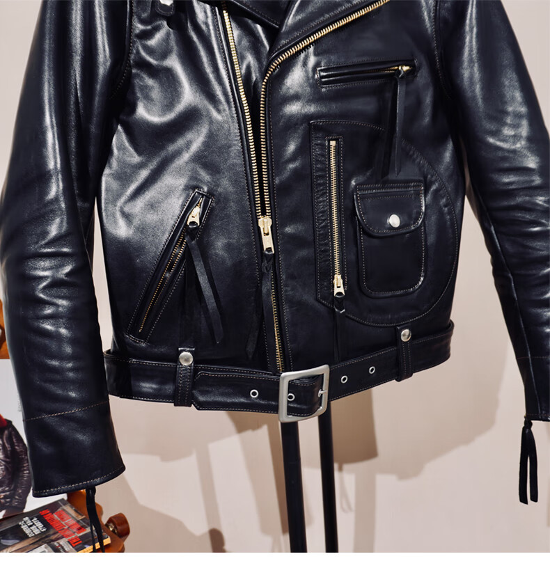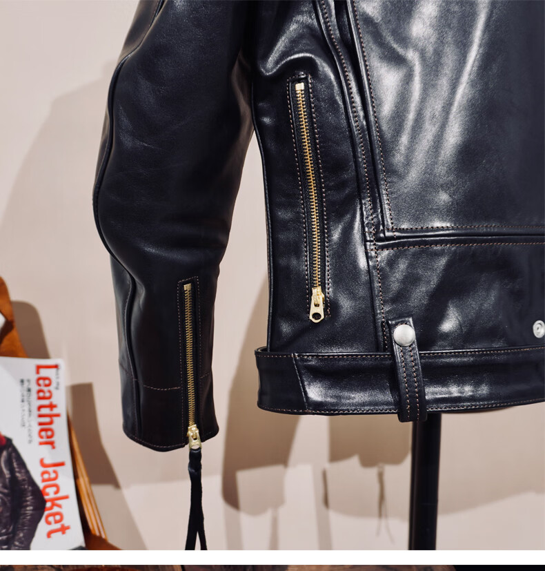 CHEVALPES international first-line brand graduation version replica of the original BUCO version fully vegetable-tanned dyed horsehide leather jacket J24 bias-laden black vegetable-tanned horsehide S
