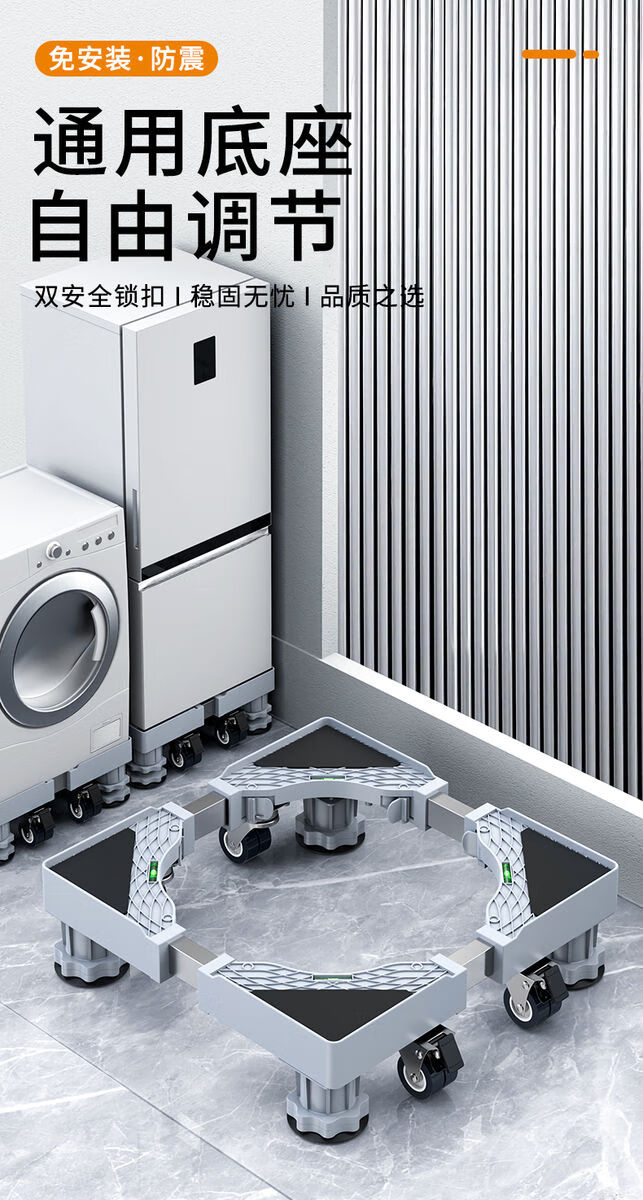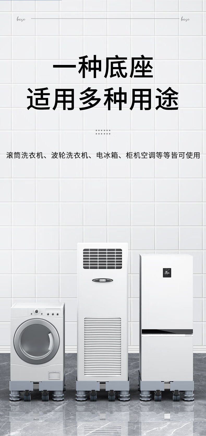 Wings Waschmaschinen-Basisregal, abnehmbare Rollen, Lagerregal, stoßfest, Grau, Verkaufsranking Nr. 1, fester Stil, super leistungsstark, vergrößert, 4 Saugnapffüße frei, horizontal