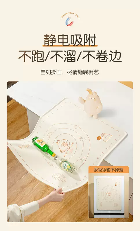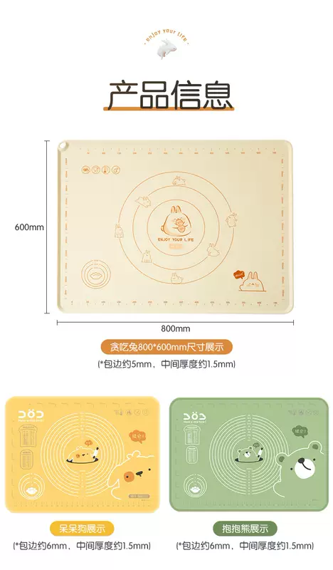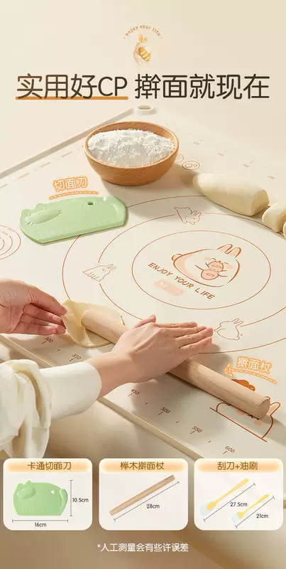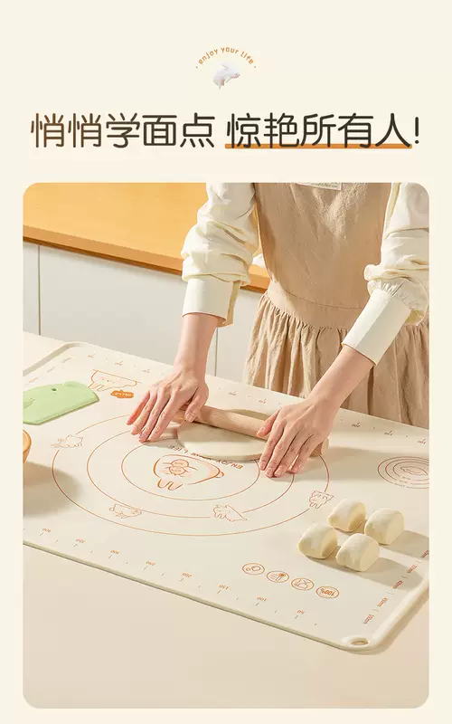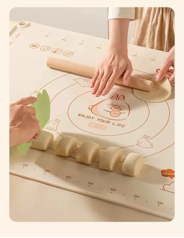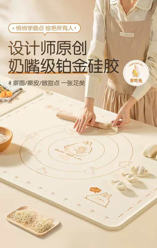 Yusenyi Silicone Kneading Mat Thickened Food Grade Kneading Mat Panel Home Kneading Baking Chopping Board Brand Anti-Slip Artifact (Baking 10-piece Set) Platinum Antibacterial Greedy Rabbit 60x40 Includes Large Scraper-Upgraded Oil
