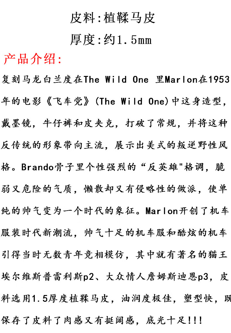 CHEVALPES international first-line brand new product 1.5MM thick classic 613 Marlon Brando vegetable-tanned horsehide leather jacket bias-launched vegetable-tanned horsehide S