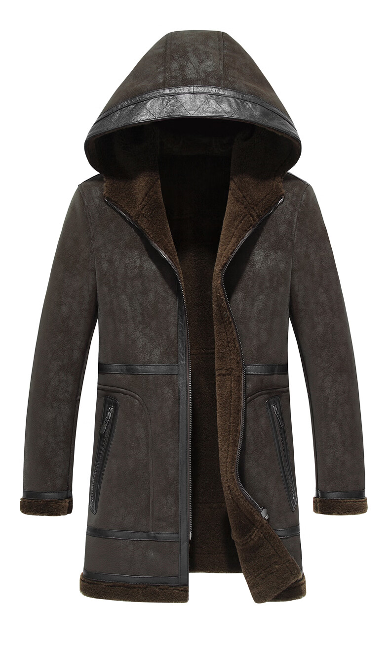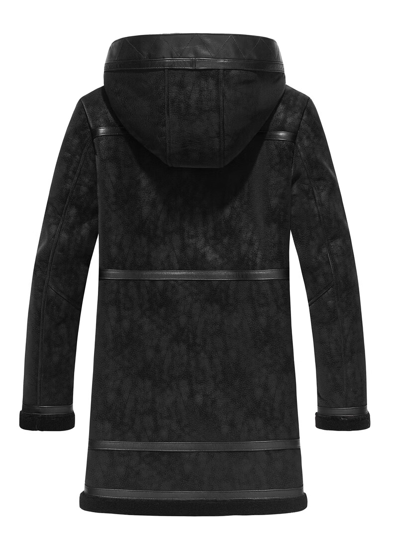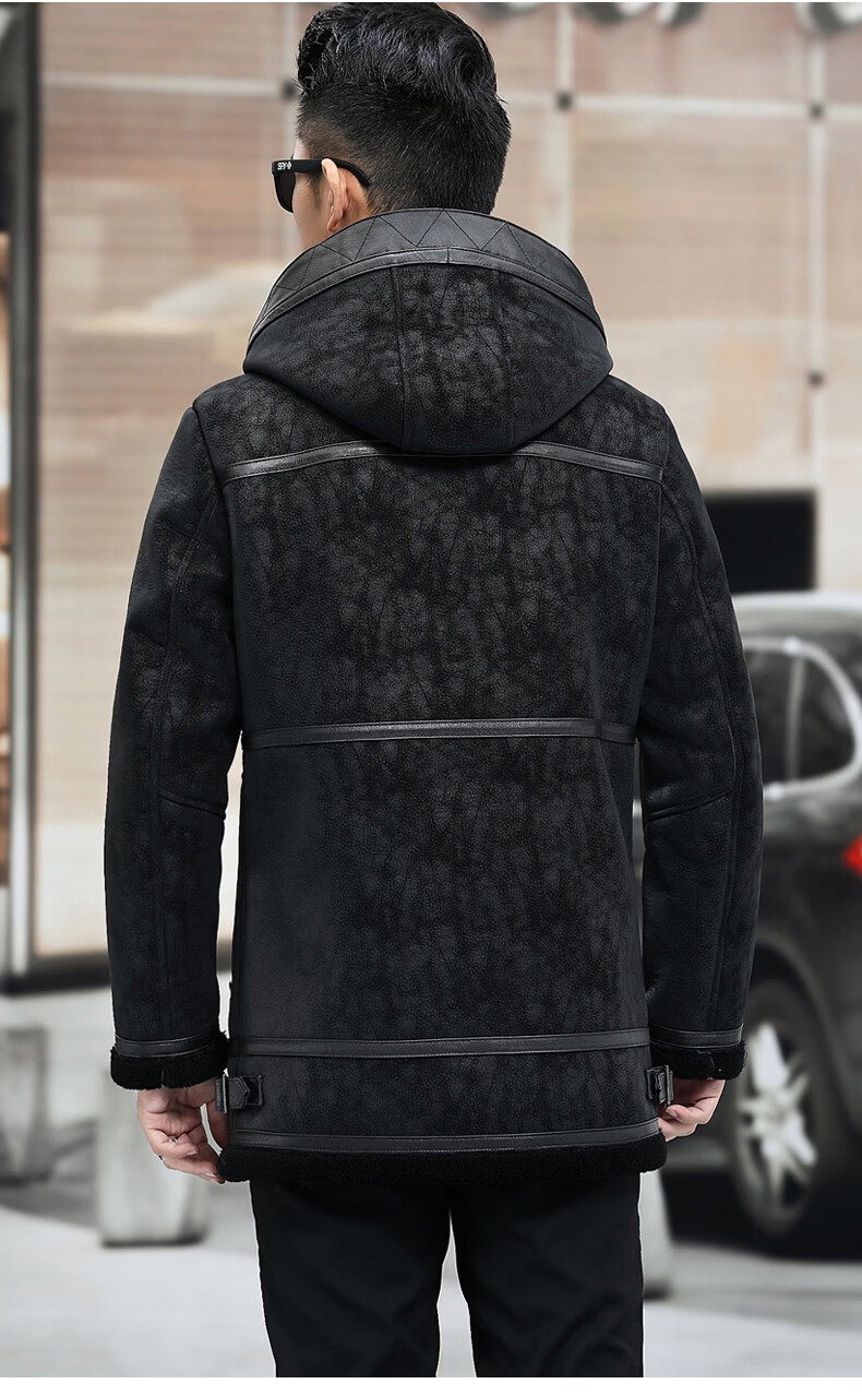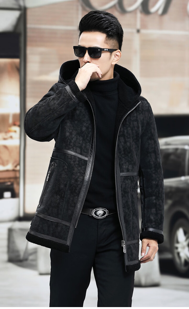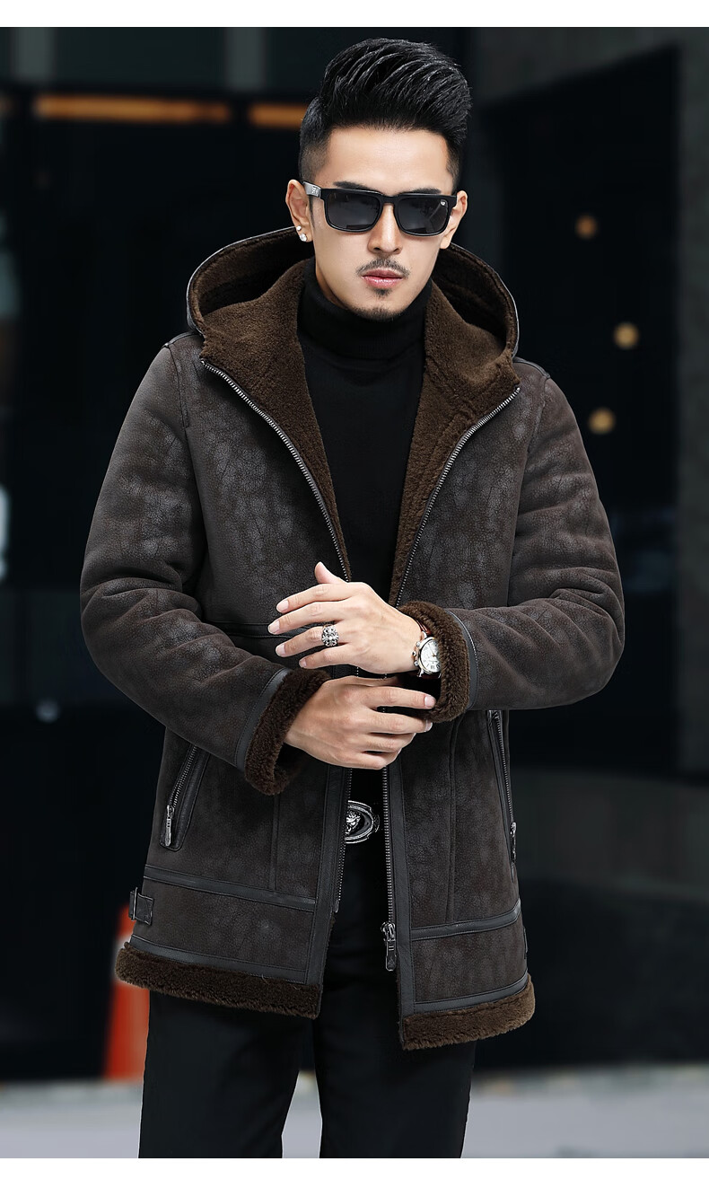 CHEVALPES international first-line brand genuine leather jacket for men, cowhide wool liner, imitation fur one-piece sheep sheared large windbreaker, black M 165