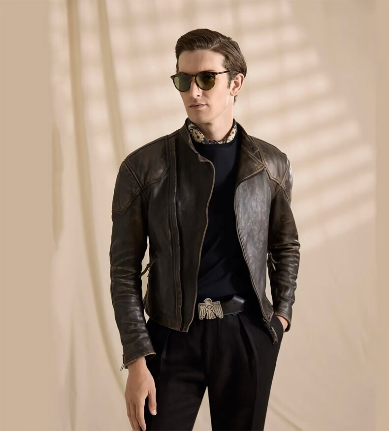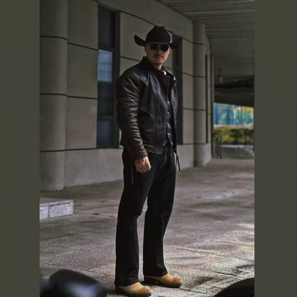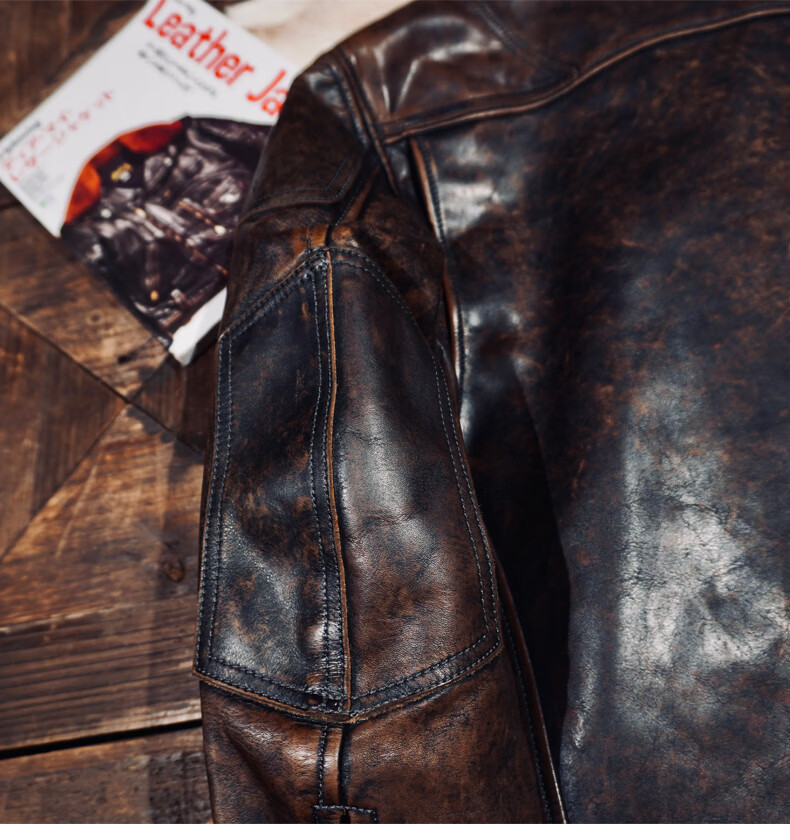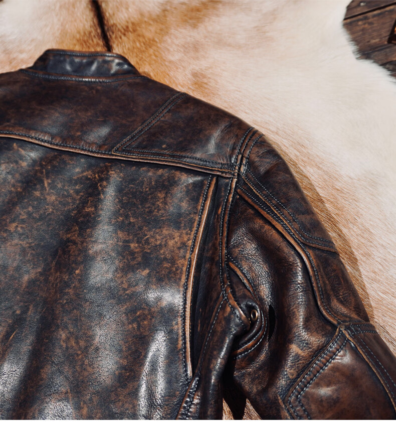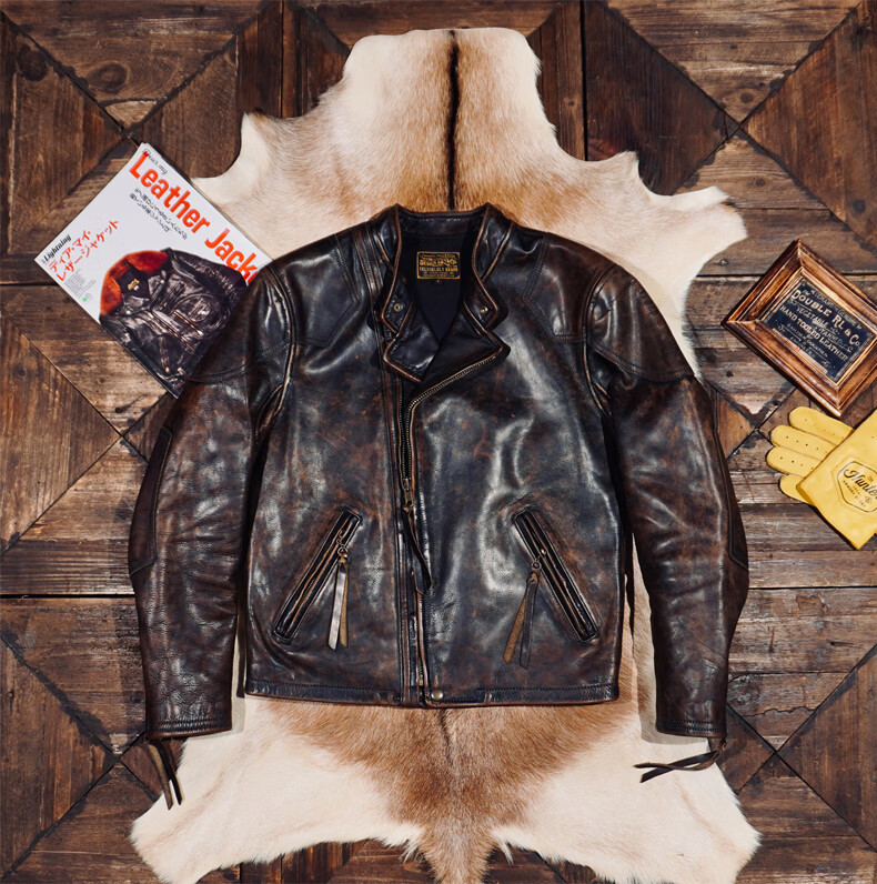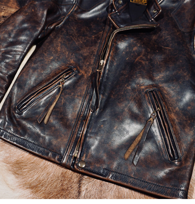 CHEVALPES International first-line brand classic RL Venom predecessor ready-to-wear heavy washed fully vegetable tanned cowhide leather jacket men's cable-stayed motorcycle cowhide S